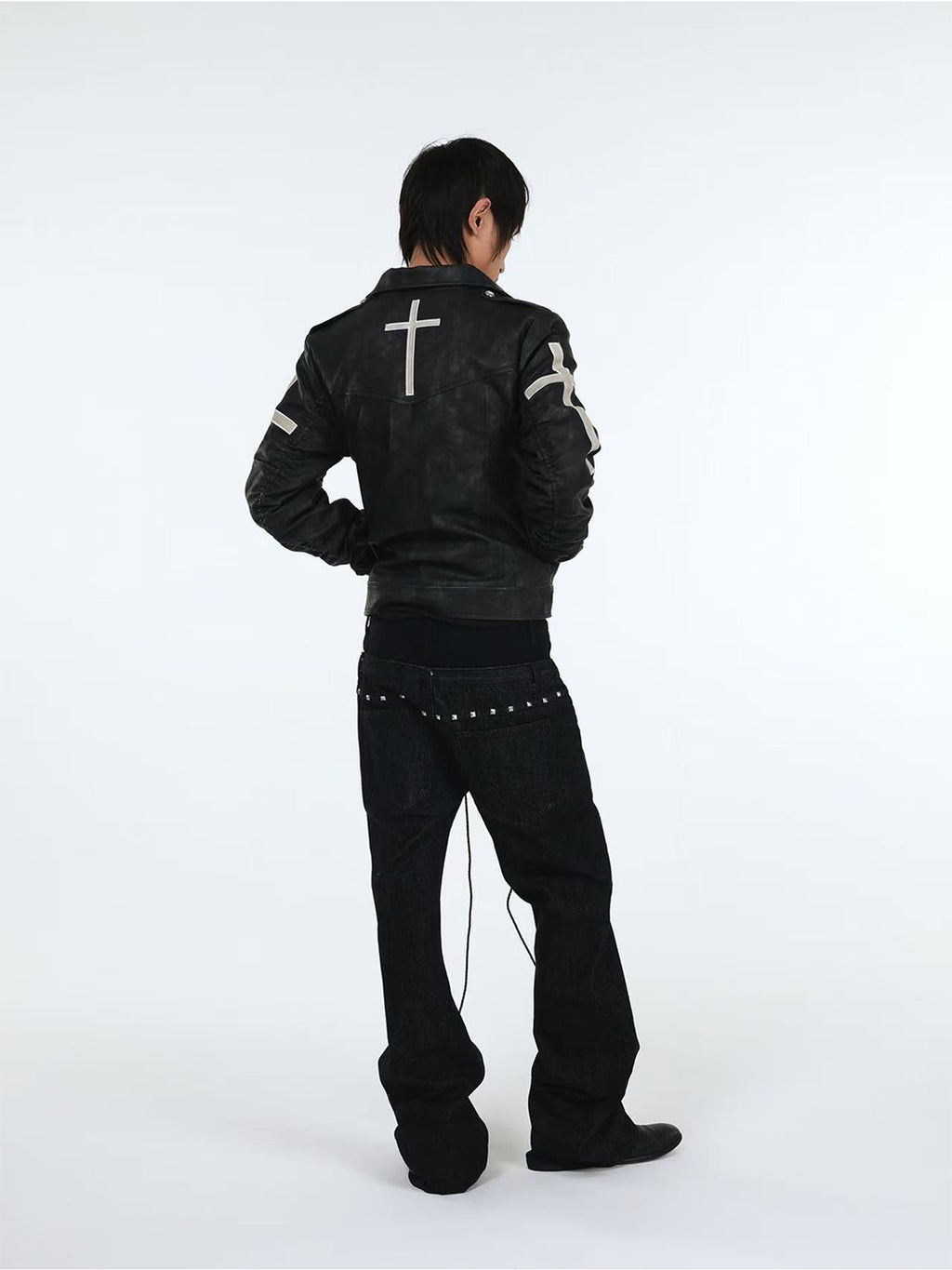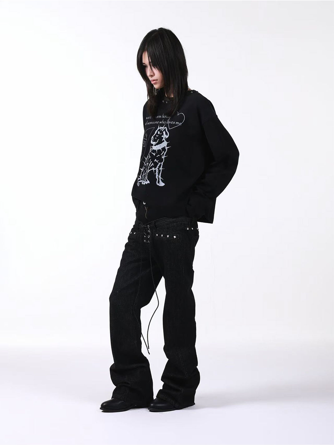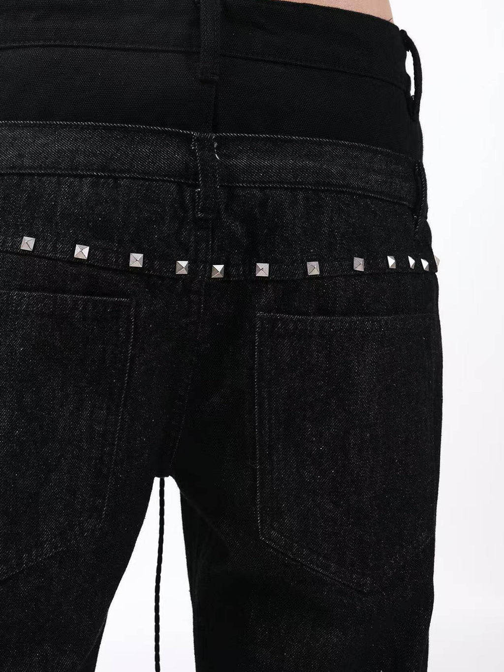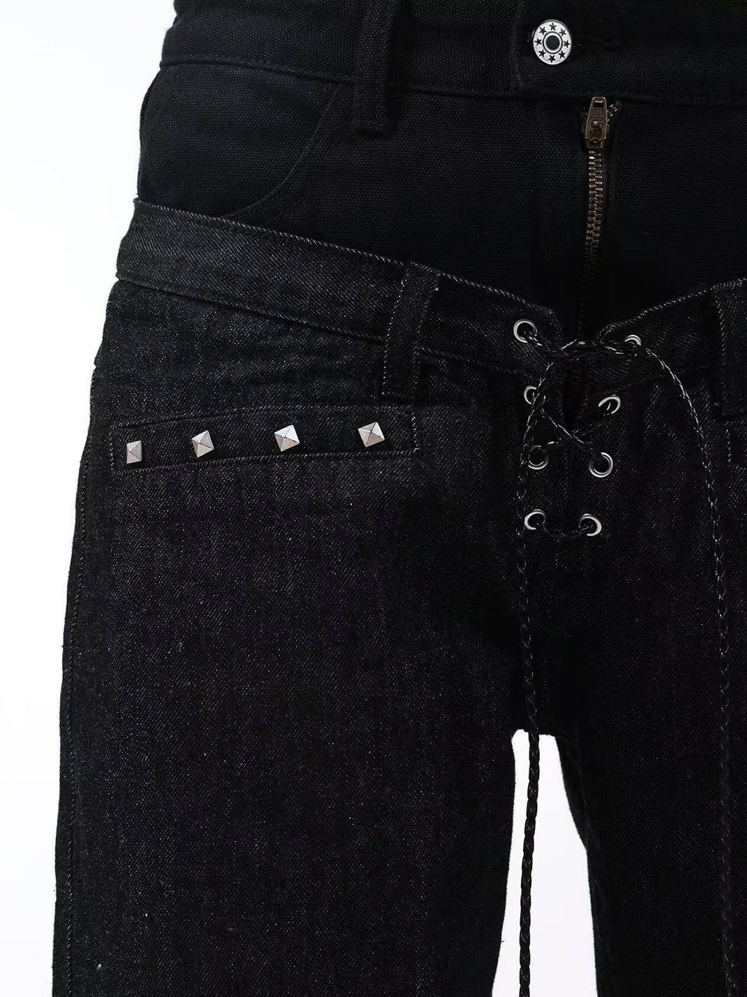 DETW | Double-Waisted Drawstring Zipper Studded Jeans