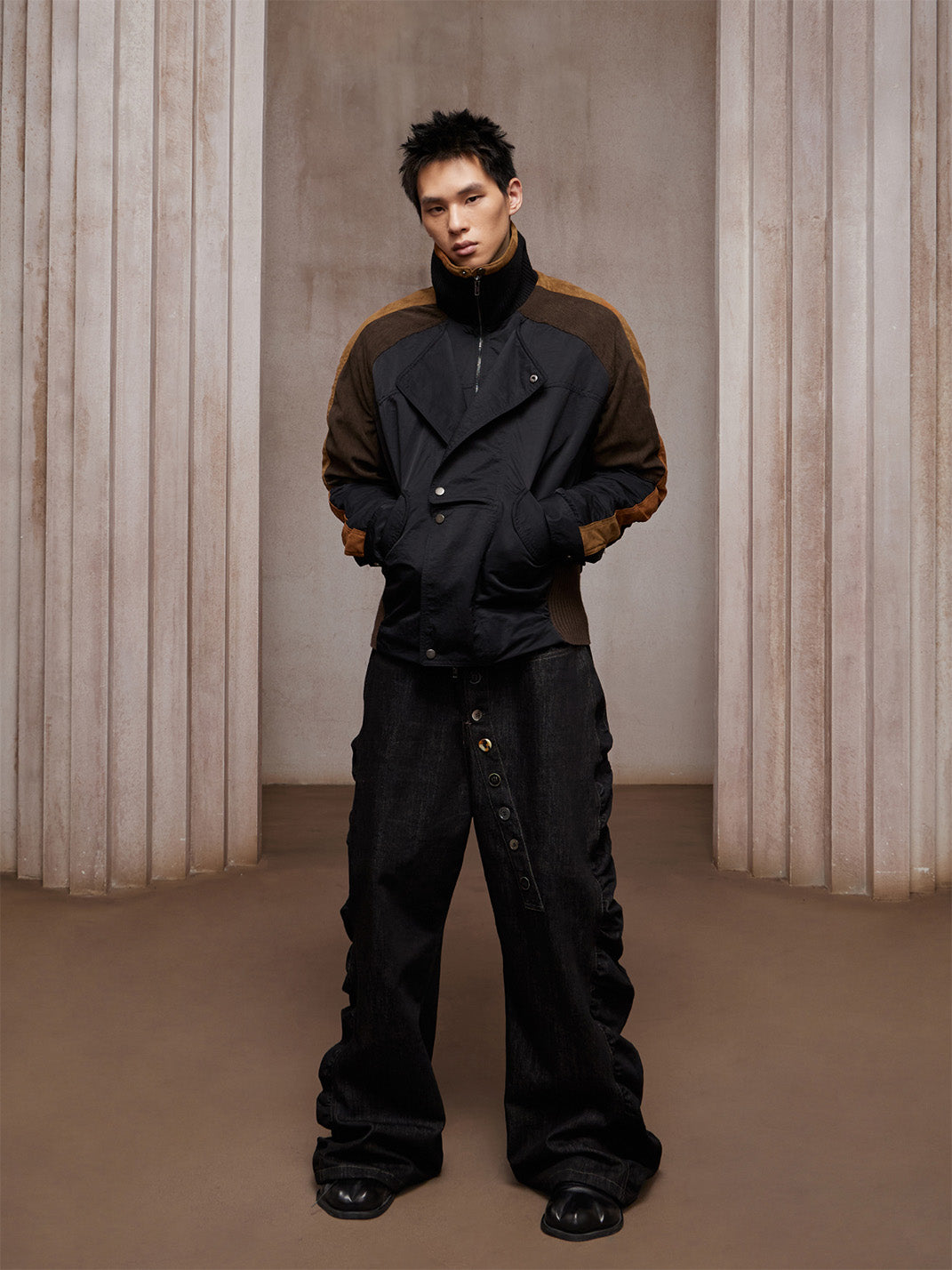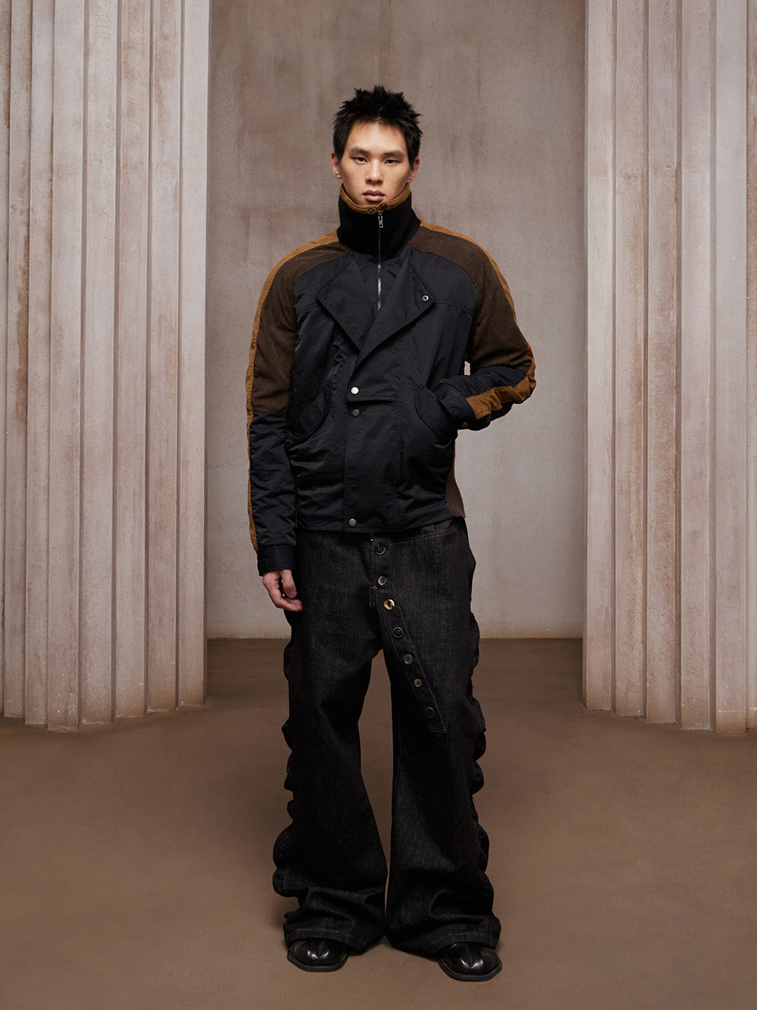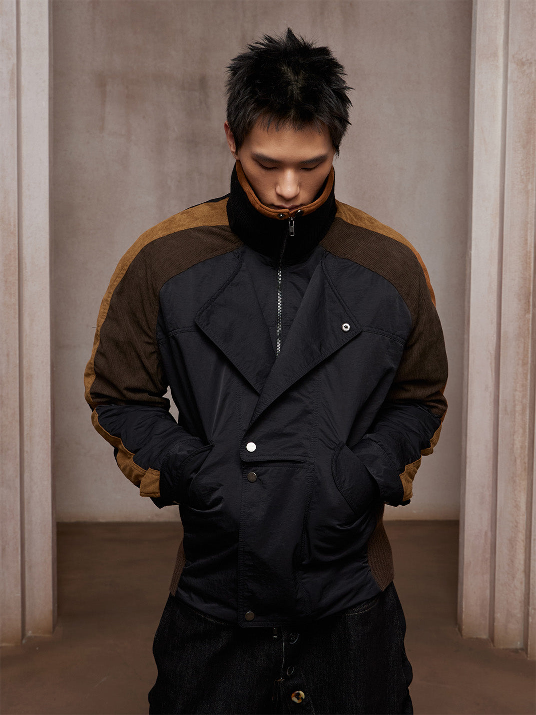 DND4DES | Double-Breasted Color Block Suede Jacket