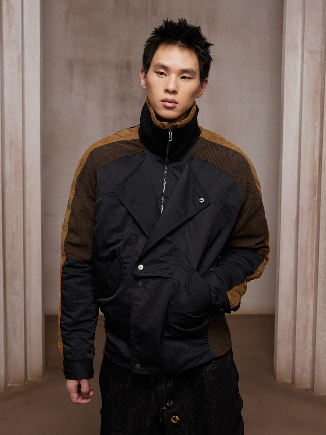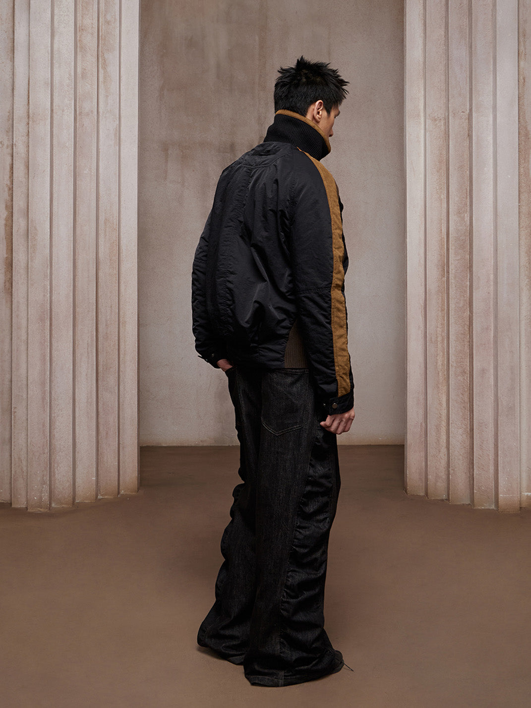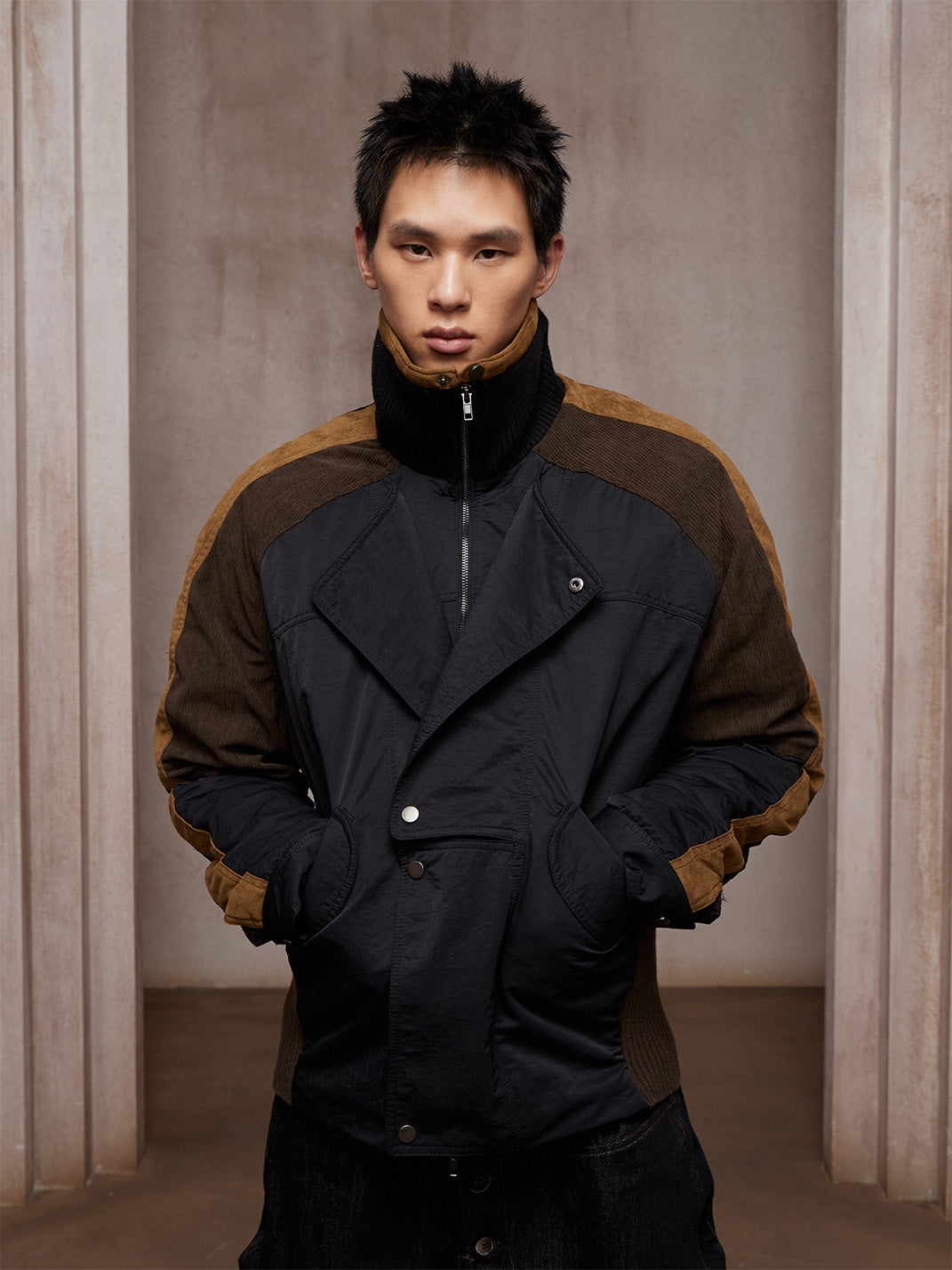 DND4DES | Double-Breasted Color Block Suede Jacket