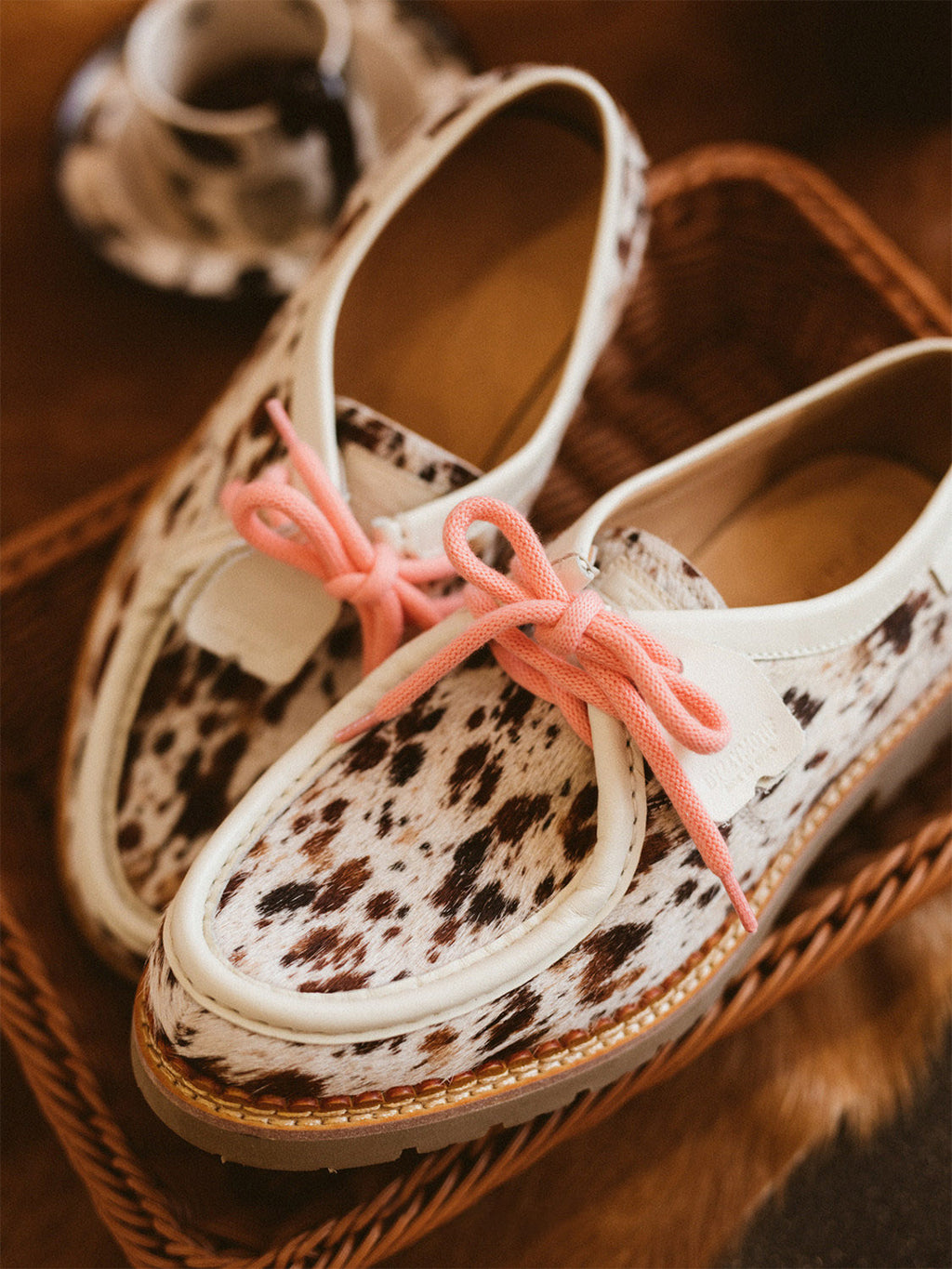 DYZZYMOTIF, rooted in "Retro as the Prelude, Style Unbounded", delves deep into retro footwear aesthetics. From horsehair leopard print and leather kangaroo shoes to co-branded loafers, it builds a footwear system that blends retro charm with avant-garde attitude through rare fabrics, vintage silhouettes and personalized details, making every pair a walking retro declaration and unlocking undefined trendy expressions.