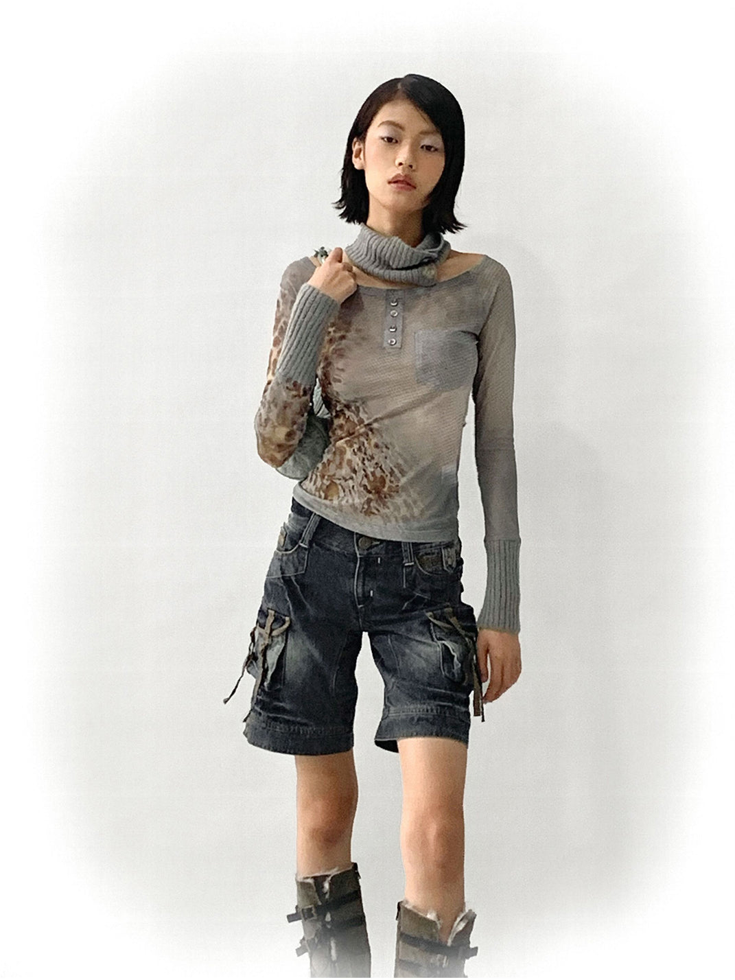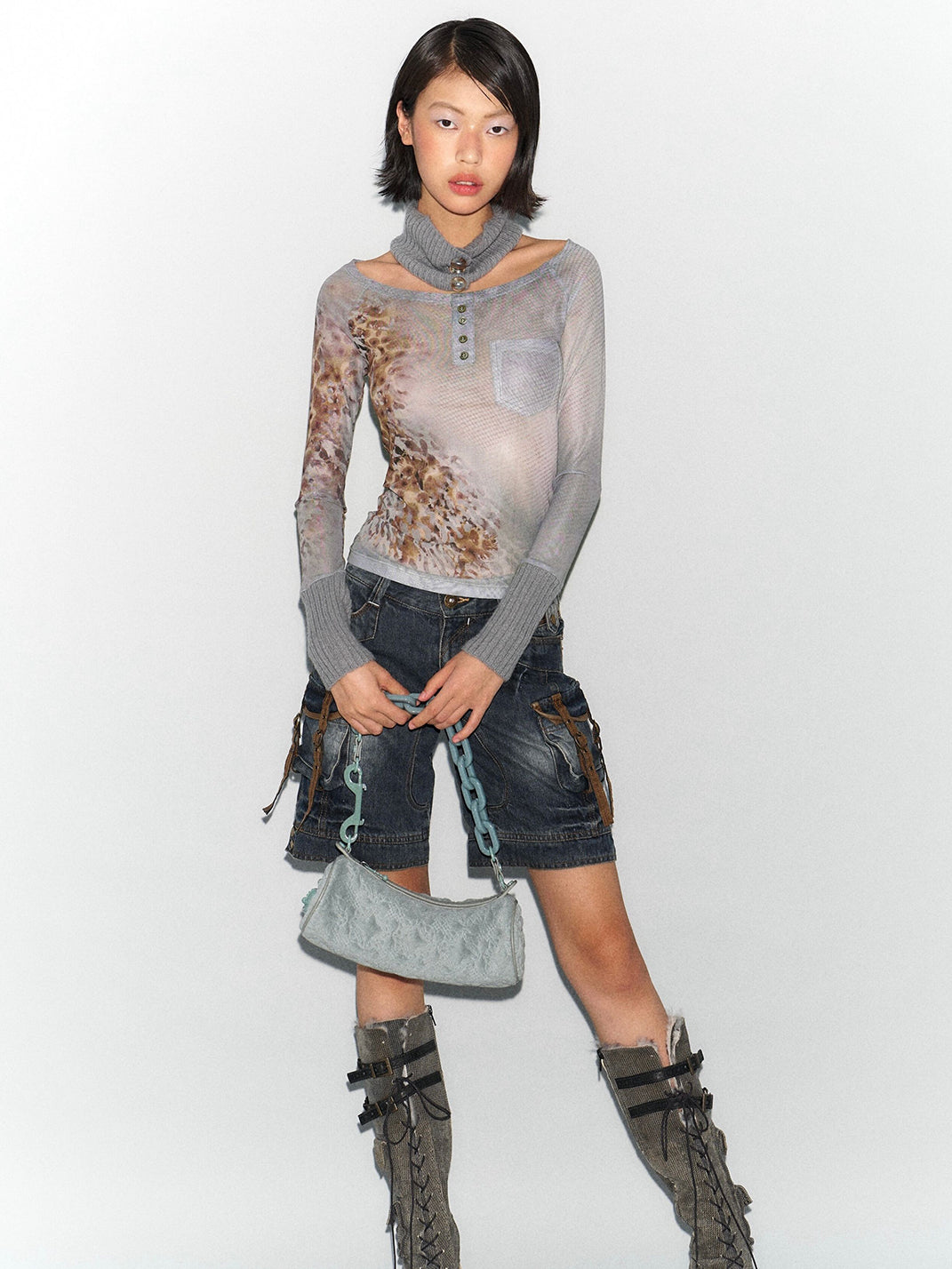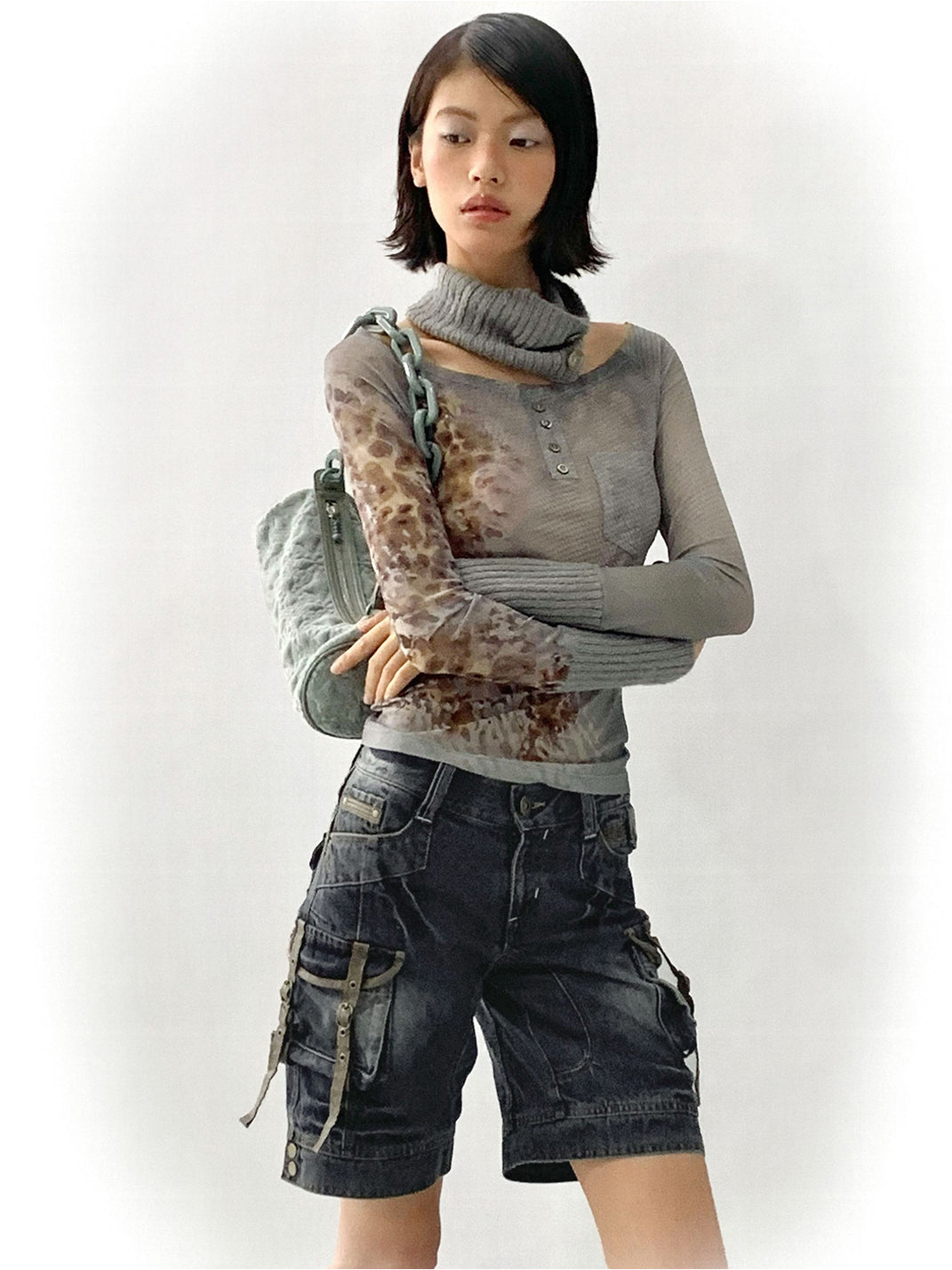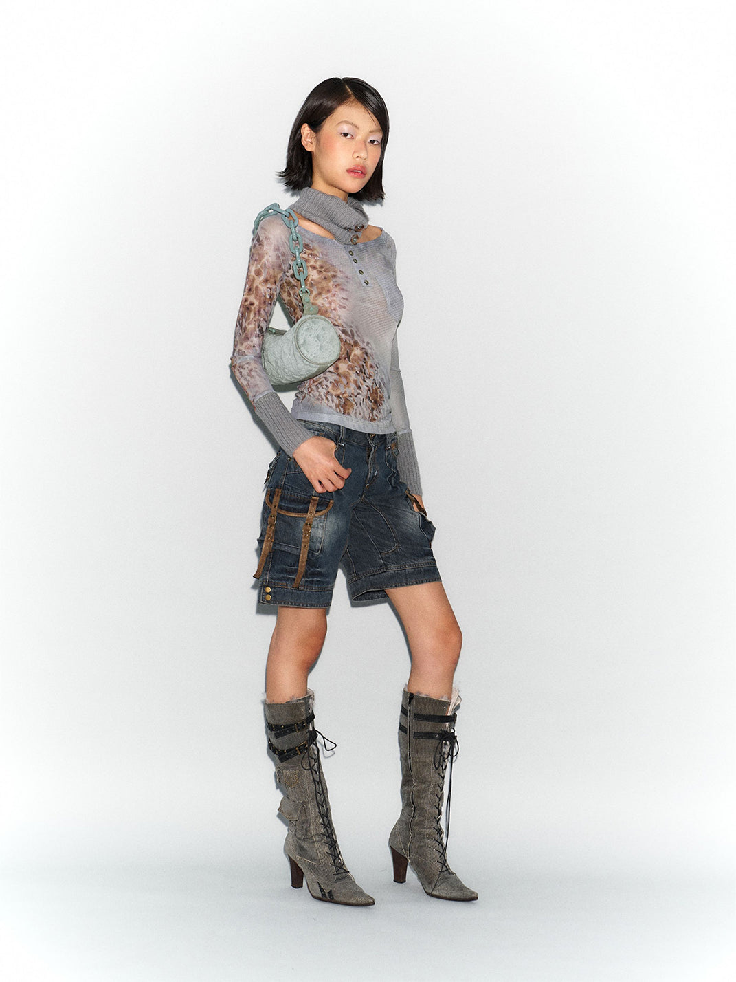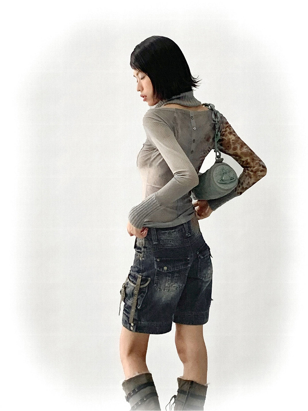 Flowers birds Market | Washed Blue Multi-Pocket Low Rise Denim Shorts
