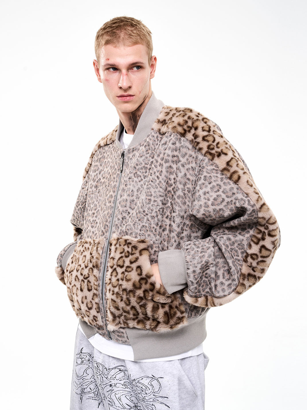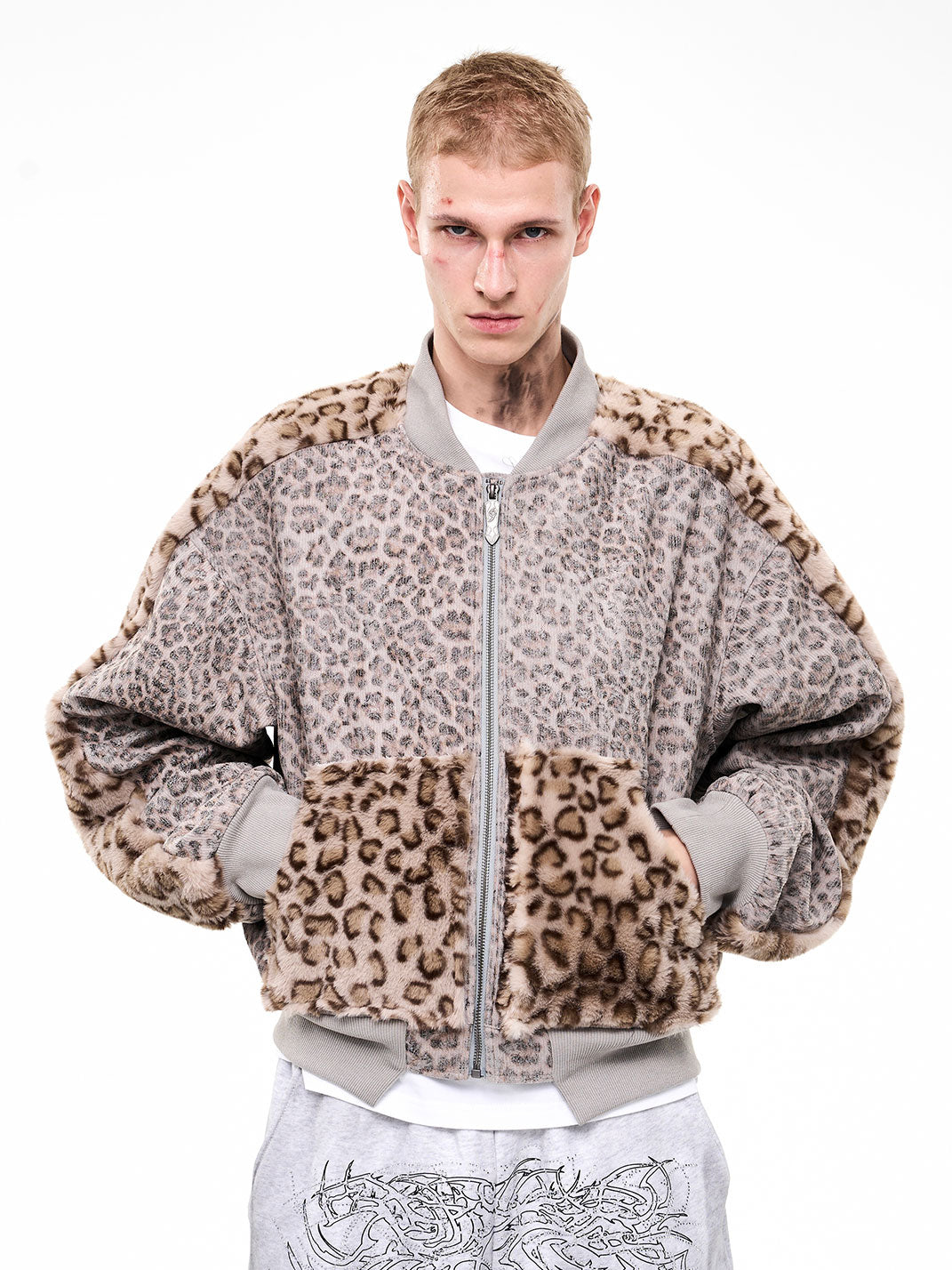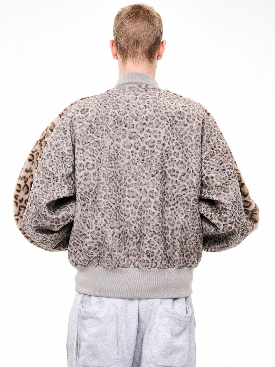 Fourth3ex | Corduroy Leopard Fur-Panel Baseball Jacket Skip to content