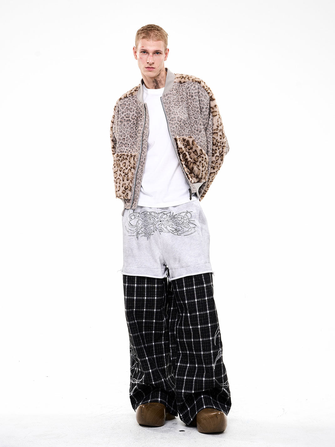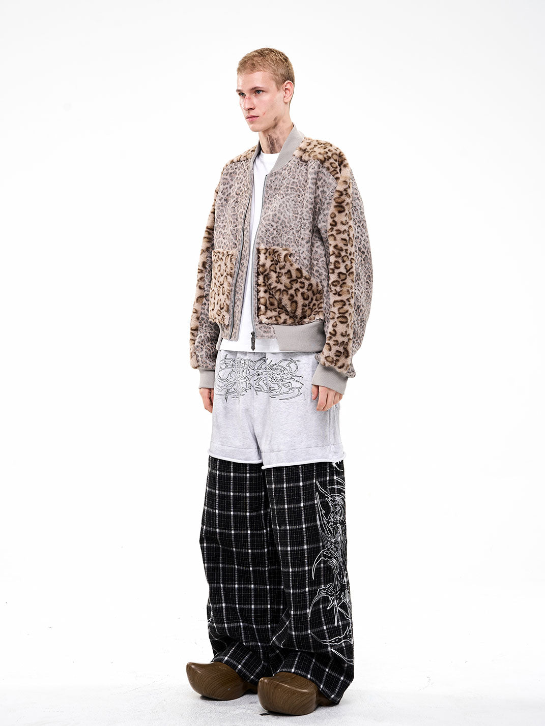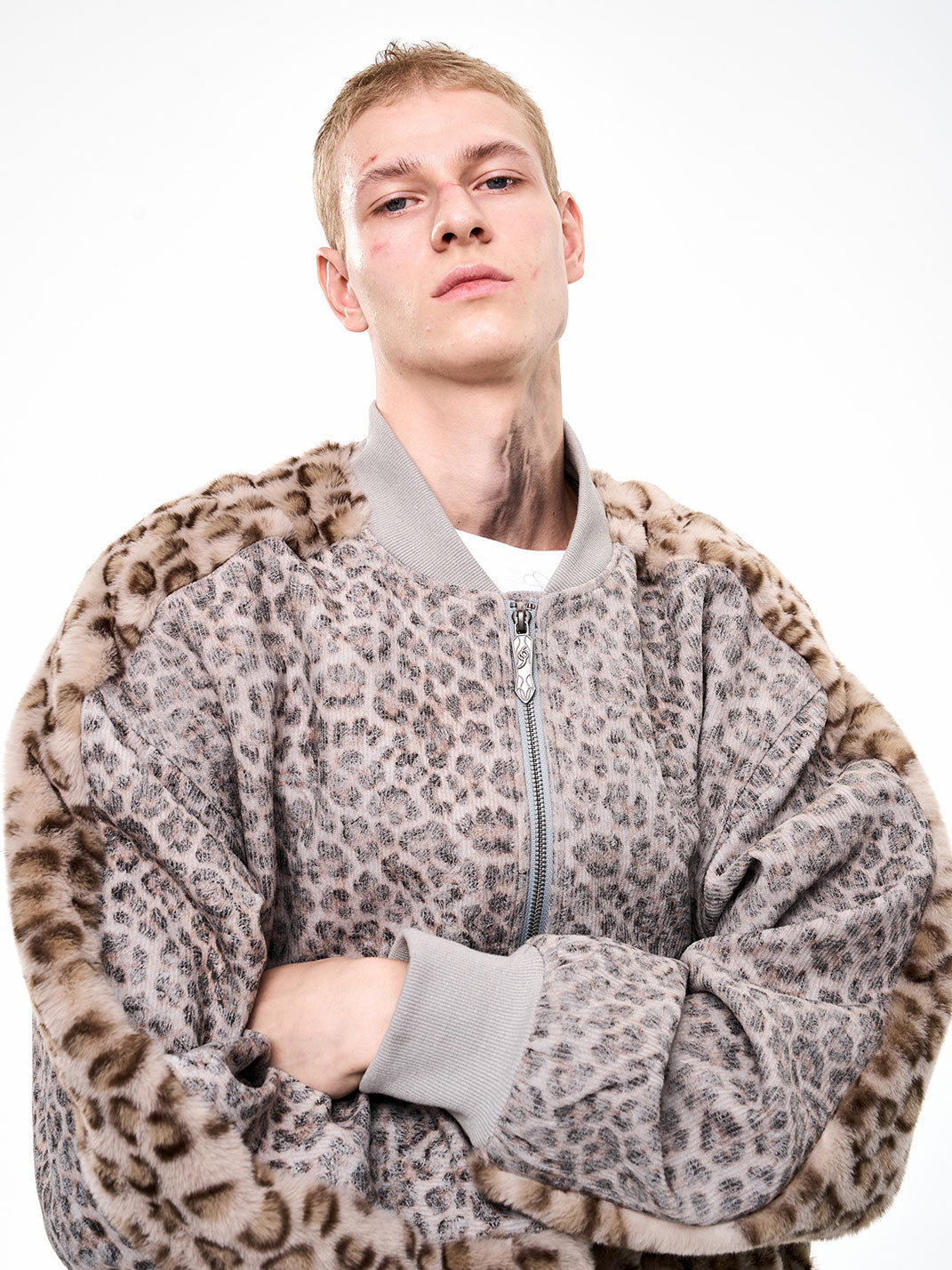 Fourth3ex | Corduroy Leopard Fur-Panel Baseball Jacket Skip to content
