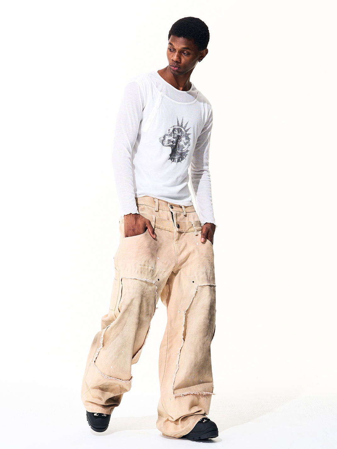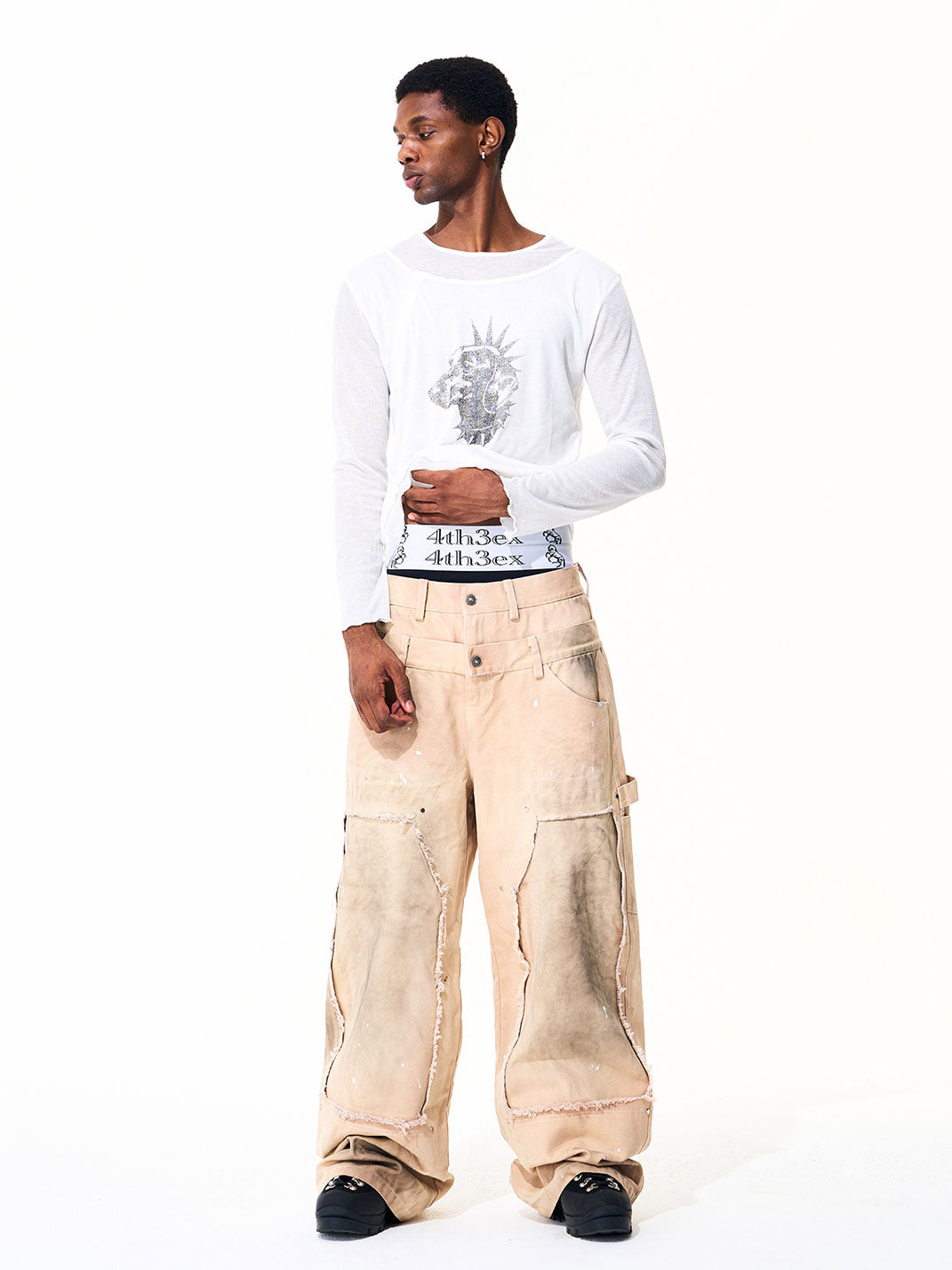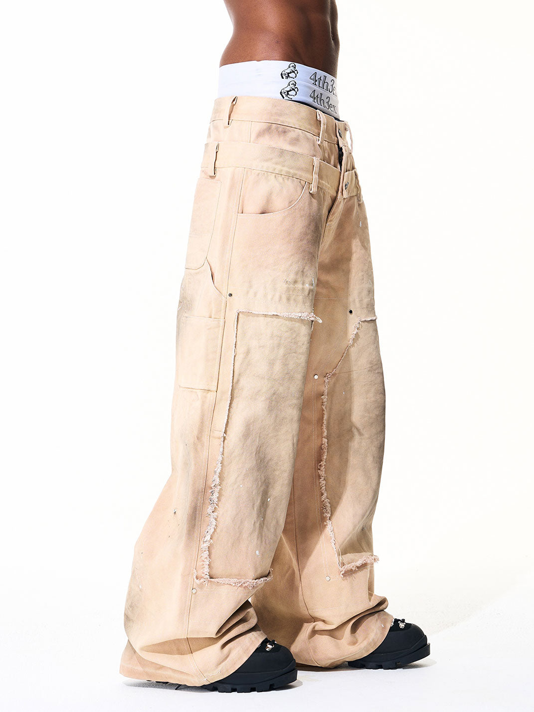 Fourth3ex | Distressed Fringed Double Waist Jeans