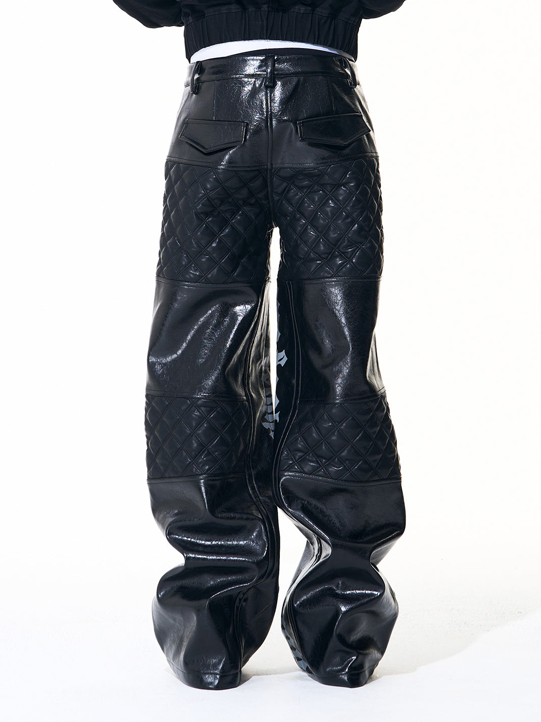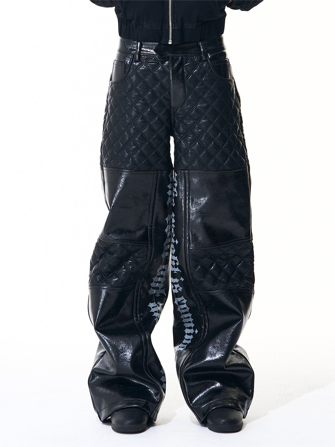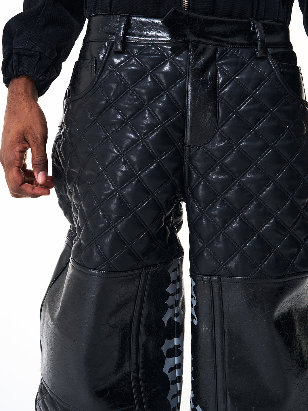 Fourth3ex | Letter Print Quilted PU Pants Skip to content