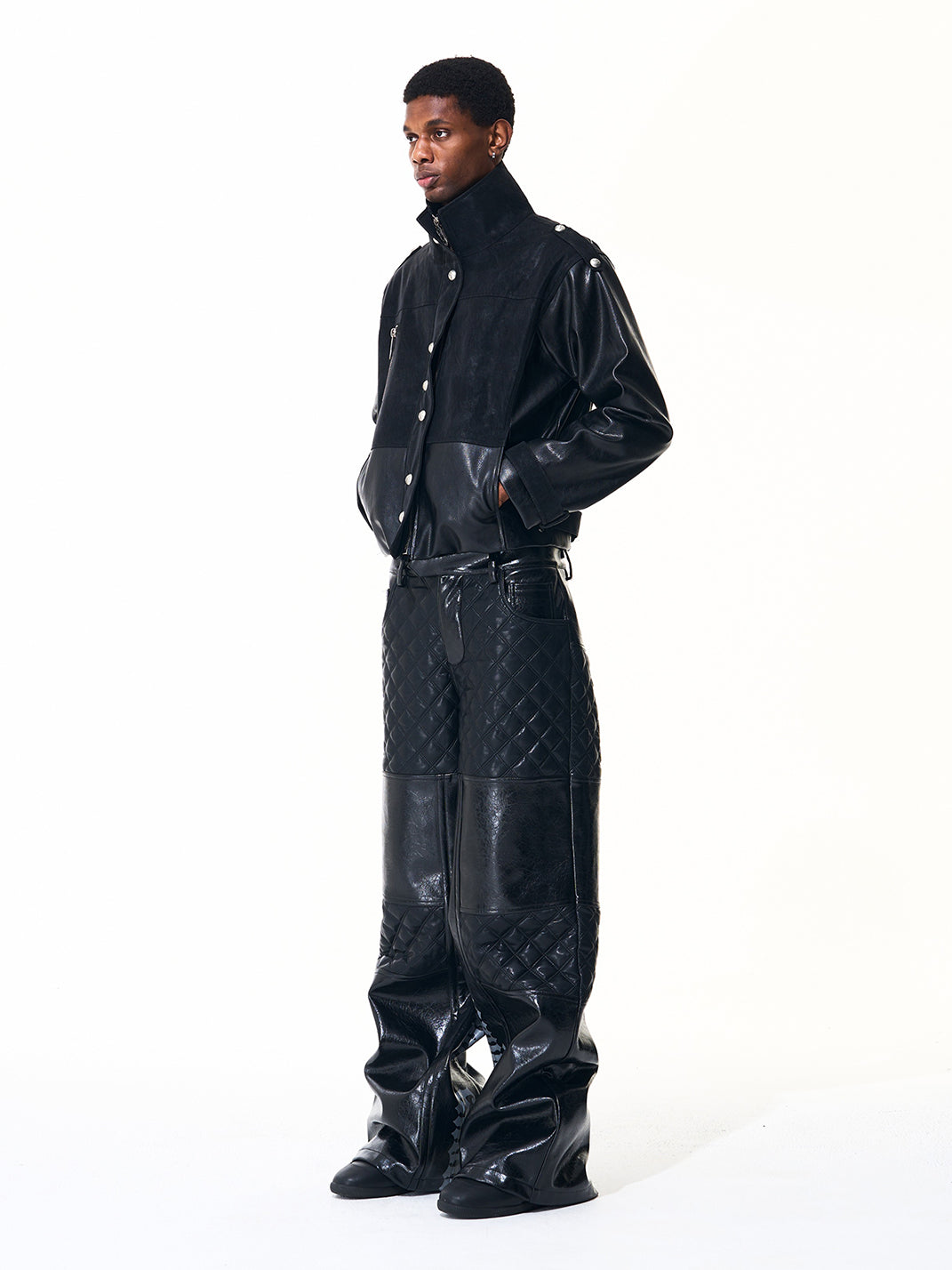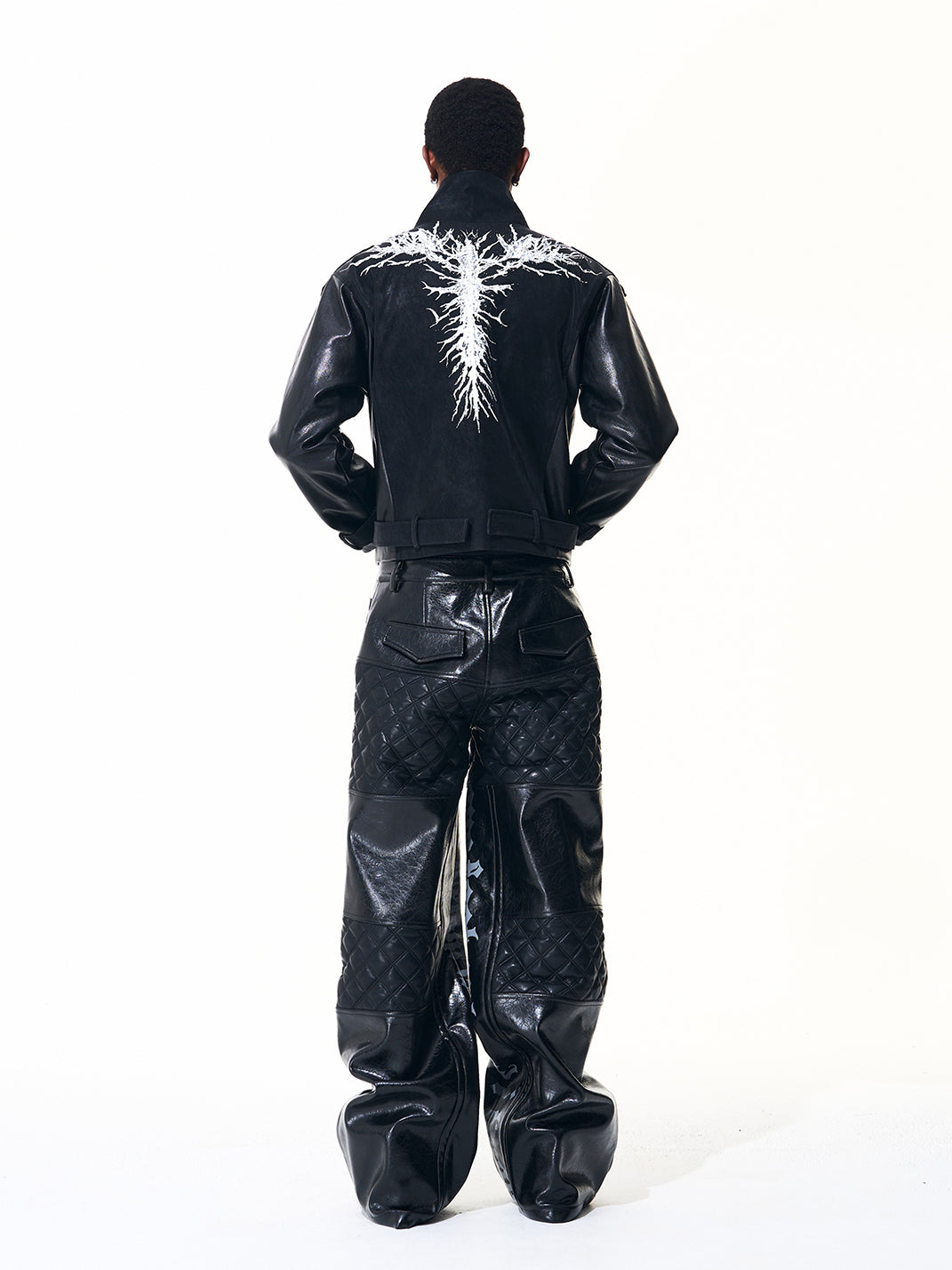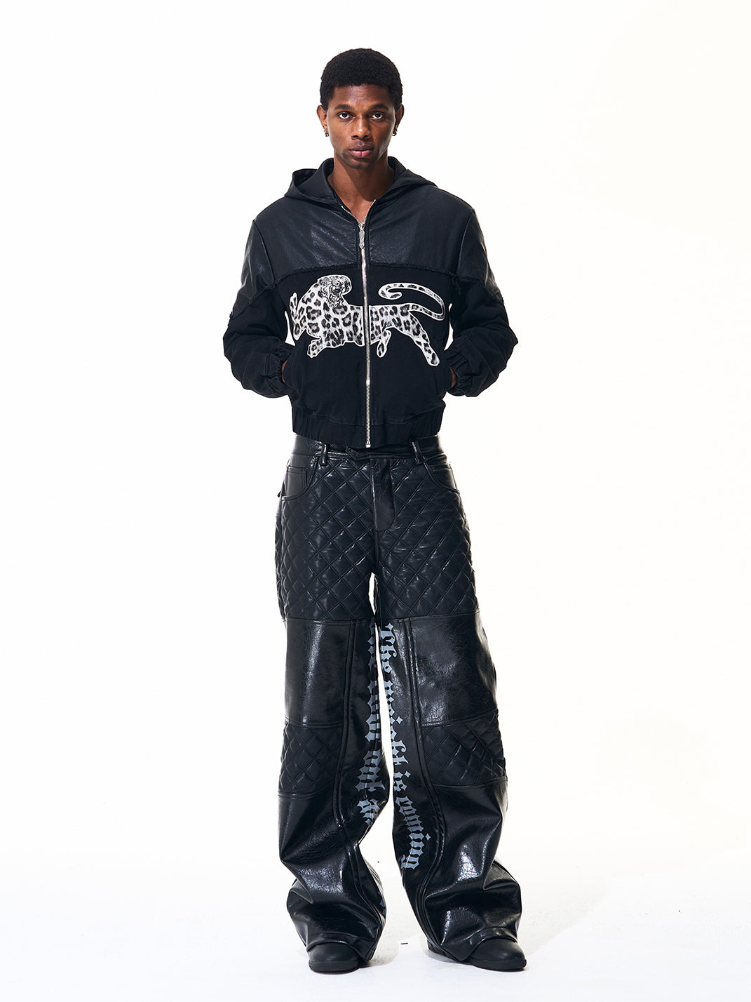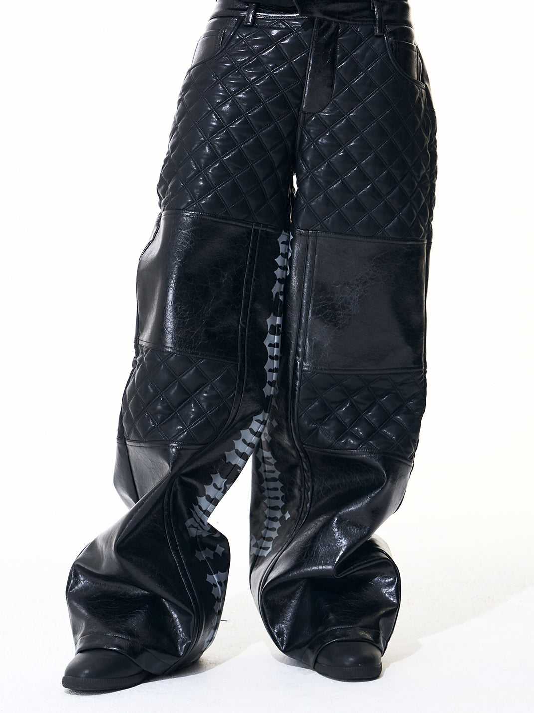 Fourth3ex | Letter Print Quilted PU Pants Skip to content