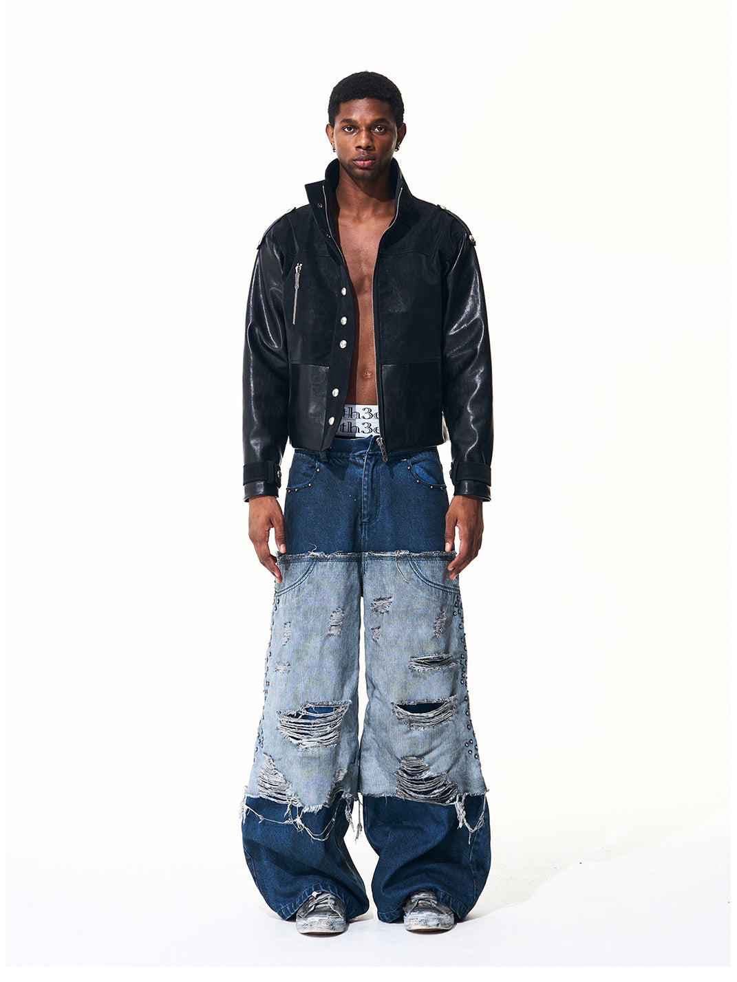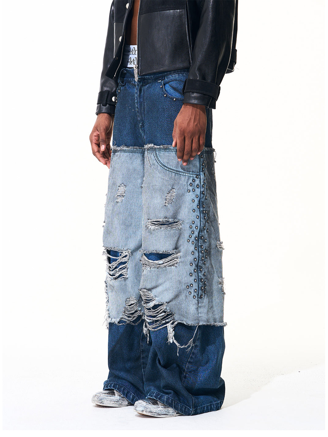 Fourth3ex | Ripped Patchework Wide Leg Jeans Skip to content