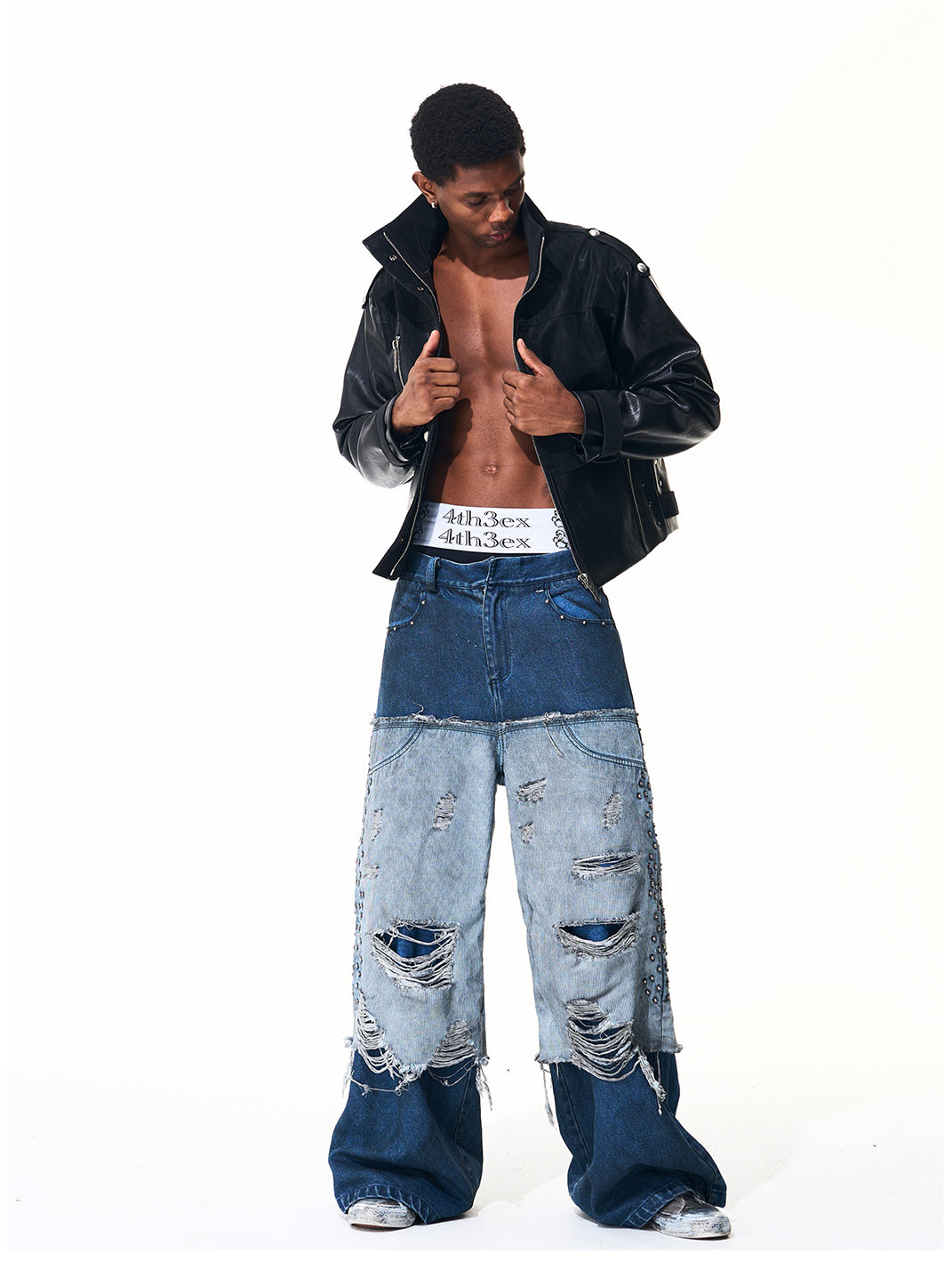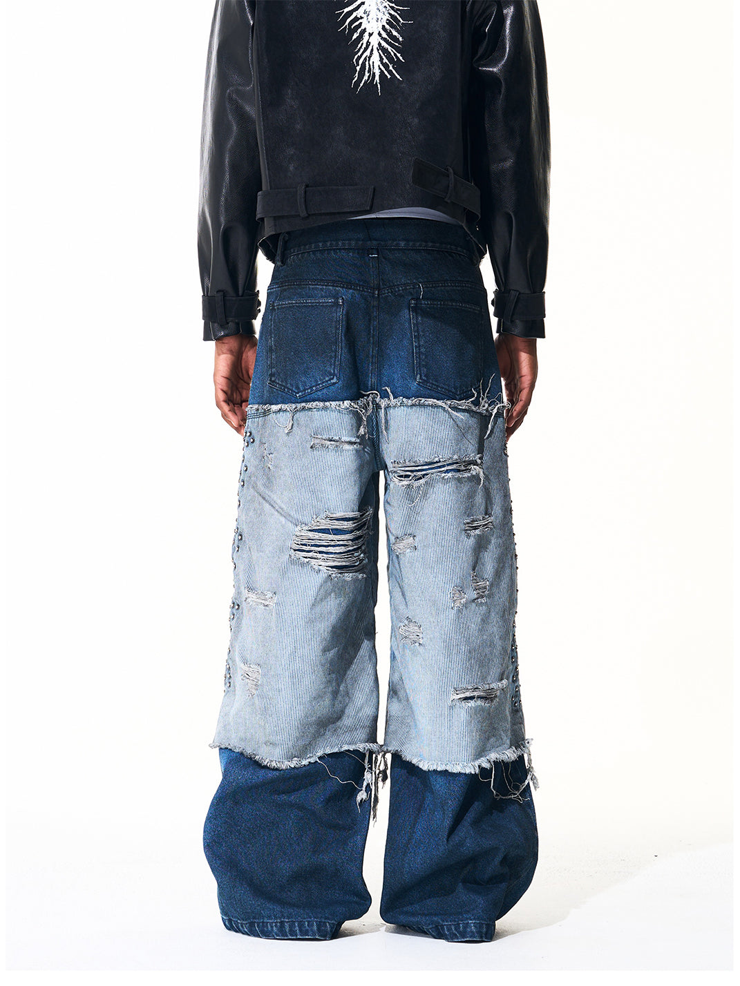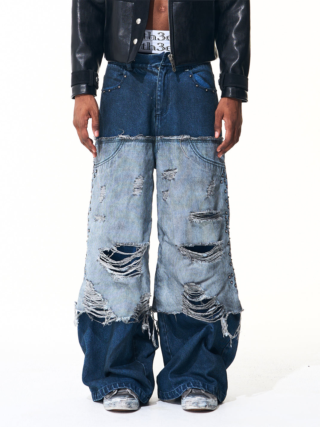 Fourth3ex | Ripped Patchework Wide Leg Jeans