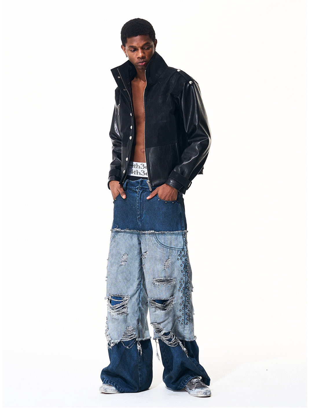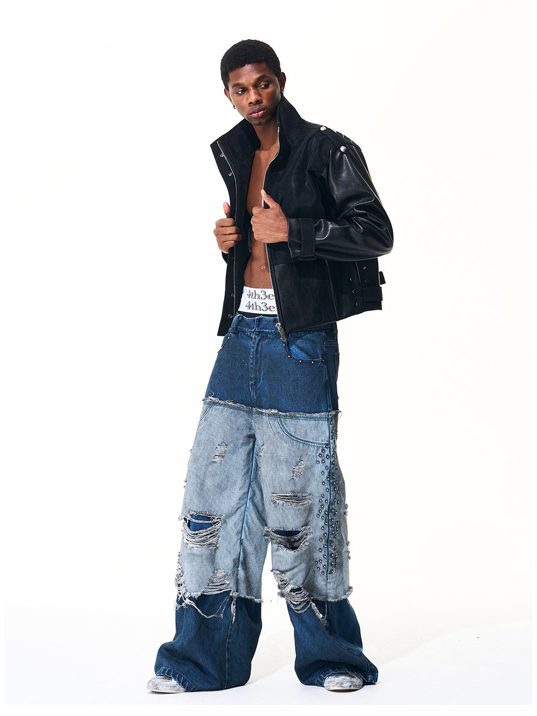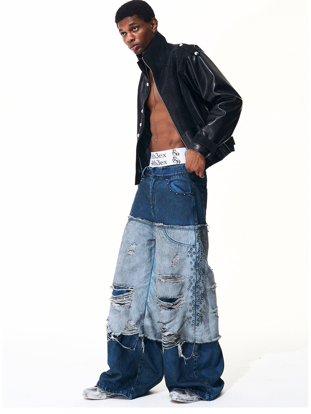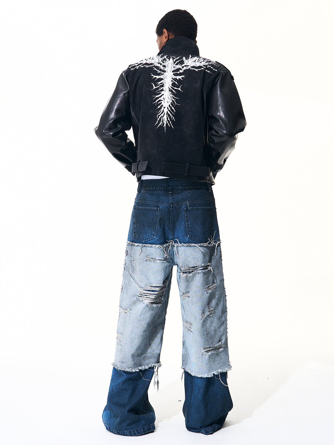 Fourth3ex | Ripped Patchework Wide Leg Jeans