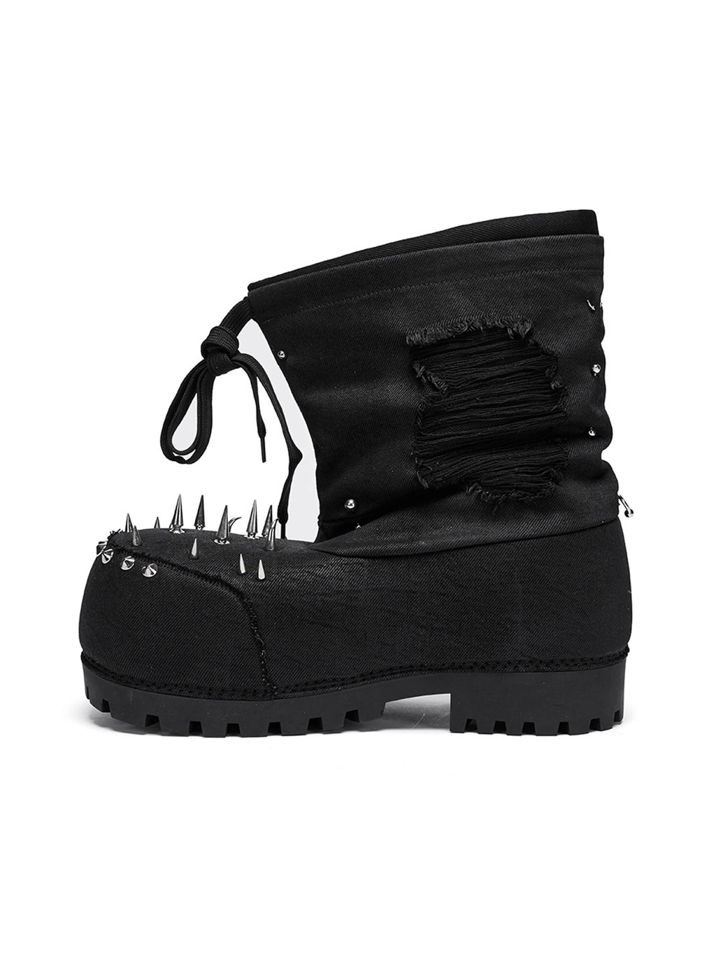 Fourth3ex丨Rivet Waxed Destroyed Denim Boots