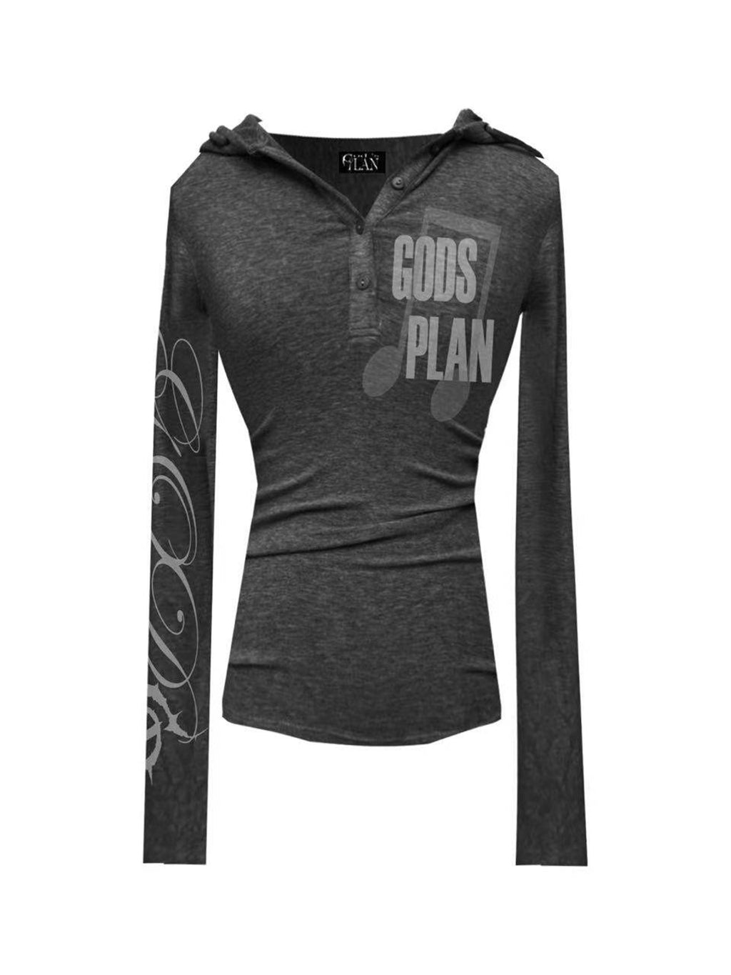 Gods plan | Musical Note Pattern Waist Cinched Hooded Top Skip to content