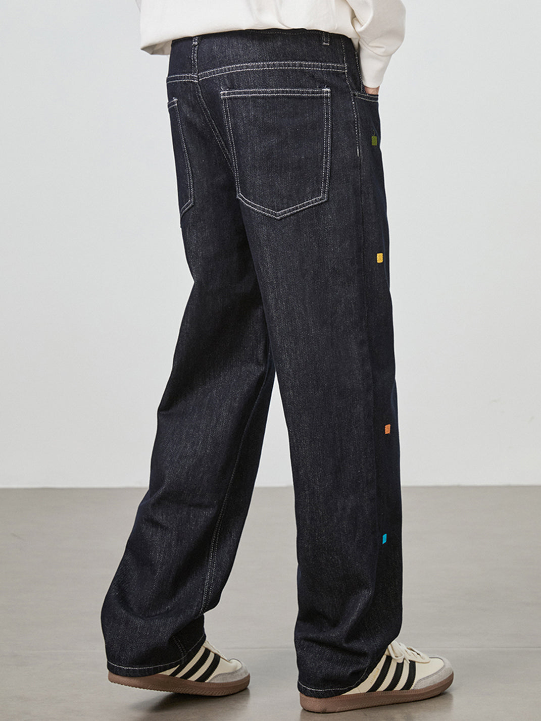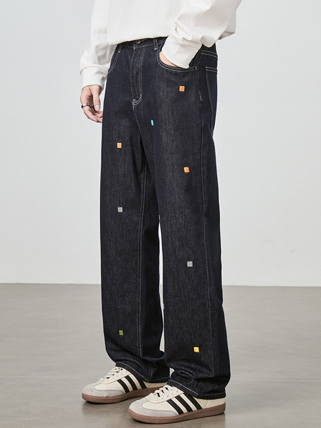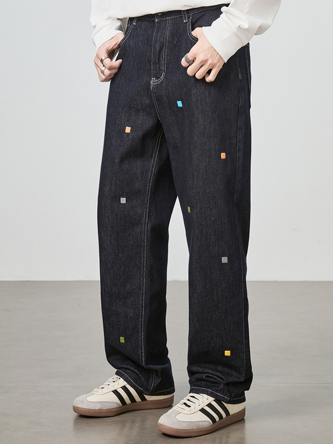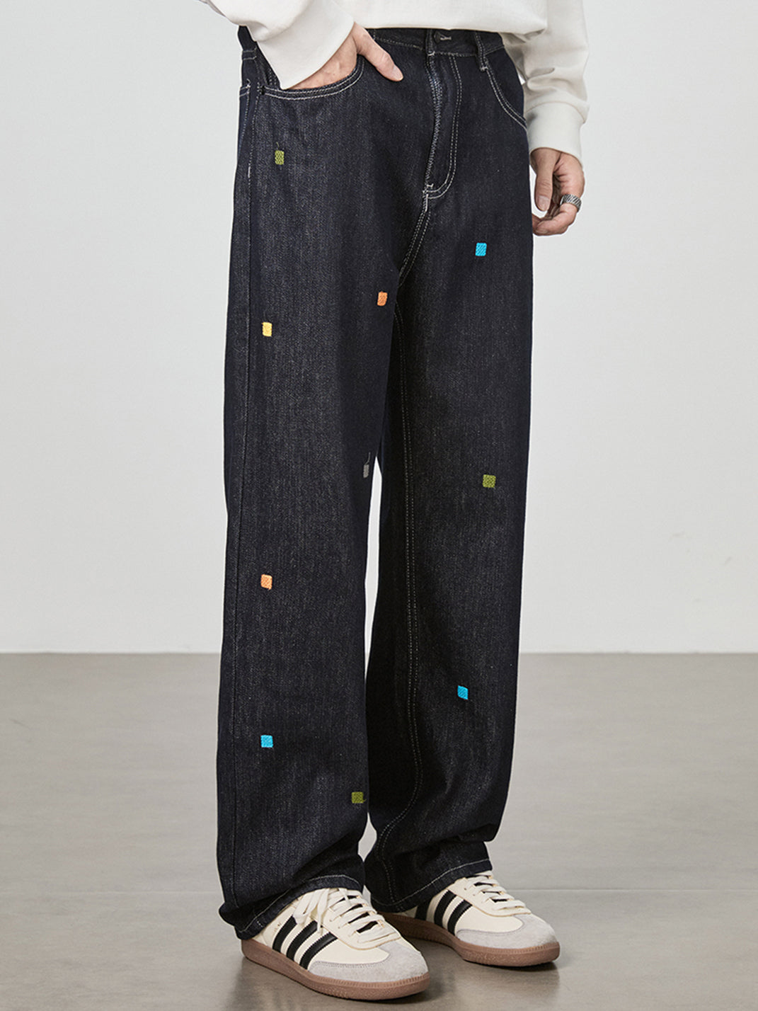 GURBAKS | Street Style Embroidered Wide-Leg Denim Pants