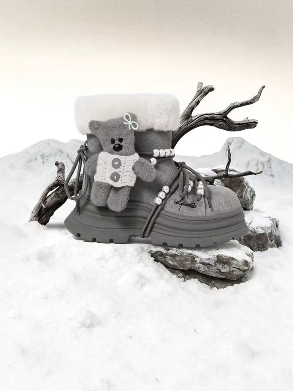 KILLWINNER | Bear Plush Platform Snow Boots-Gray