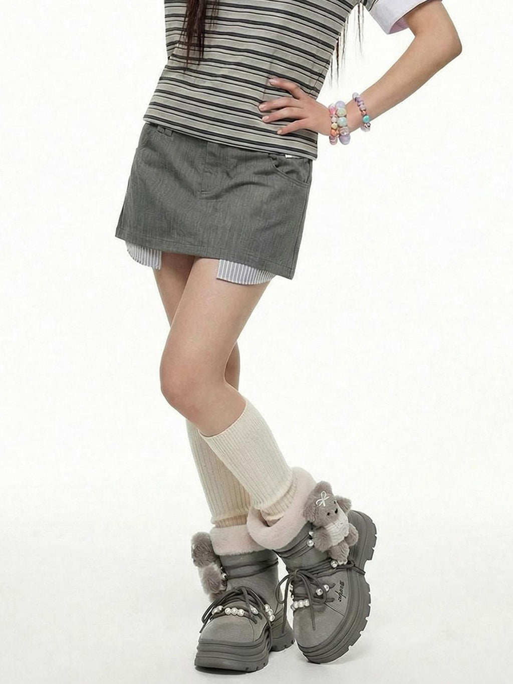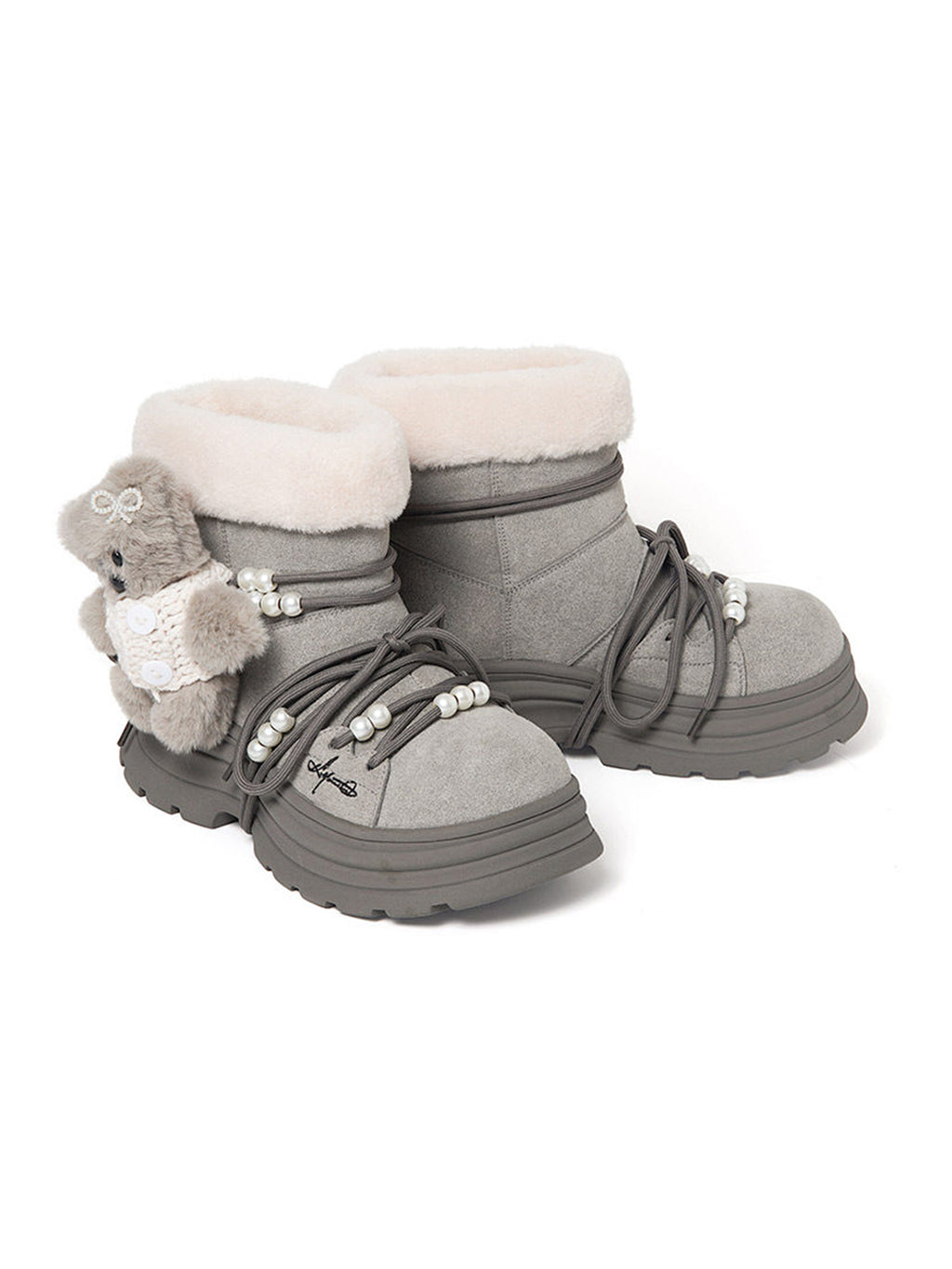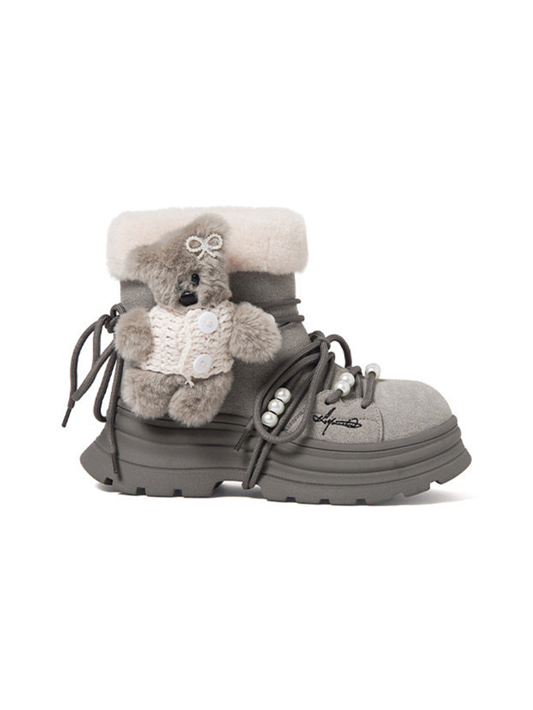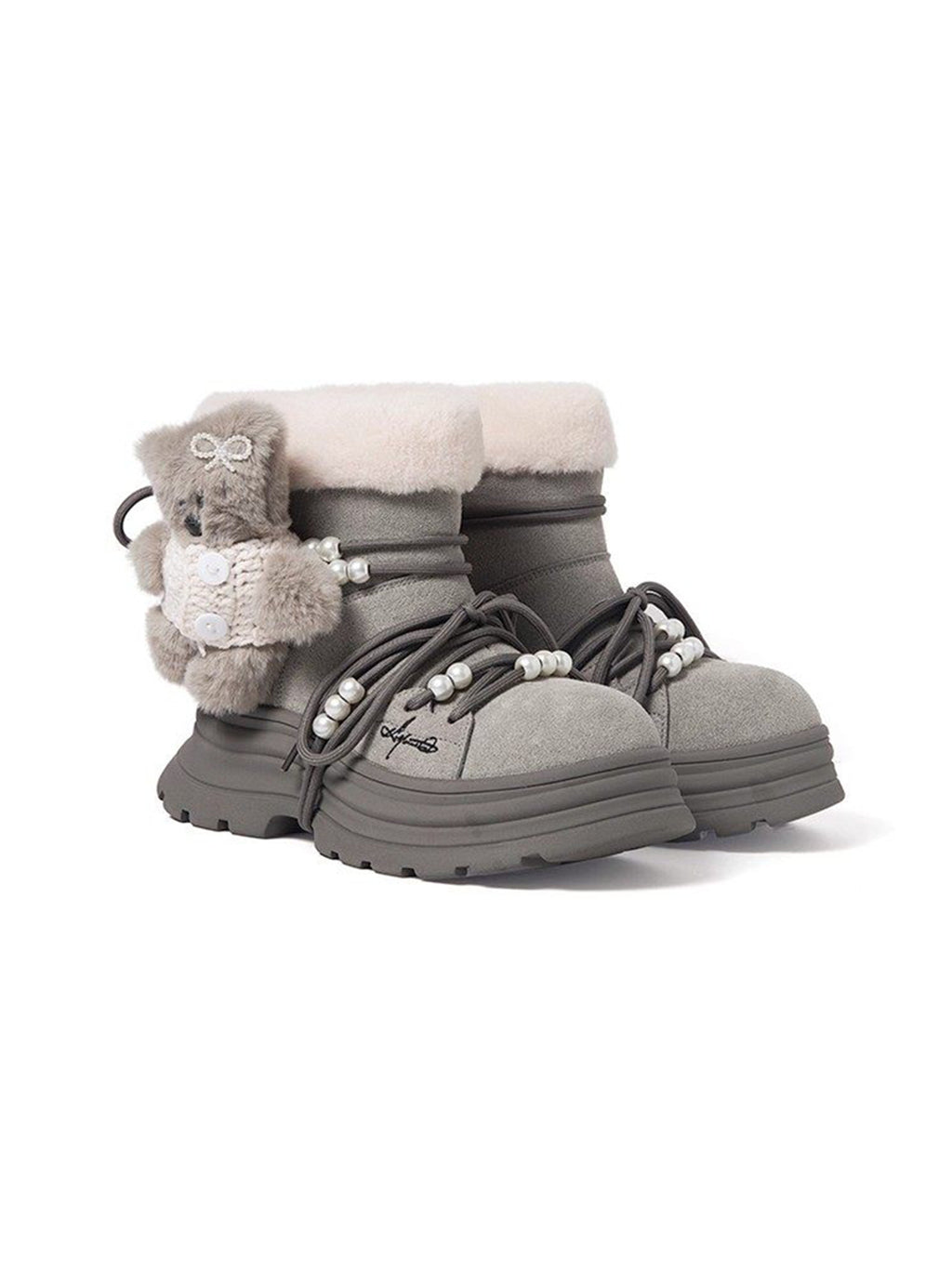 KILLWINNER | Bear Plush Platform Snow Boots-Gray Skip to content