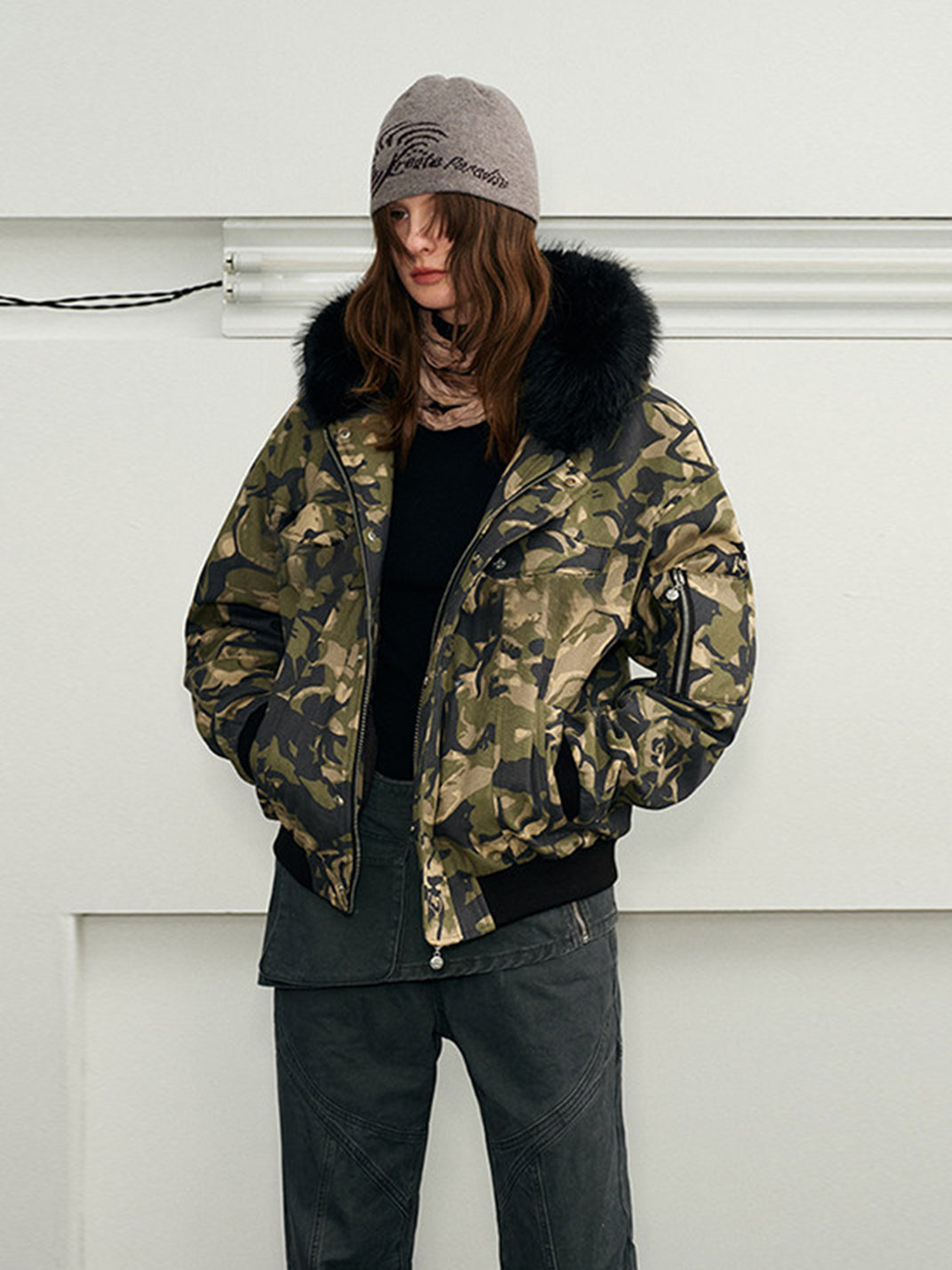 KREATE | Camouflage Long-haired Hooded Cotton Jacket