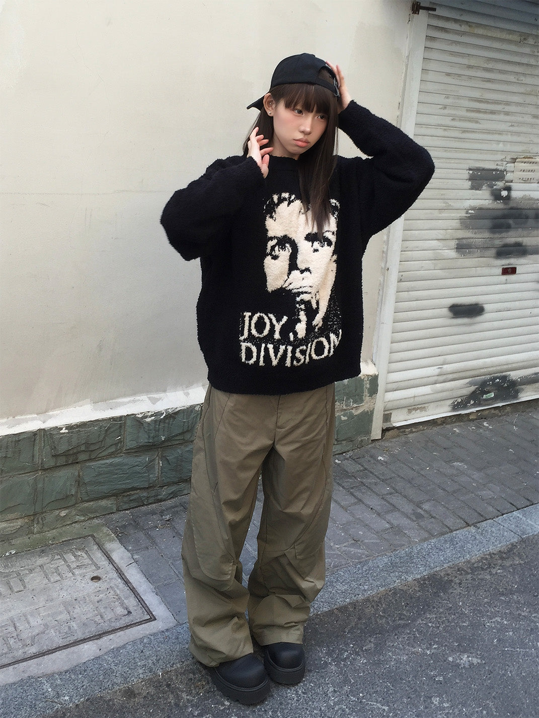 KREATE | Faux Fur Portrait Jacquard Pullover Sweater Skip to content