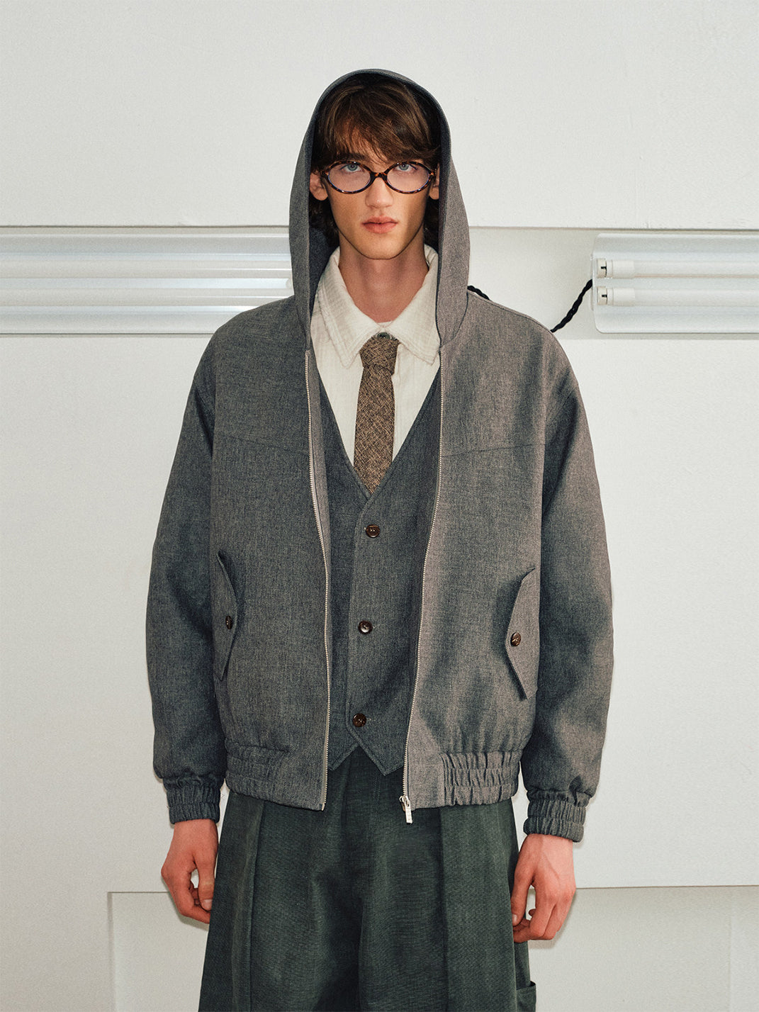 KREATE | Faux Two-Piece V-Neck Spliced Casual Jacket