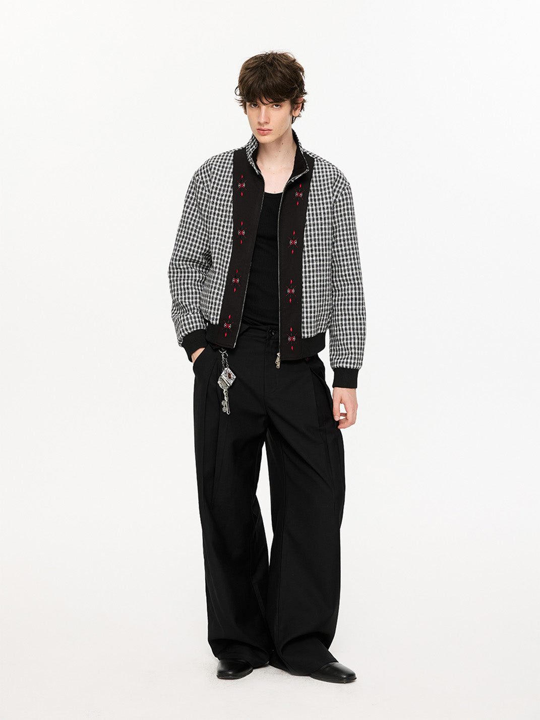 KREATE | Pleated Houndstooth-Detail Trousers Skip to content