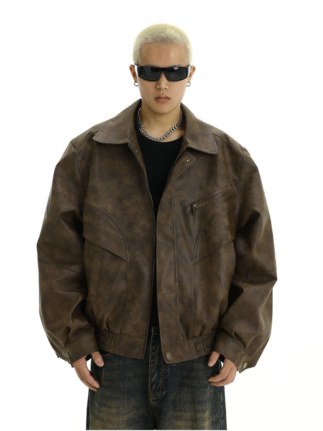 MEBXX | Vintage Brown Leather Jacket Oversized Bomber Skip to content