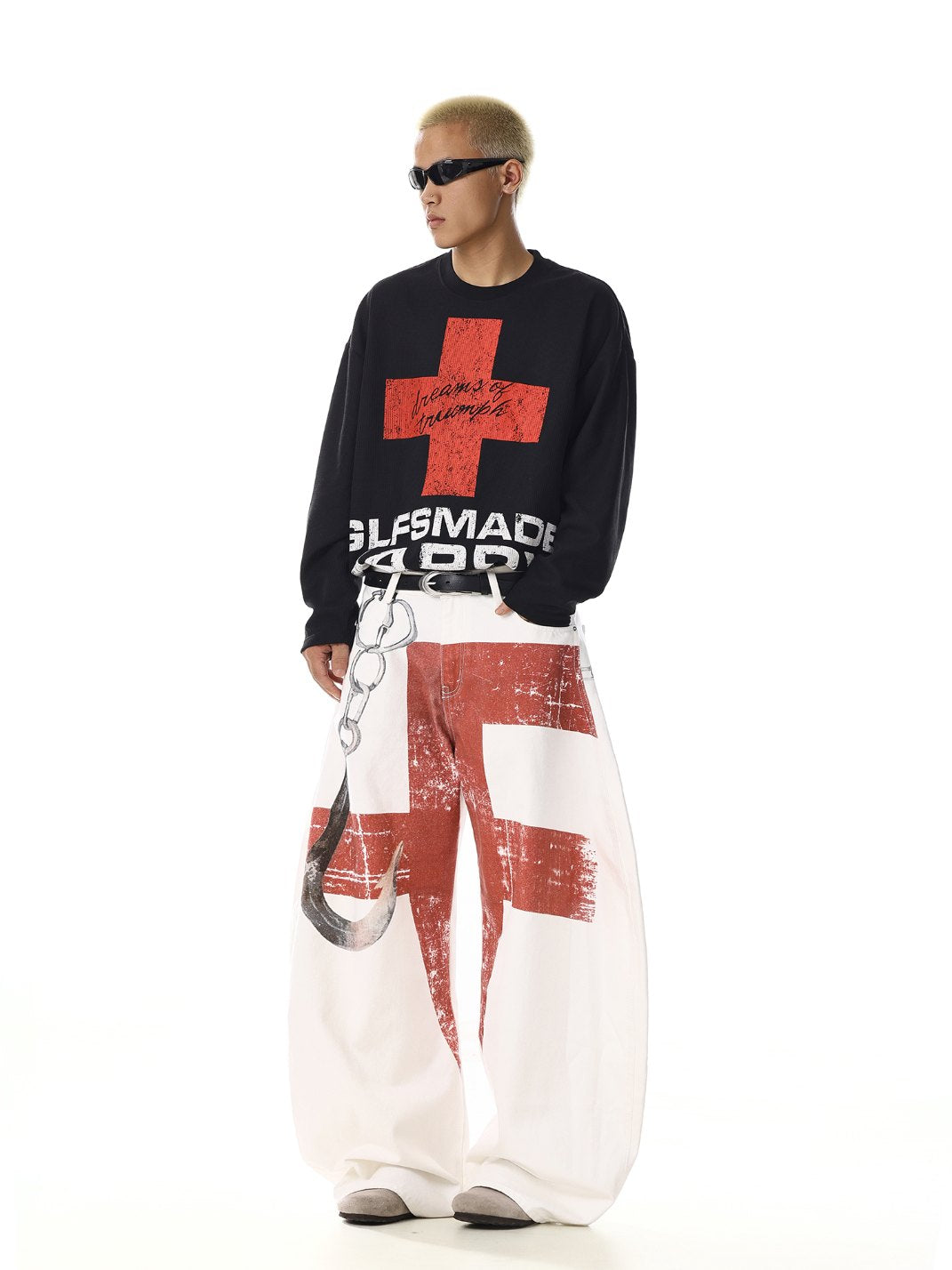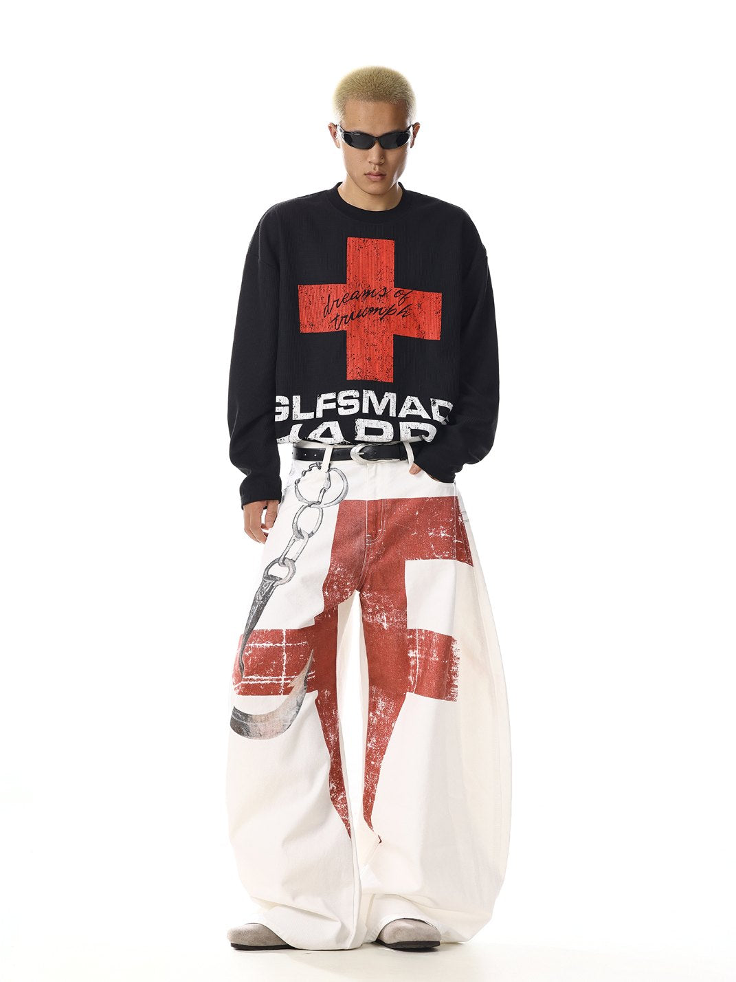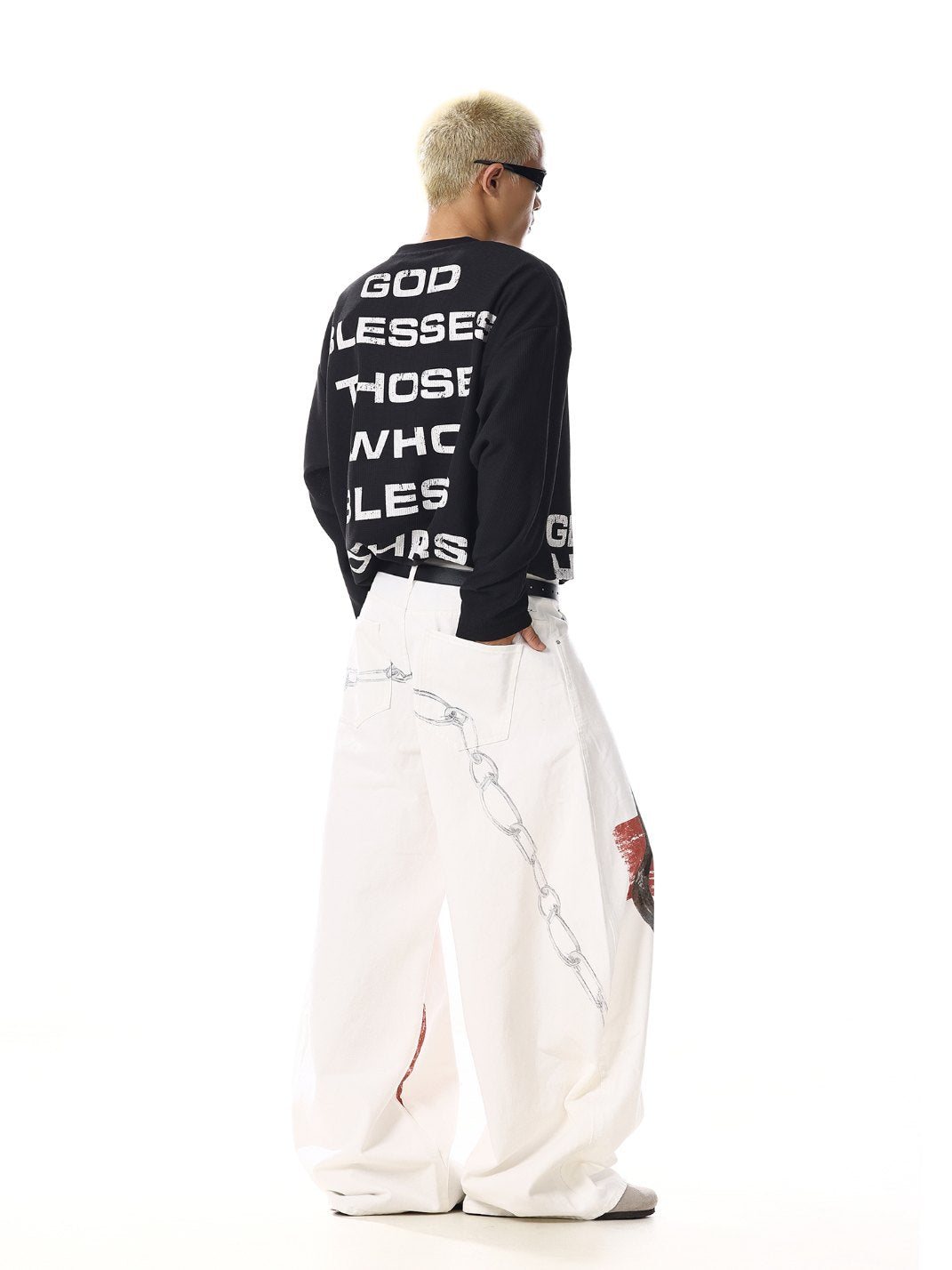 MEBXX | Vintage-Inspired Deconstructed Graphic Wide-Leg Jeans