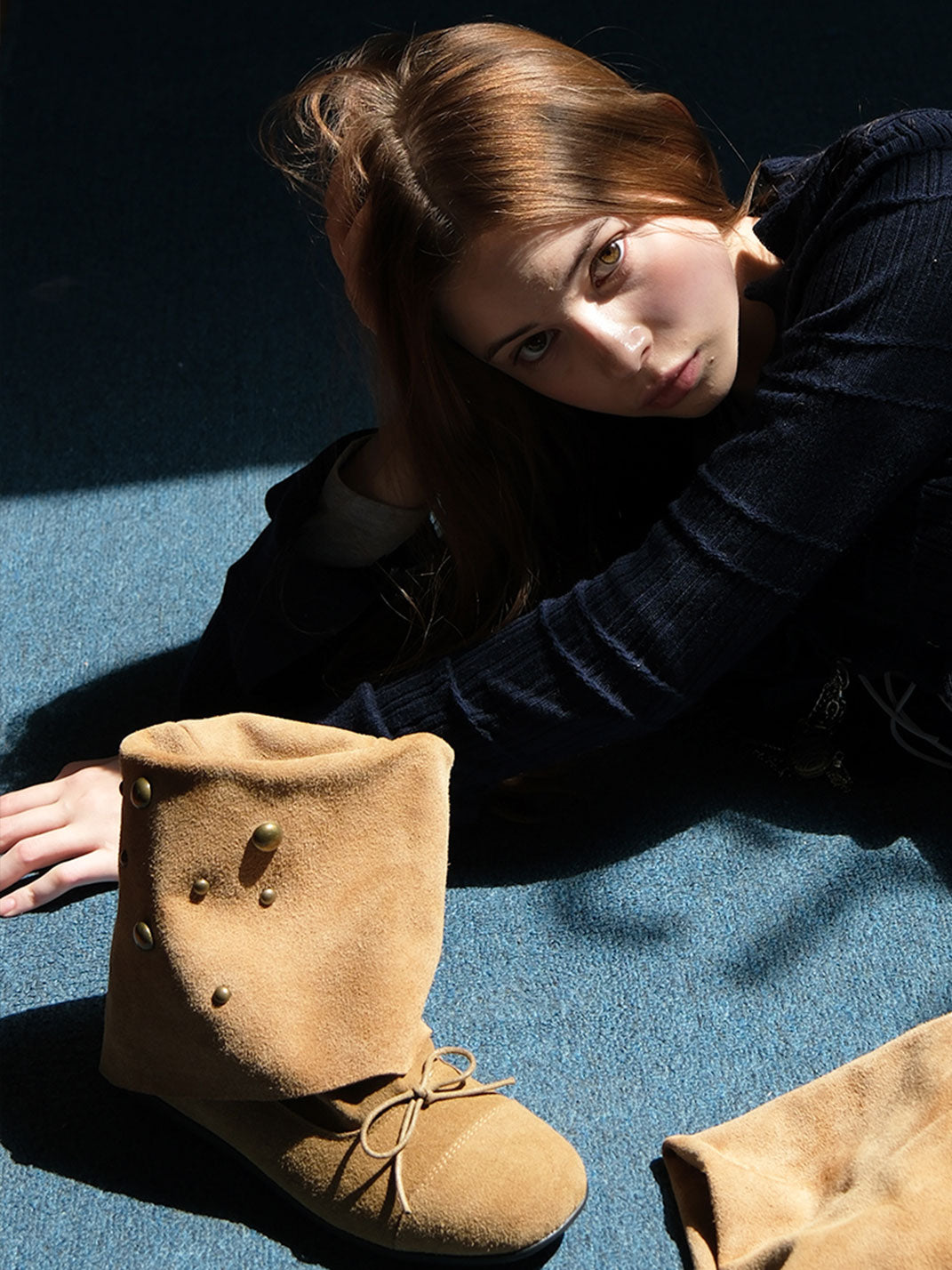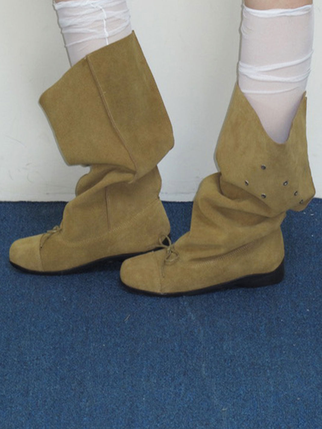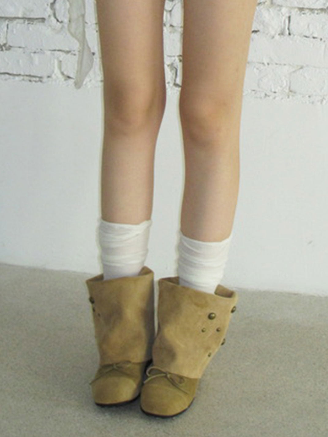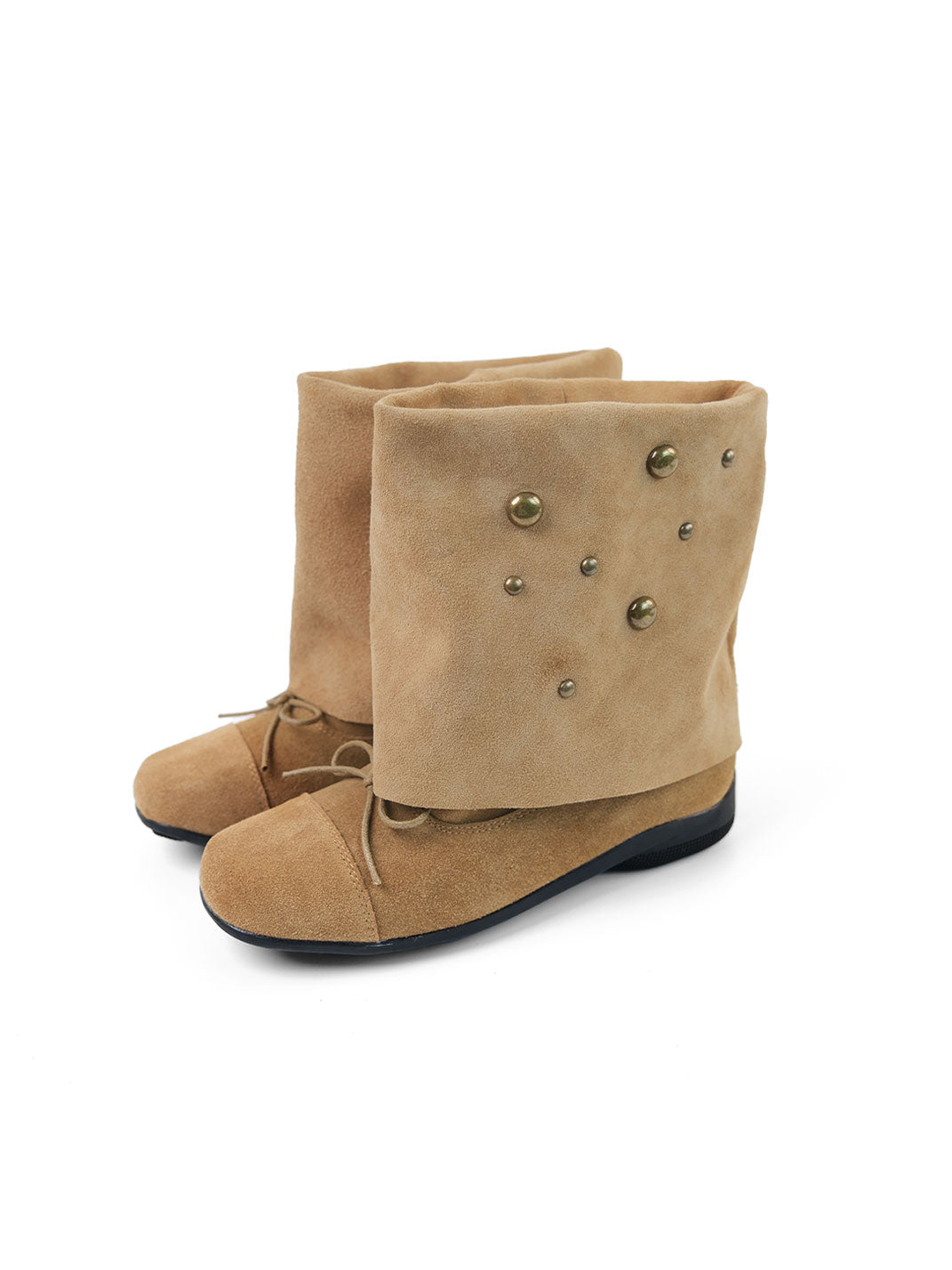 Mooreyu Atelier | Vintage Cow Suede Bow Stacked Boots Skip to content