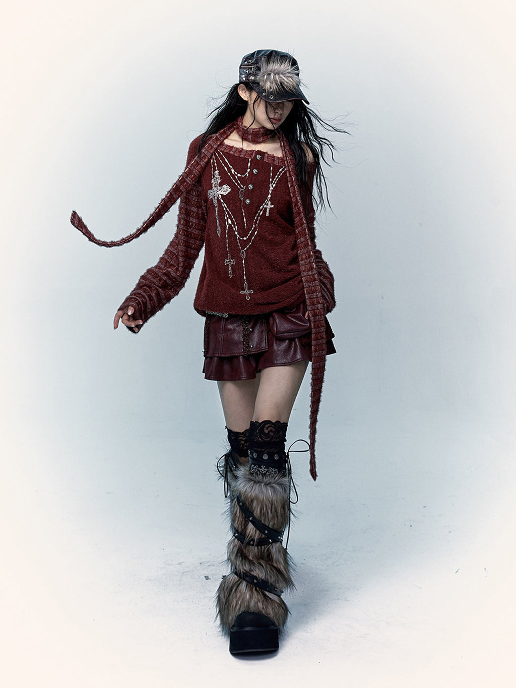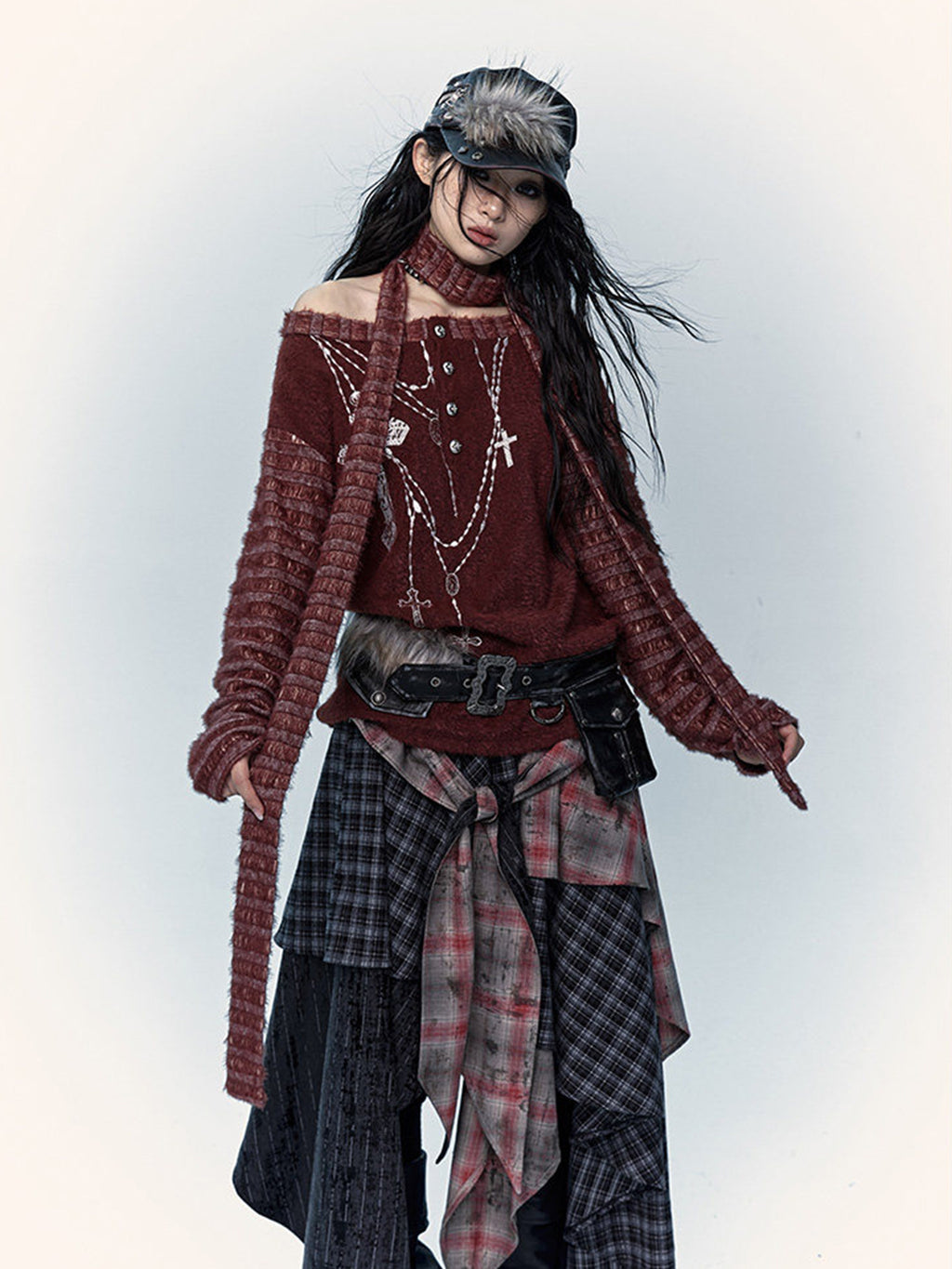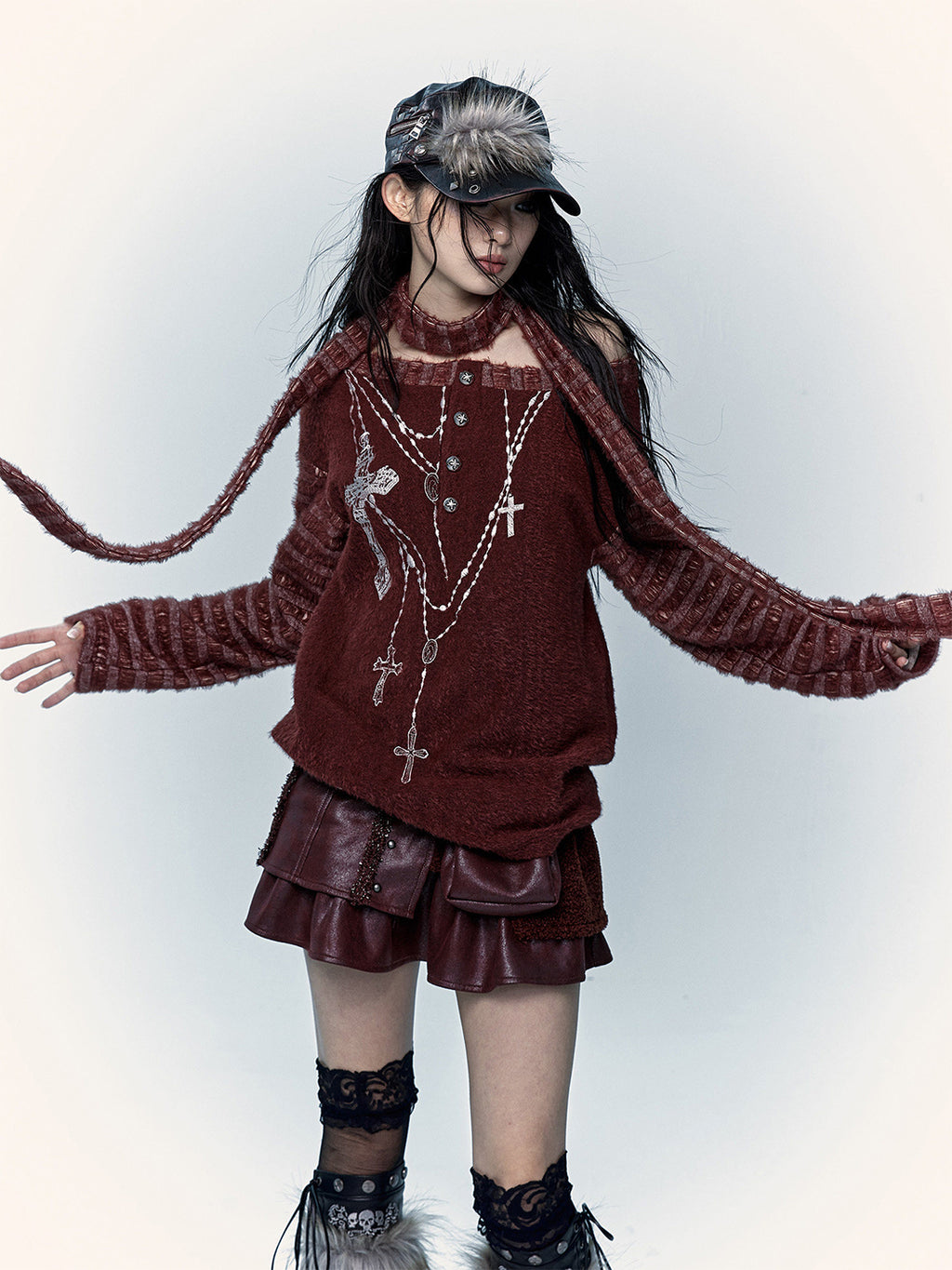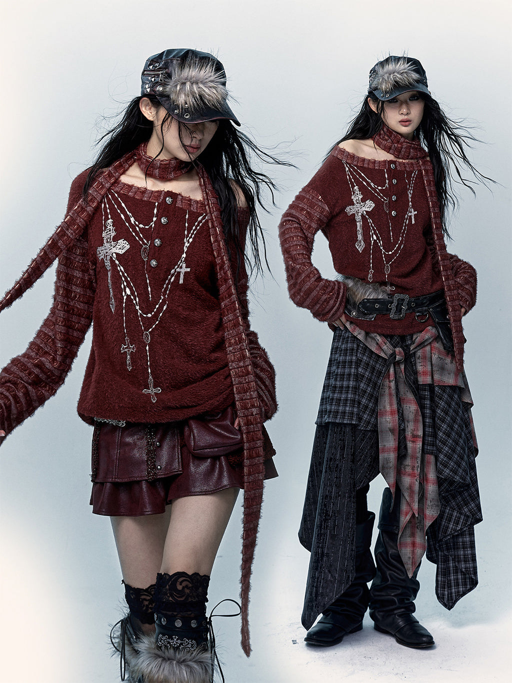 NO ROMANCE | Cross-Shaped Off-Shoulder Knit Top
