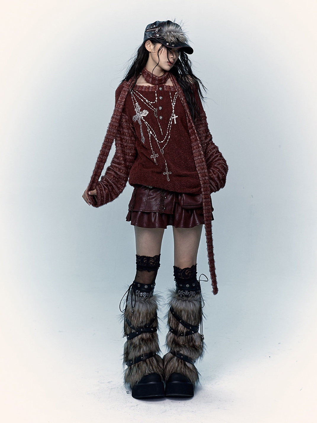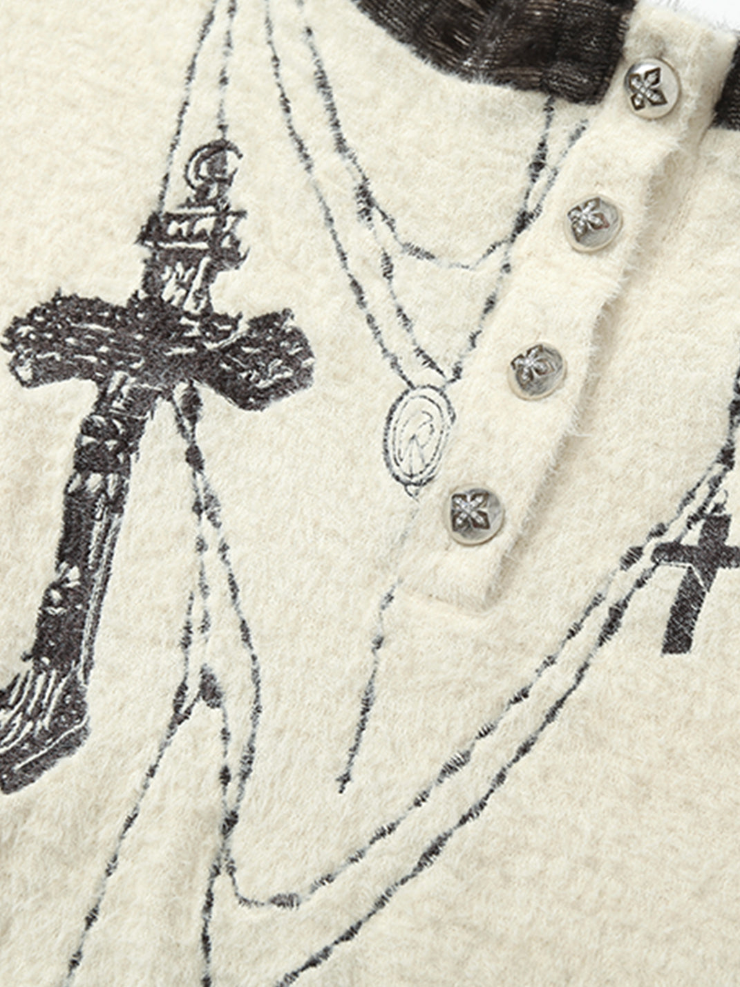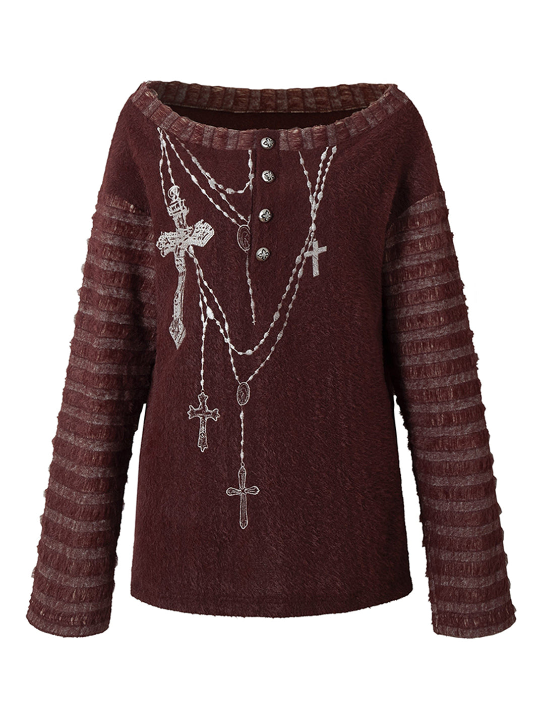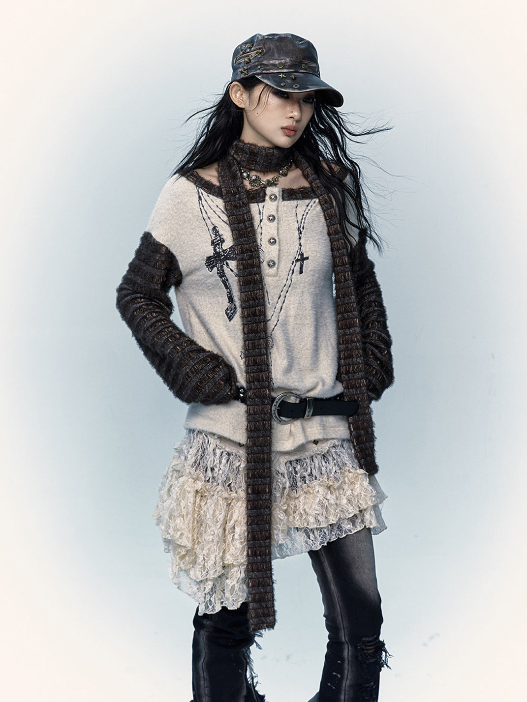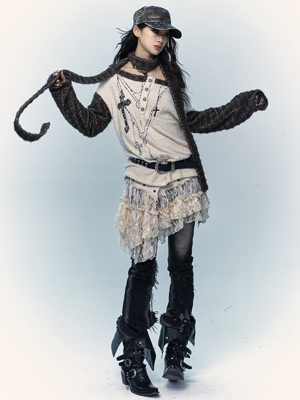 NO ROMANCE | Cross-Shaped Off-Shoulder Knit Top