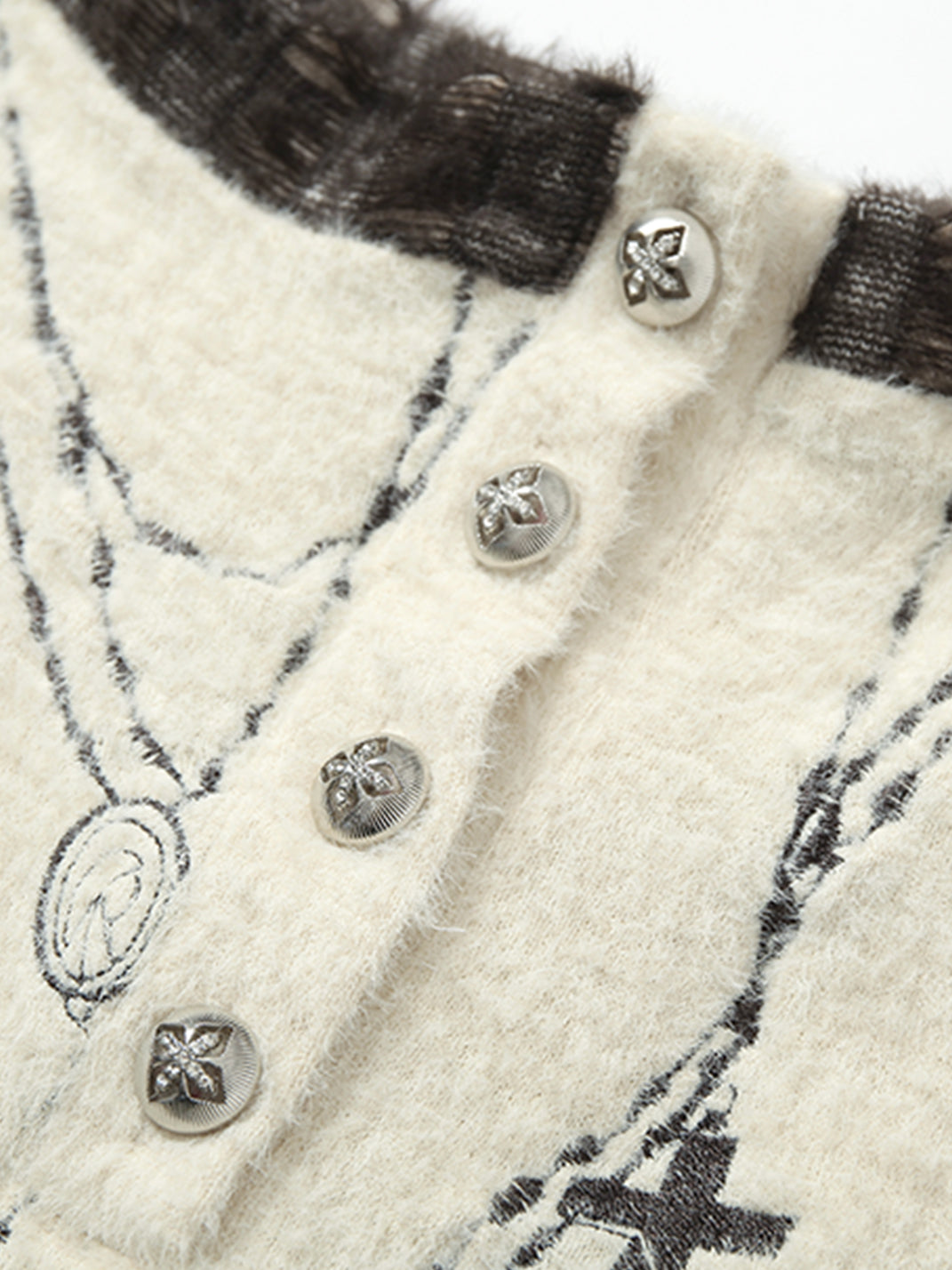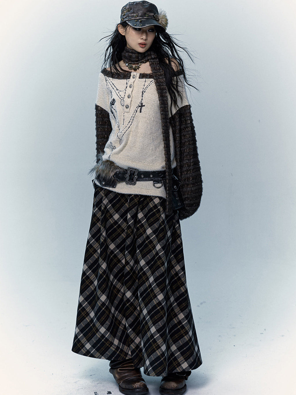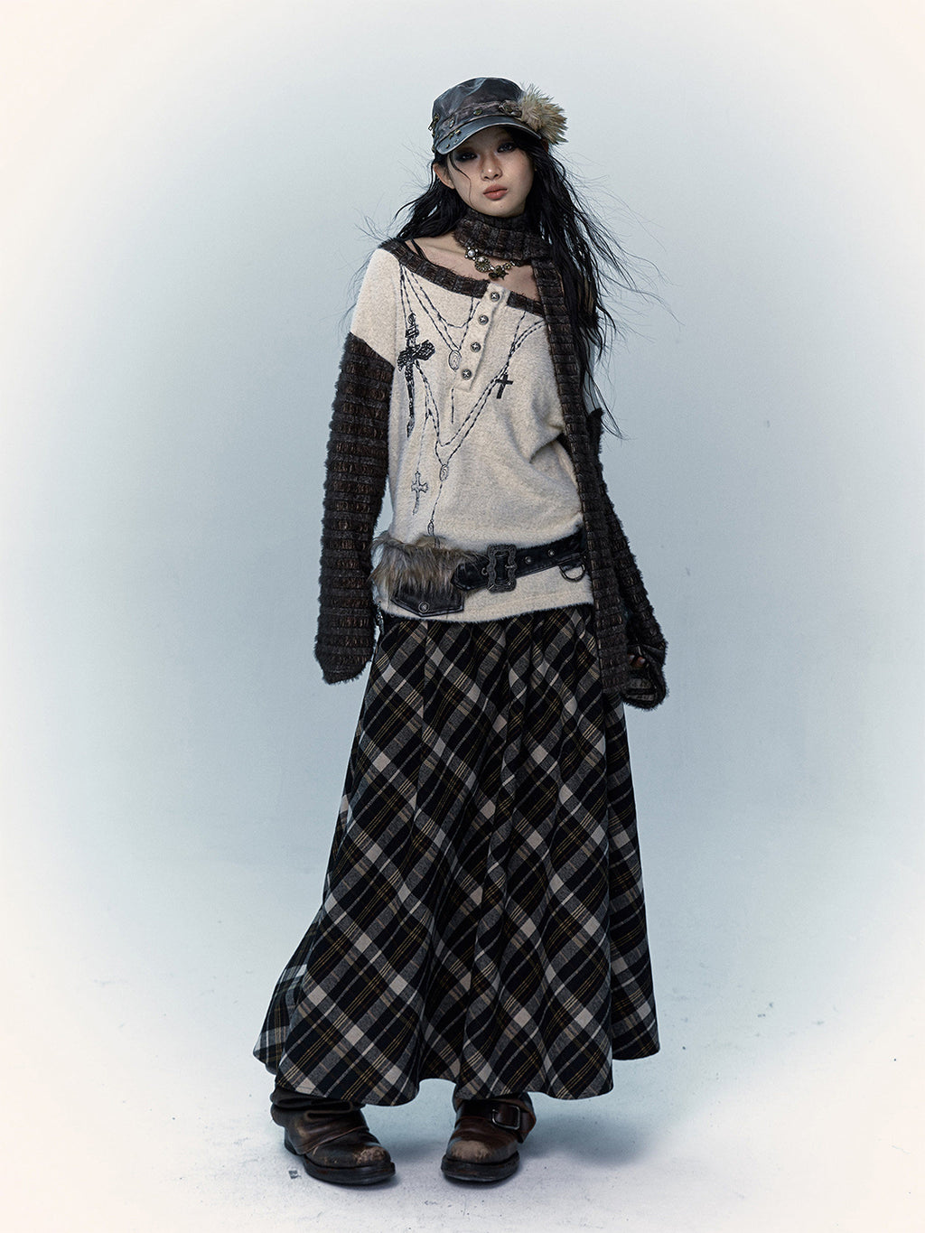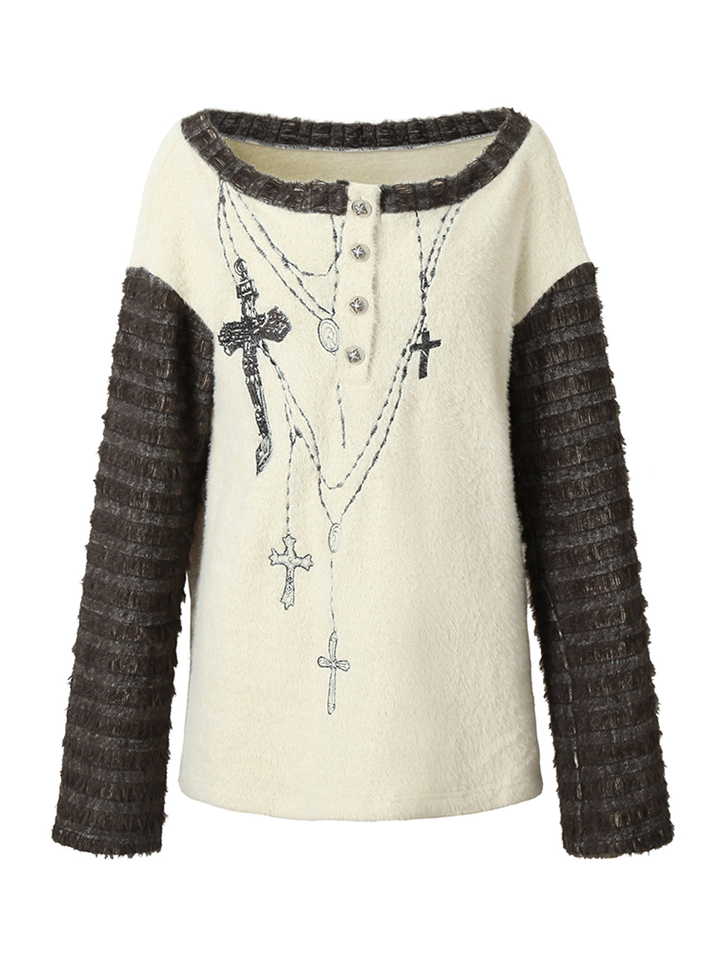 NO ROMANCE | Cross-Shaped Off-Shoulder Knit Top