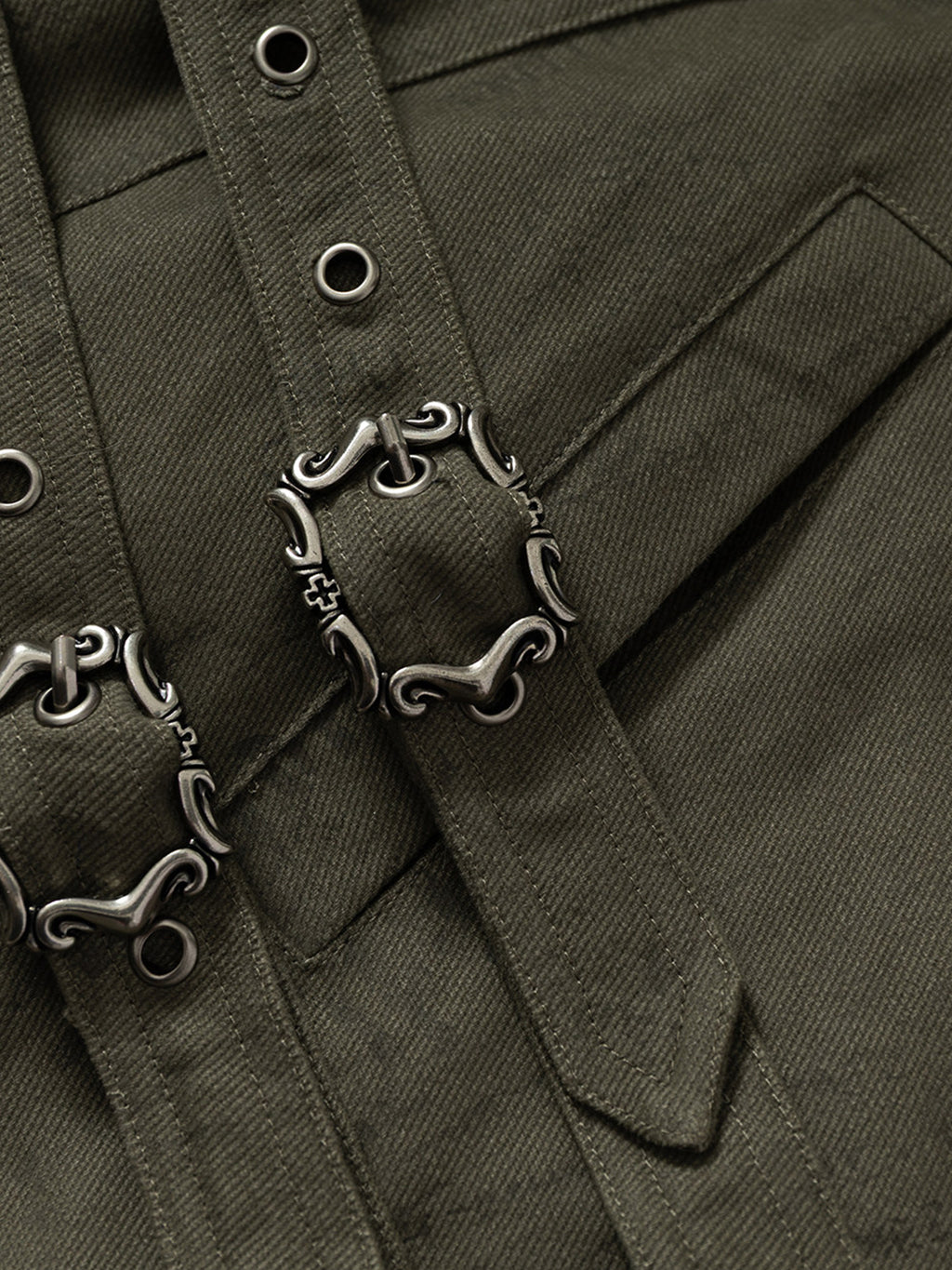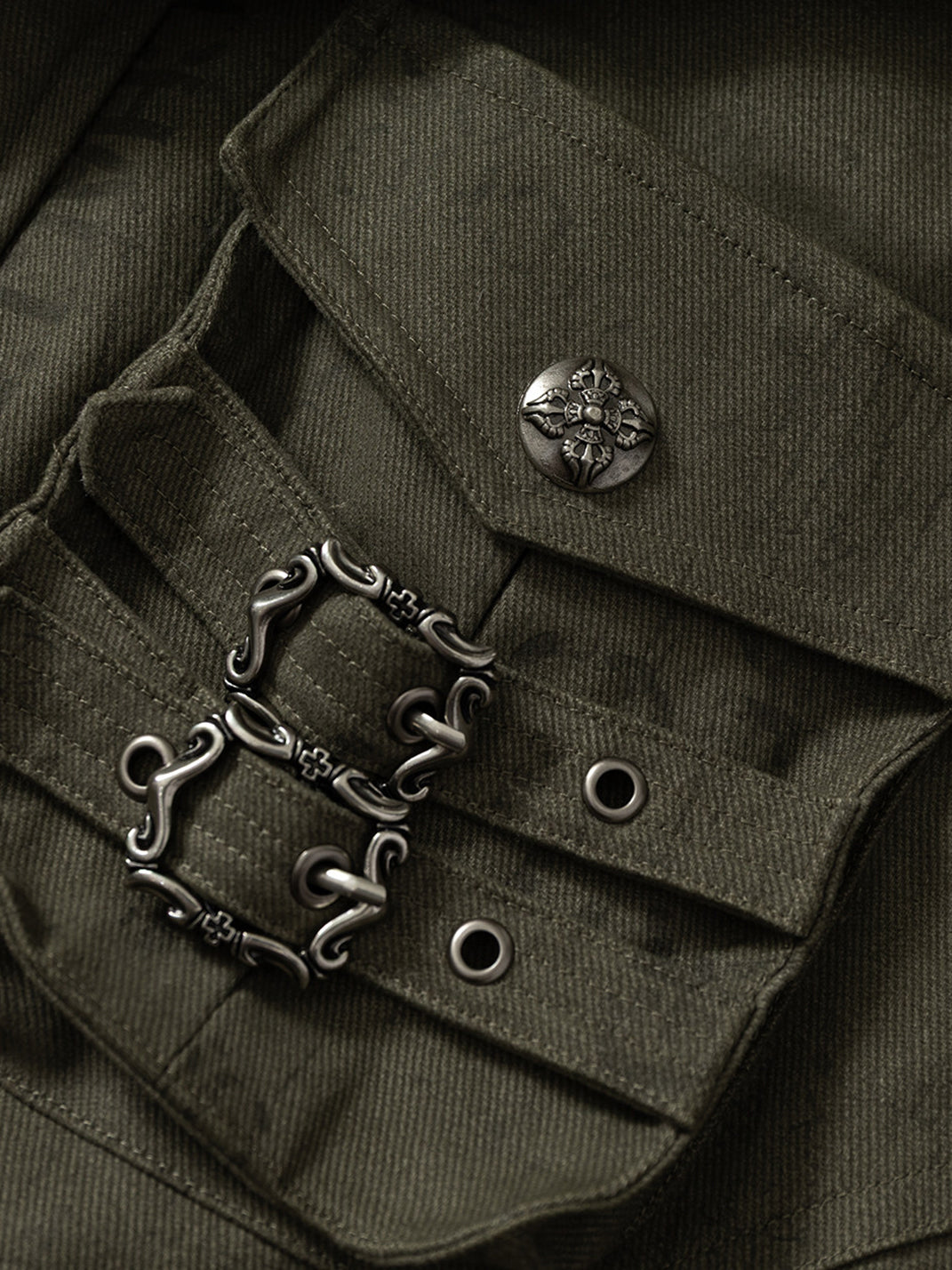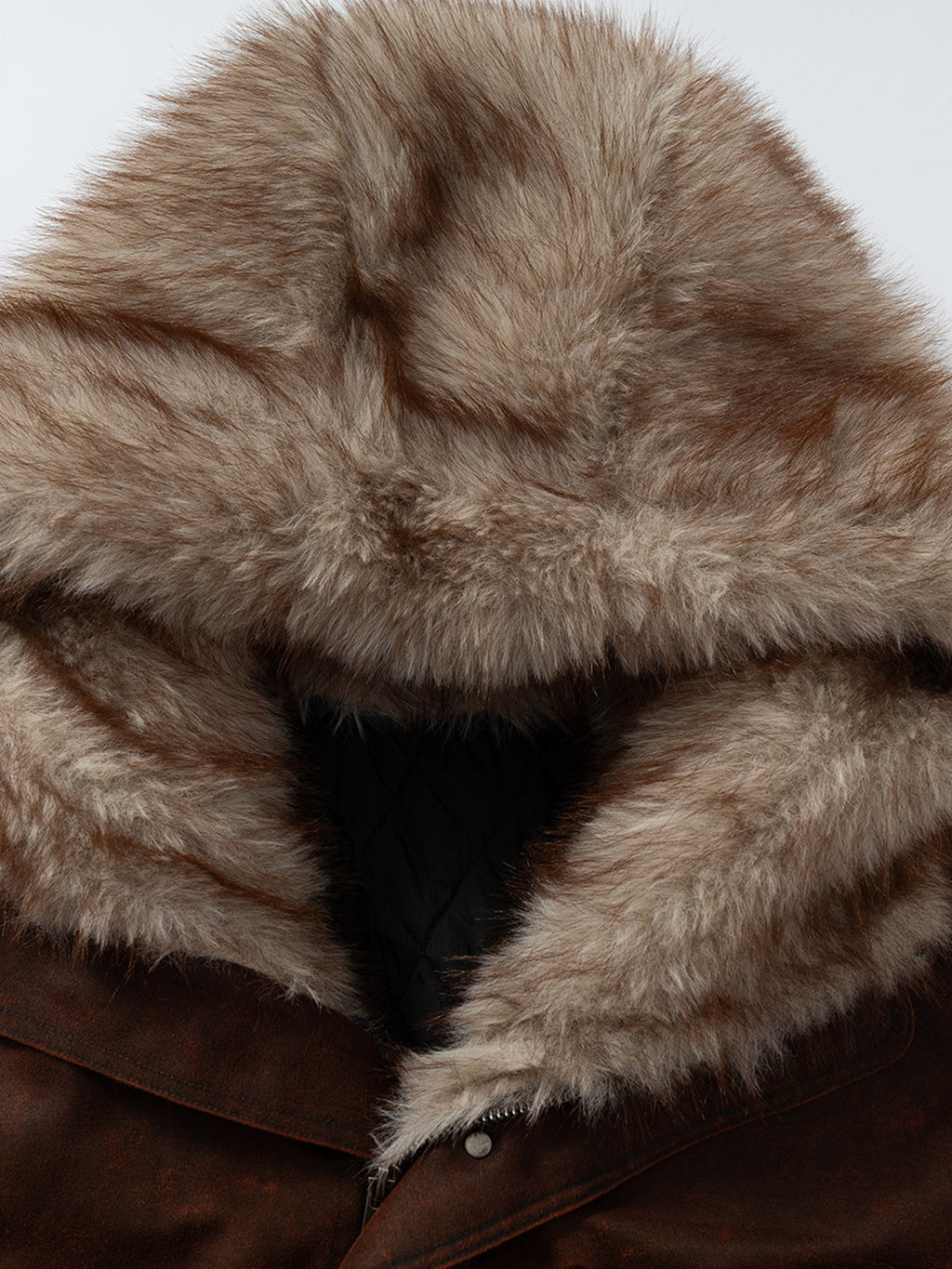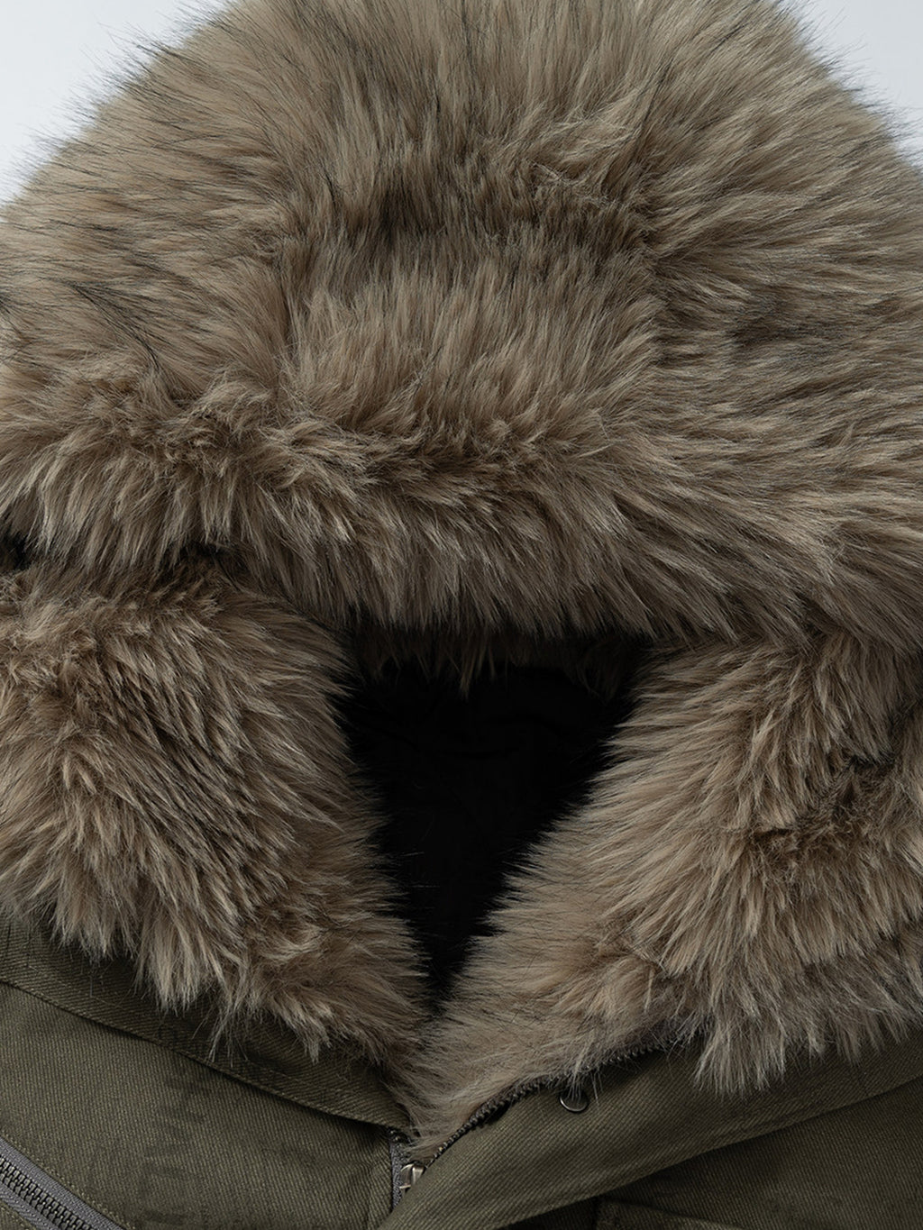 NO ROMANCE | Distressed 3D Pocket and Fur Collar Cotton Coat