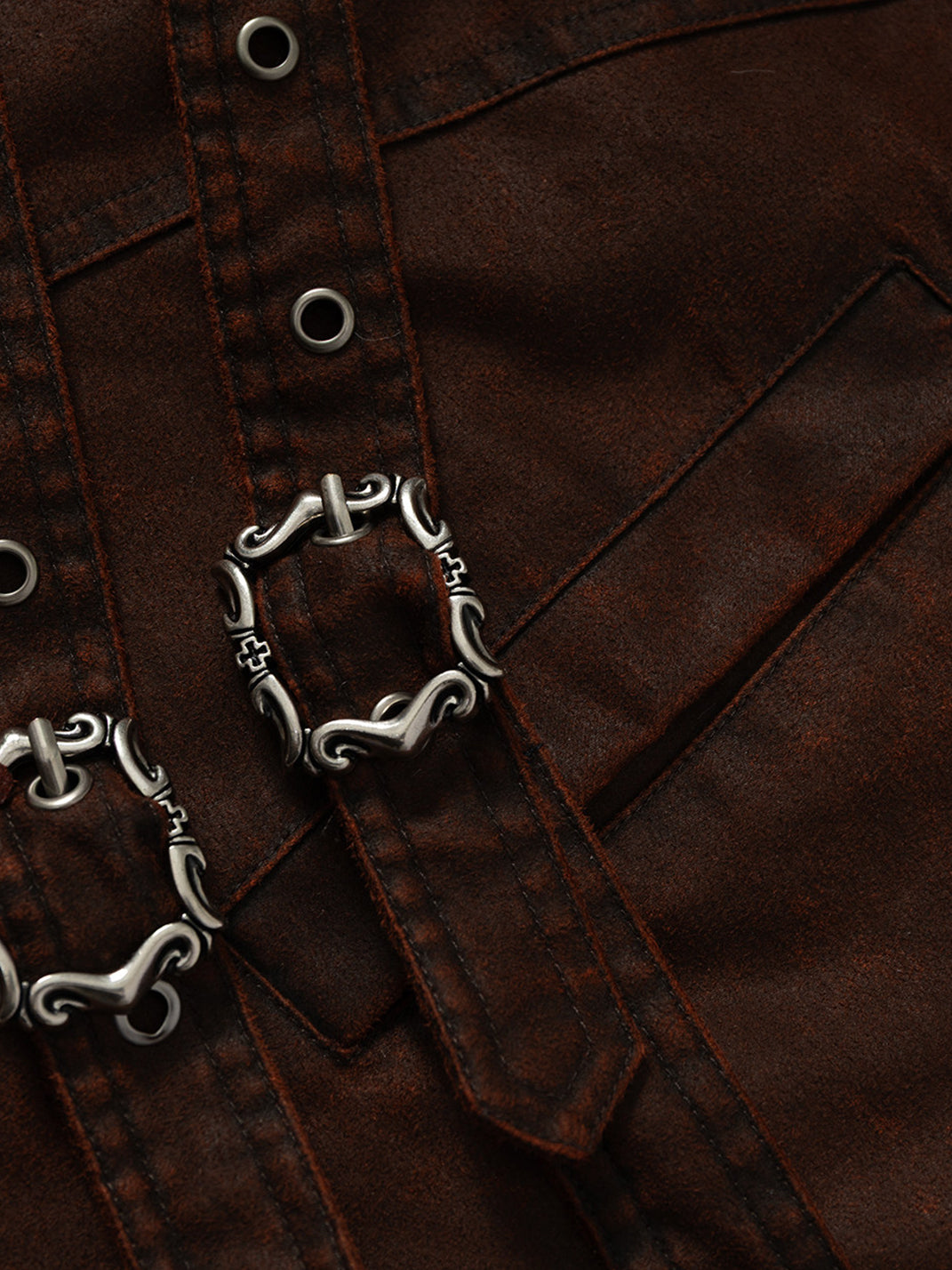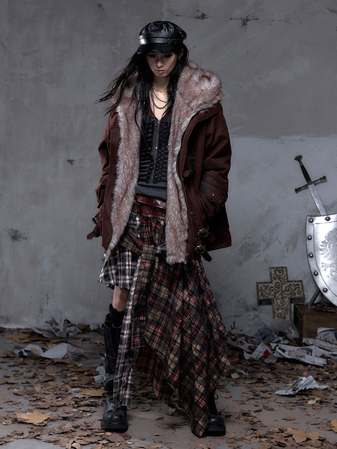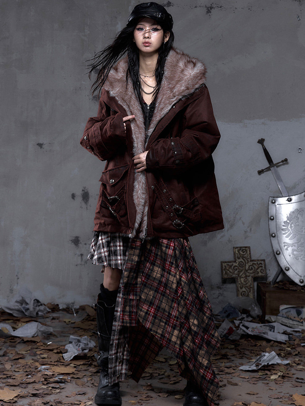 NO ROMANCE | Distressed 3D Pocket and Fur Collar Cotton Coat Skip to content