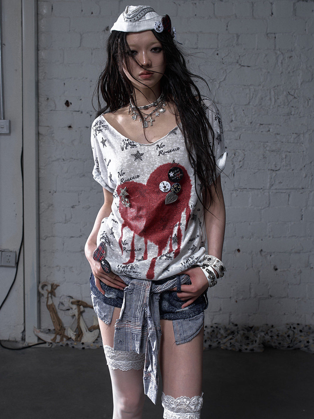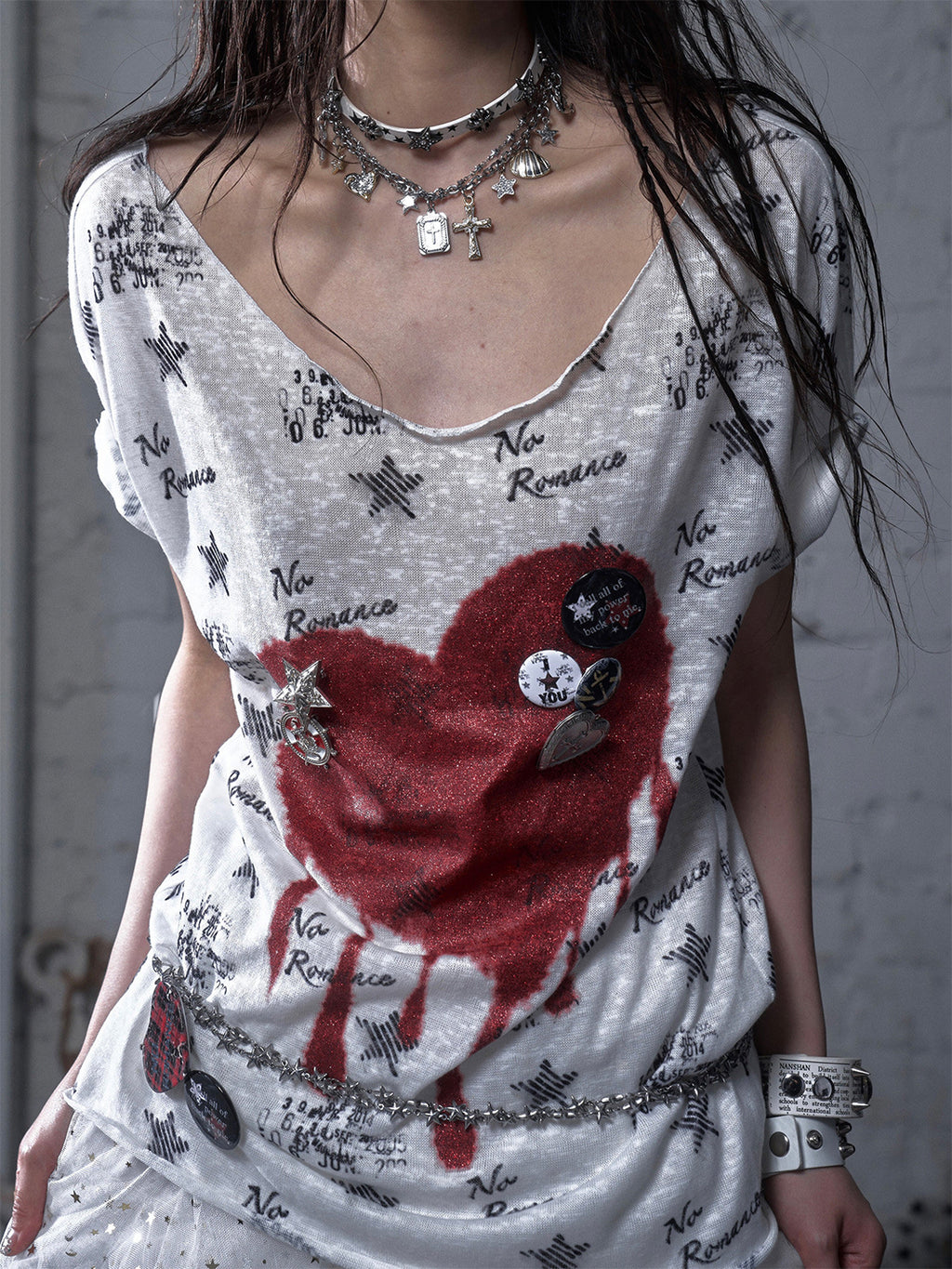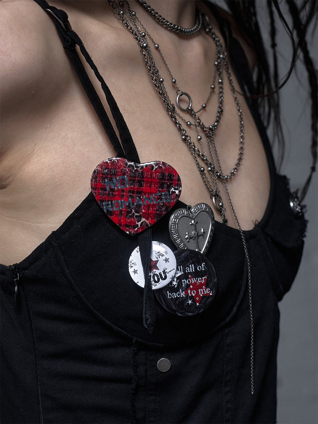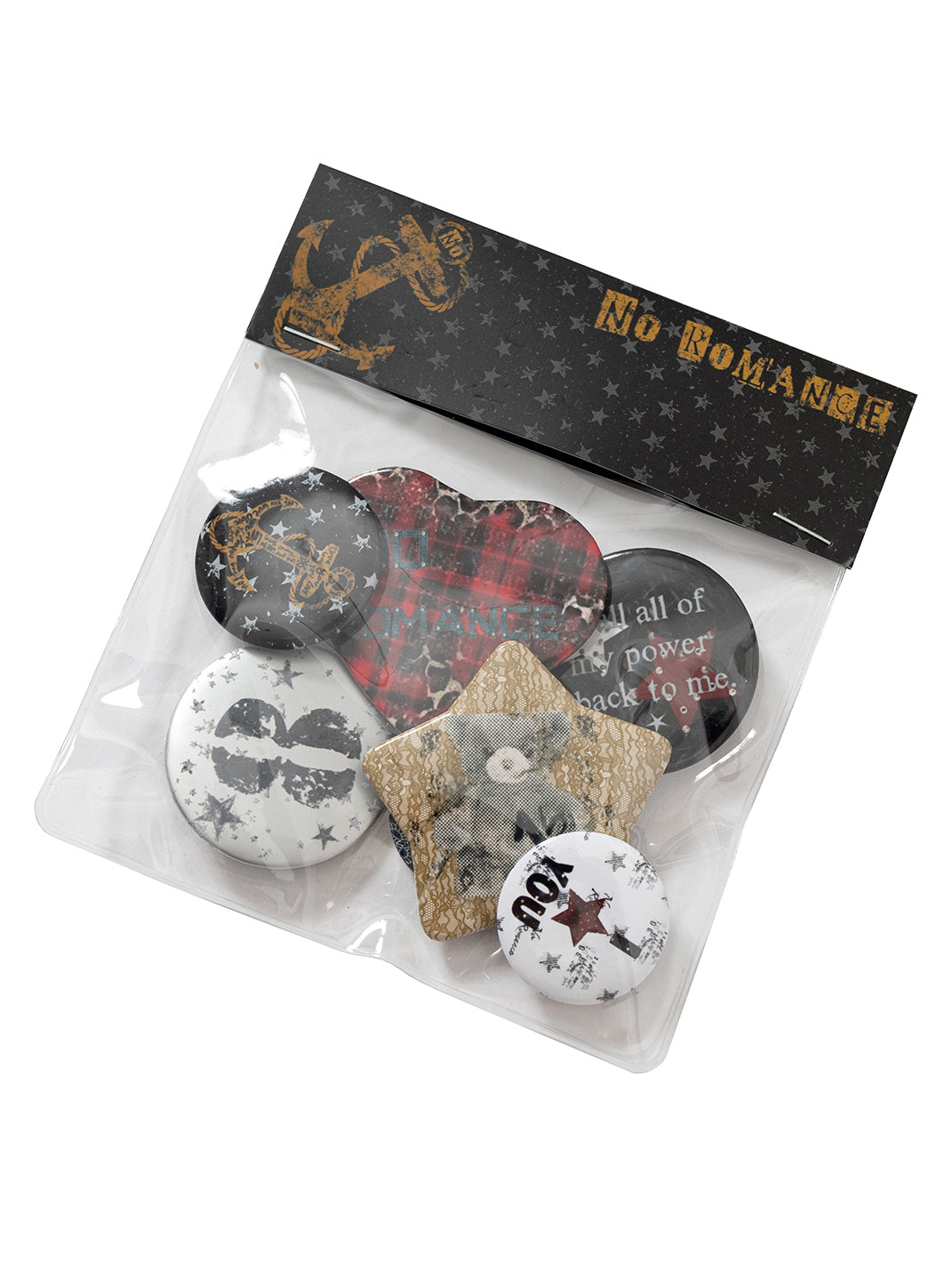 NO ROMANCE | Distressed Design Badge Metal Brooch Skip to content
