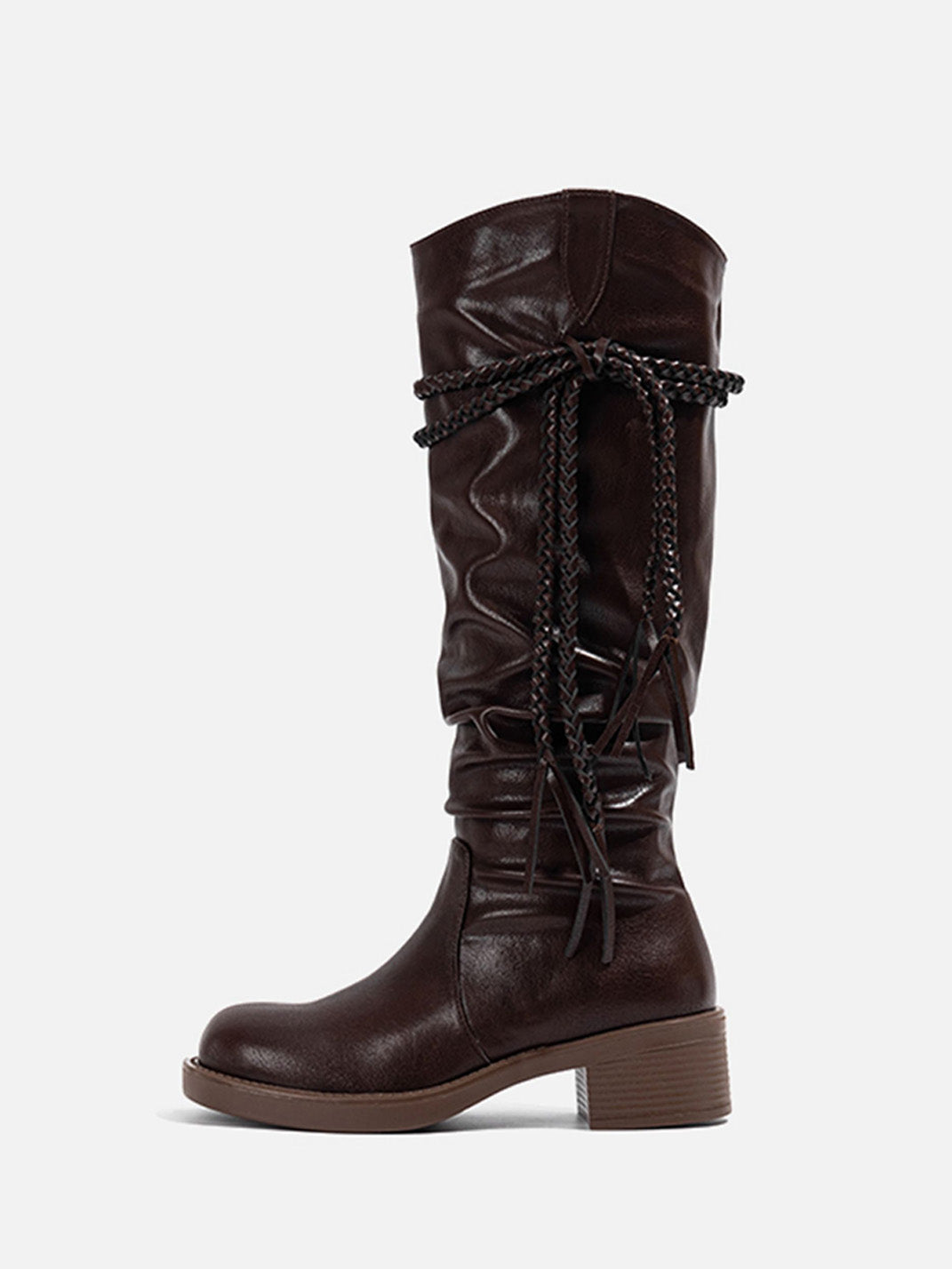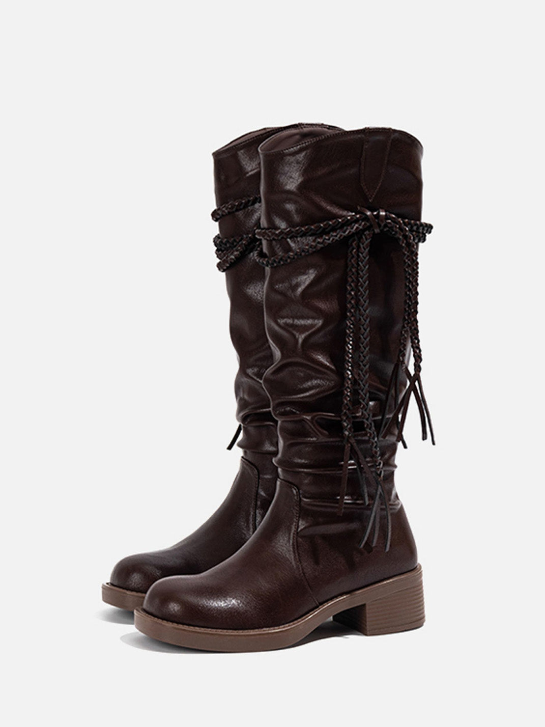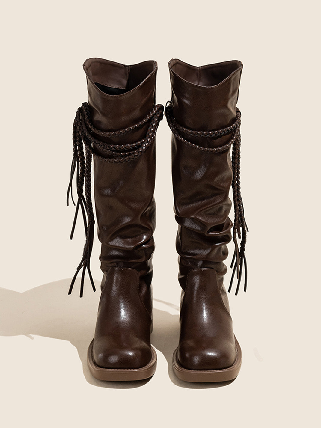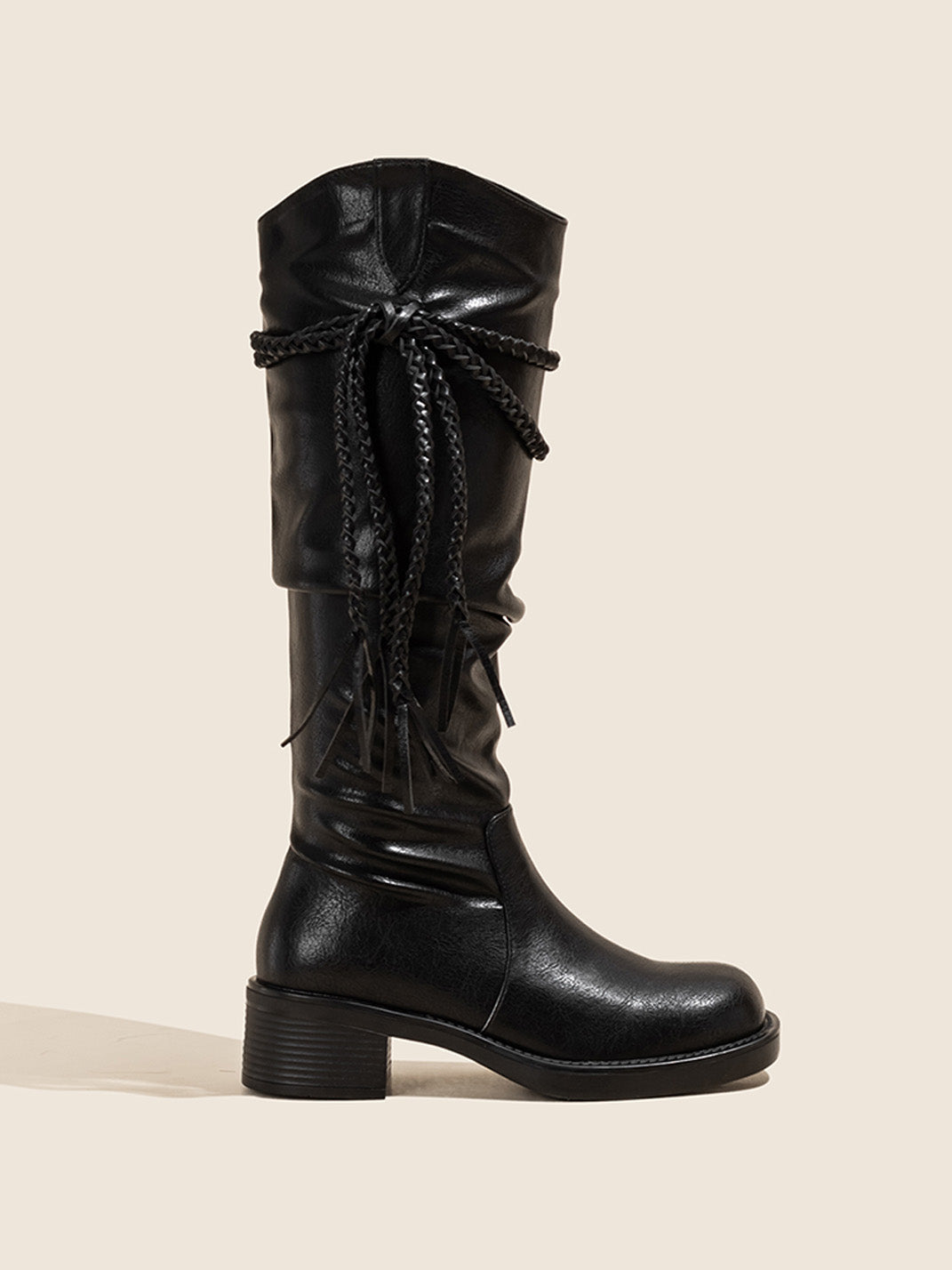OLDMEOW | Black Over-the-Knee Boots with Tassel Detail