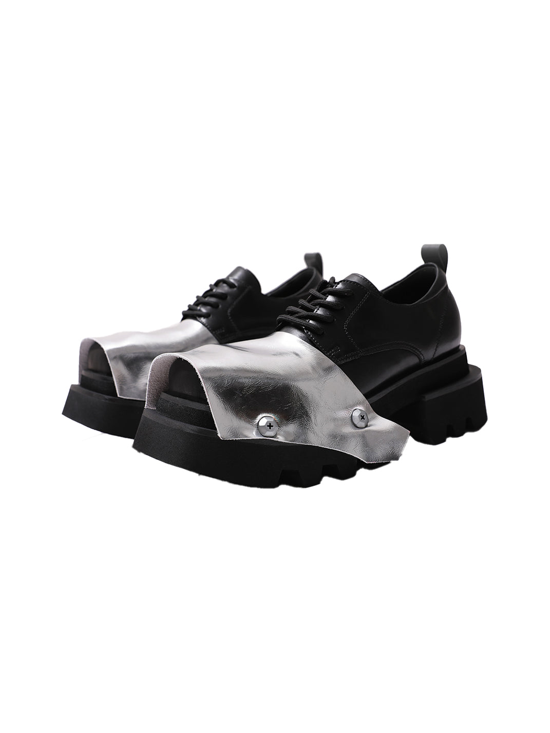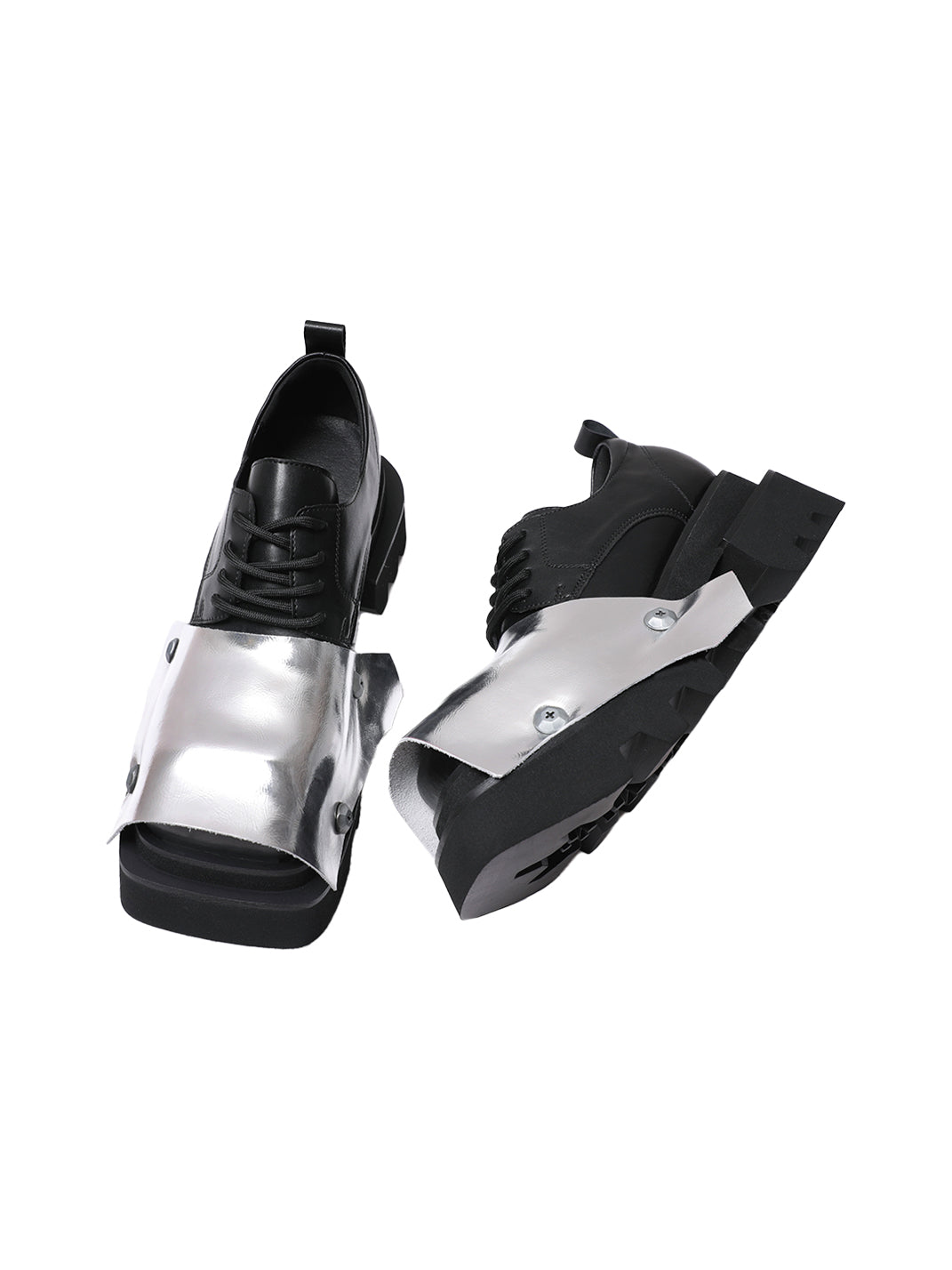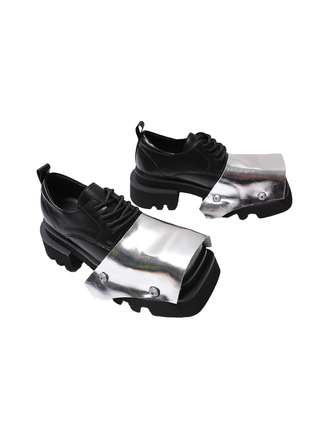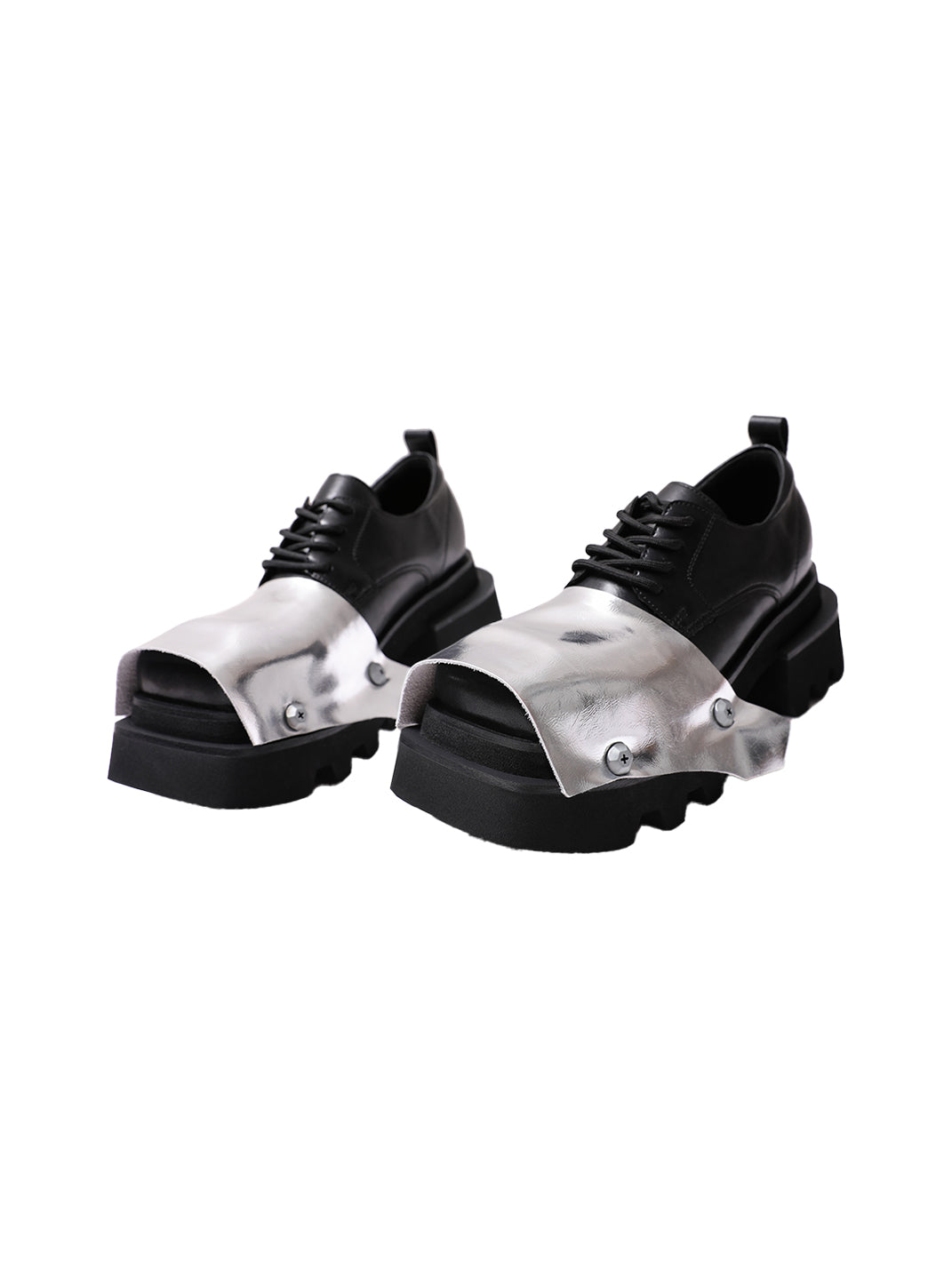 PINJIAHUI | Silver Square-toe Derby Shoes
