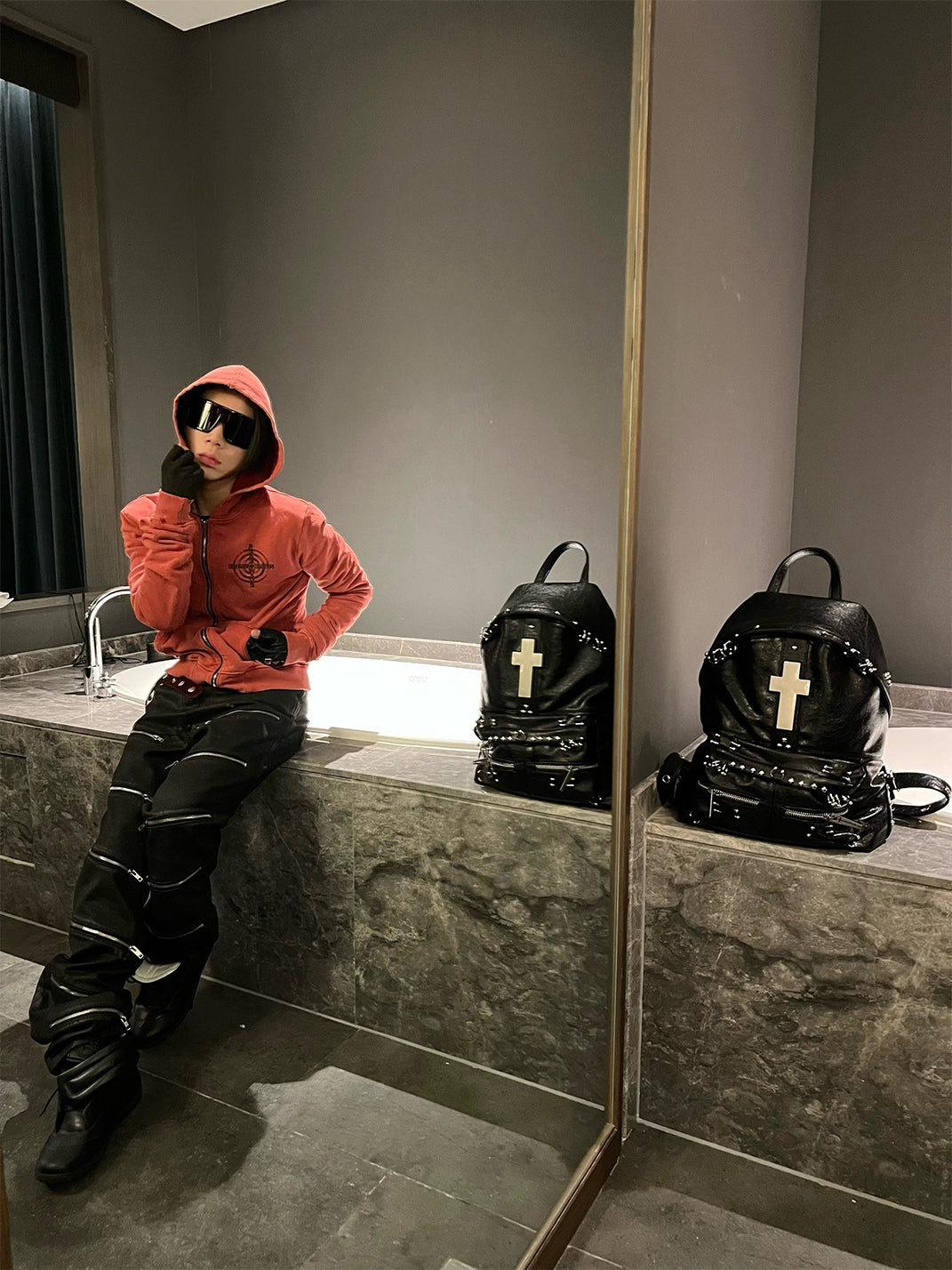 REBEL WAVE | Cross-Shaped Cracked Leather Backpack