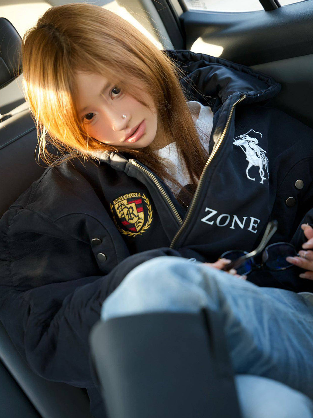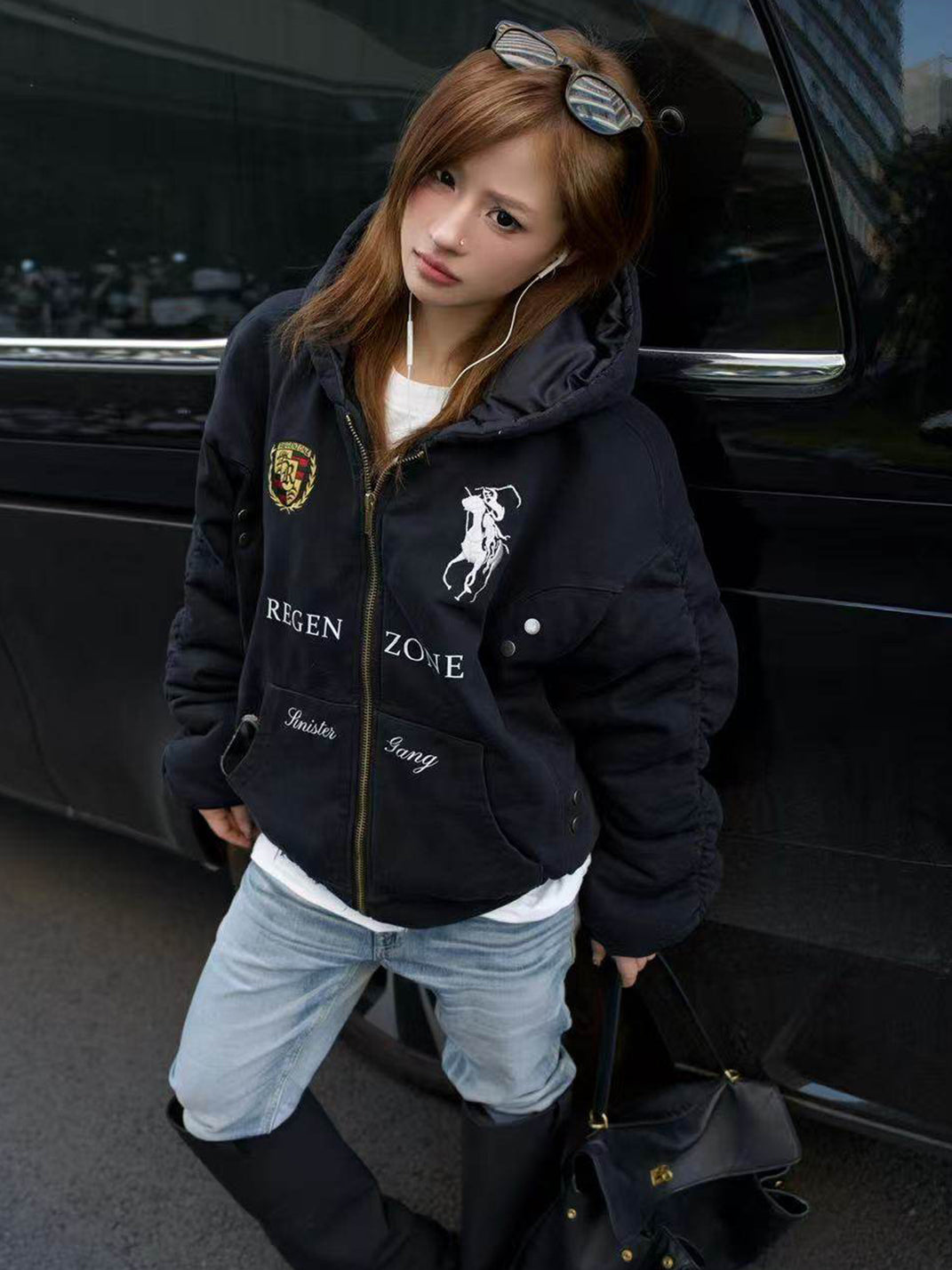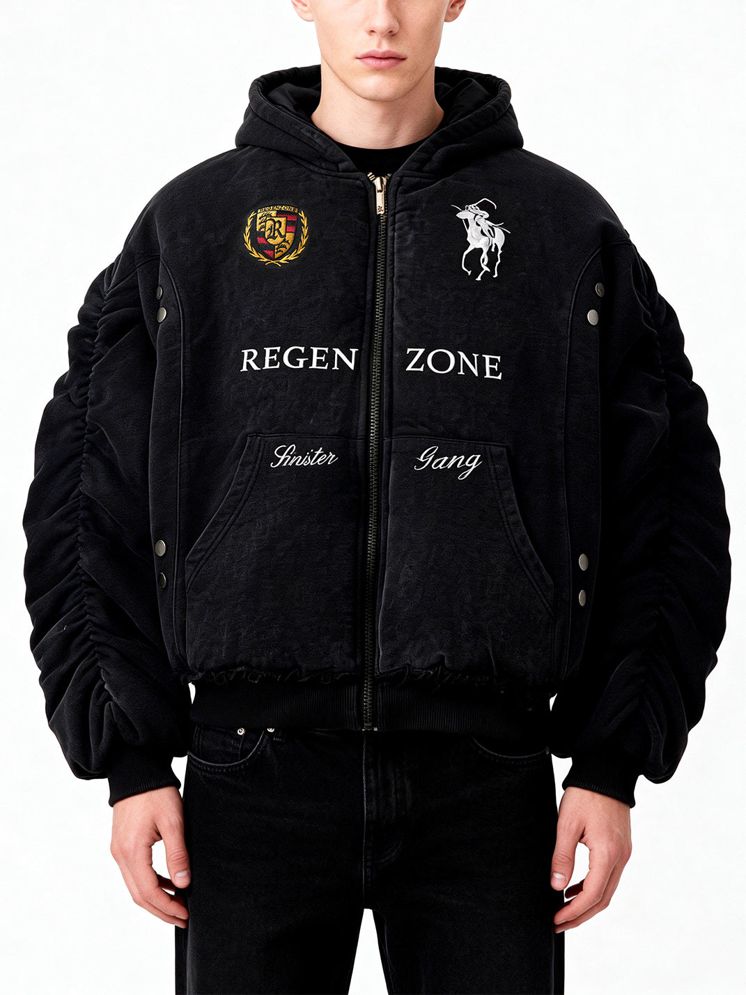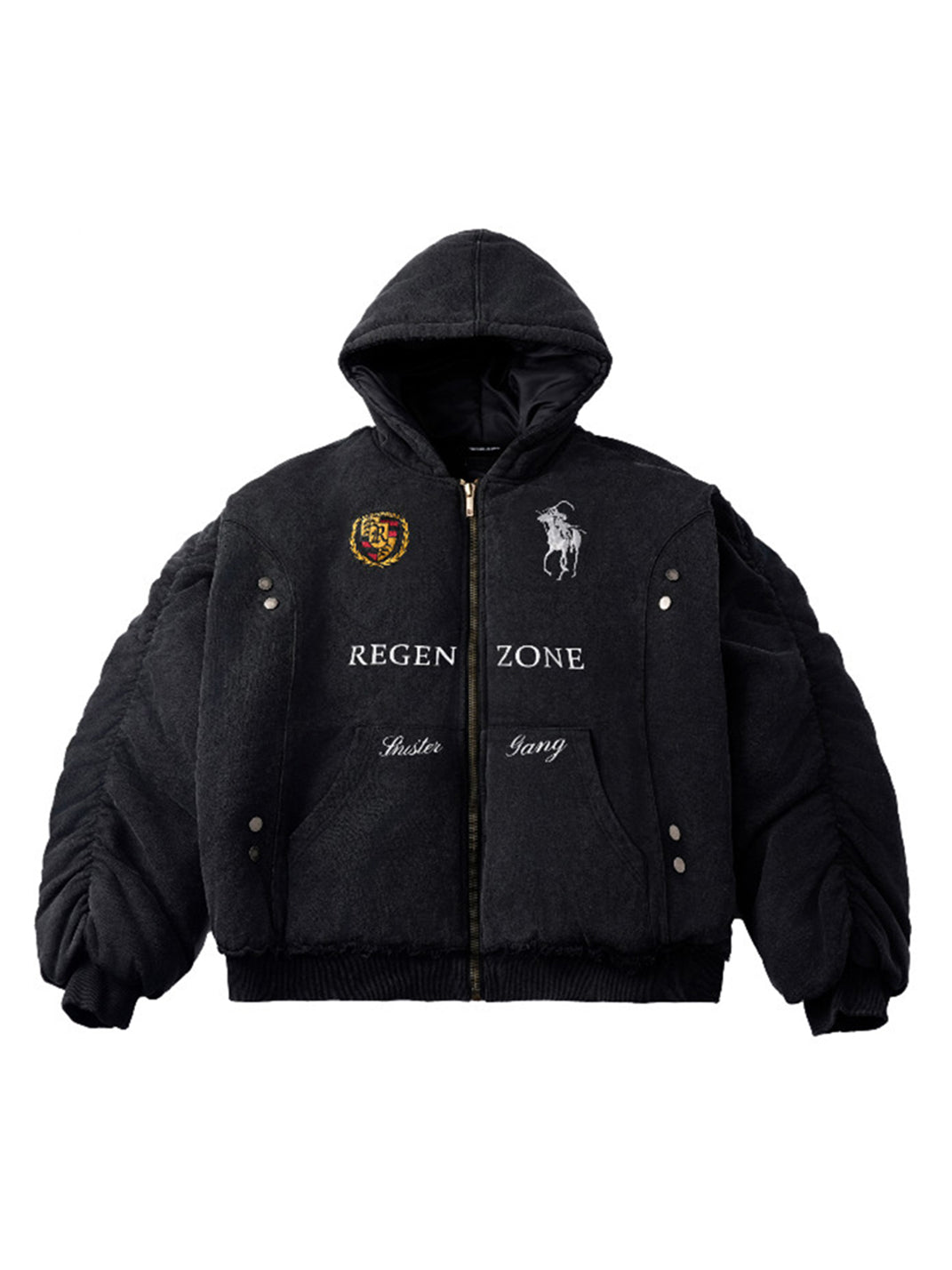 REGEN ZONE | Gold-Plated Vintage Racing Embroidered Hooded Jacket