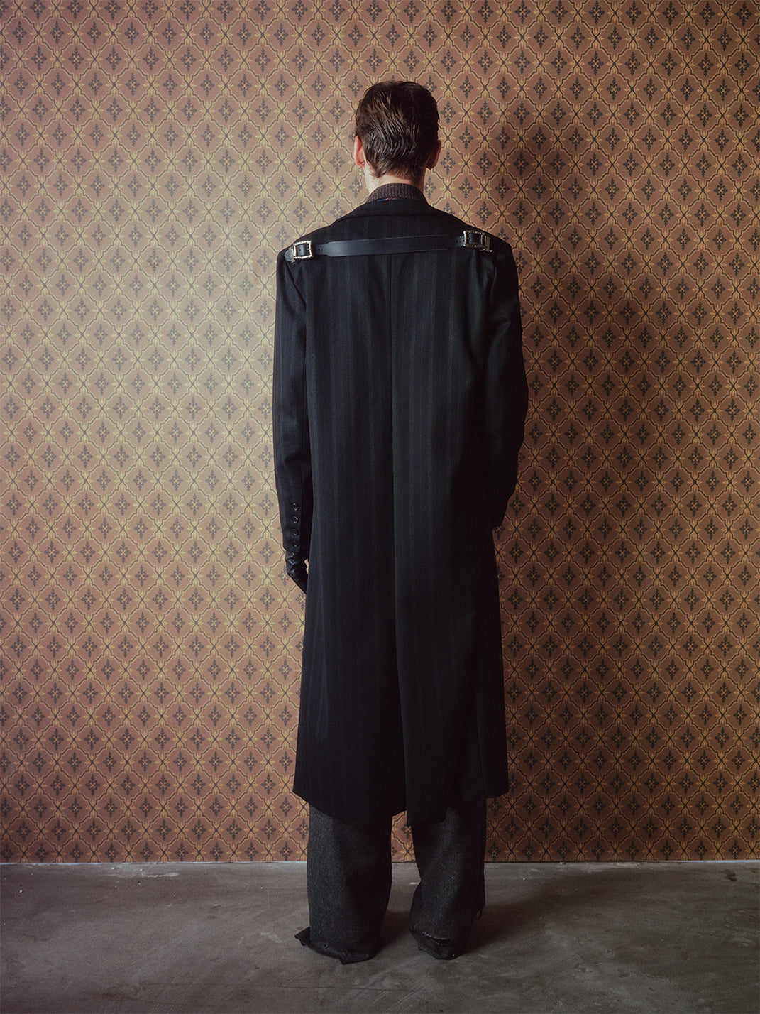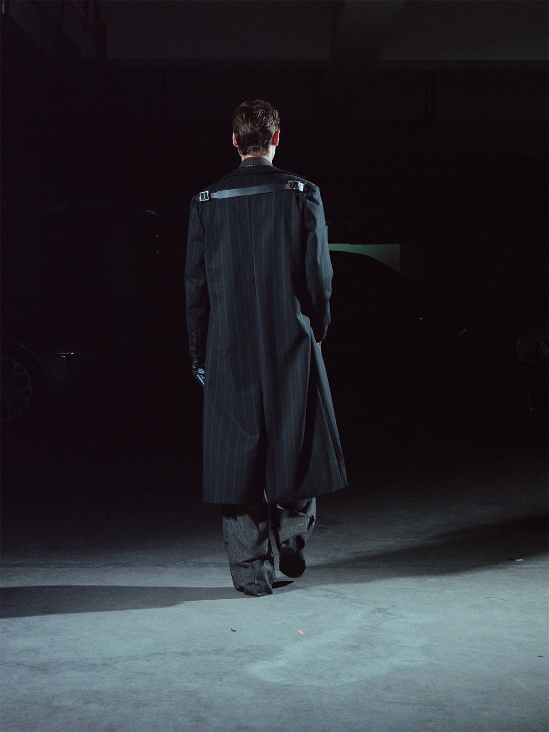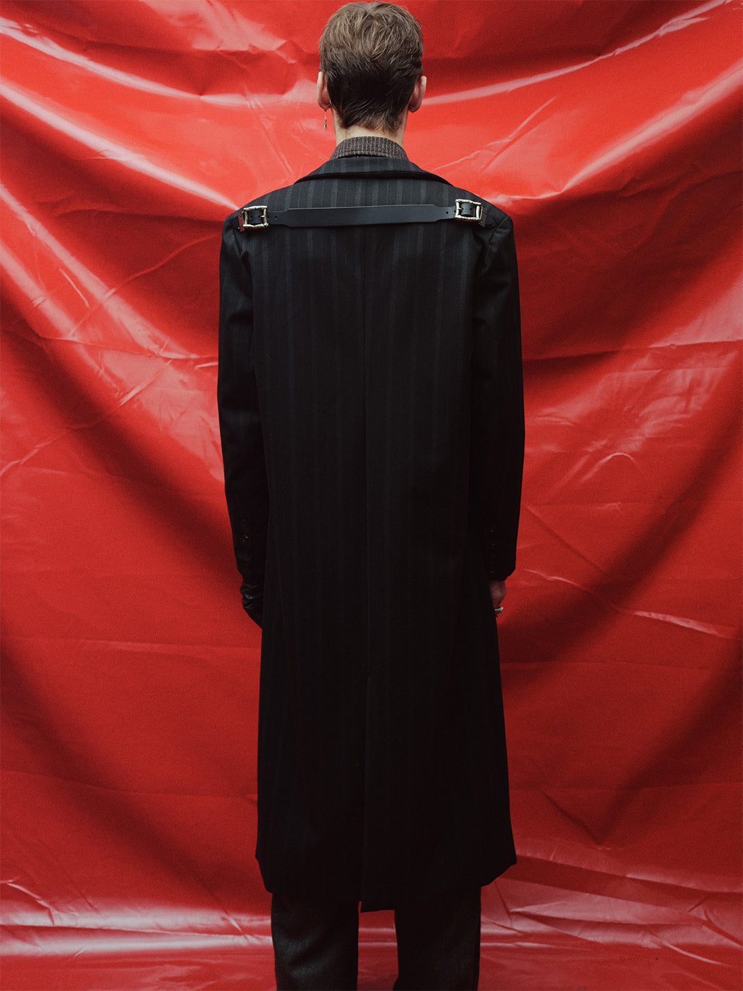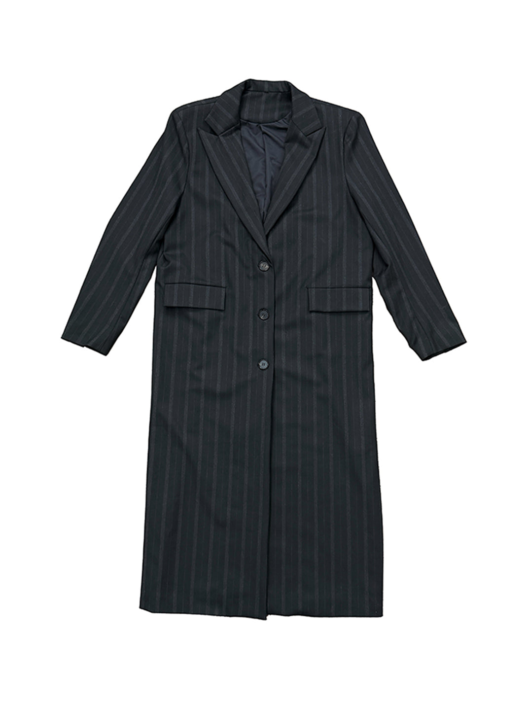 RICHILL | Leather Detail Pinstripe Blazer Coat