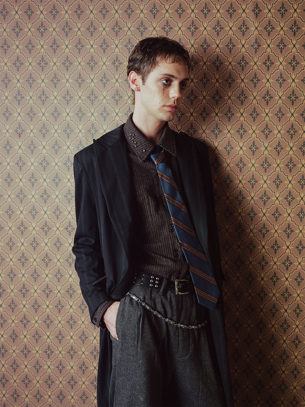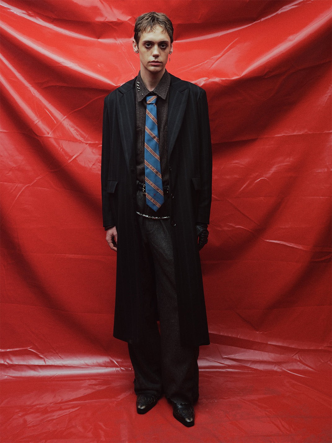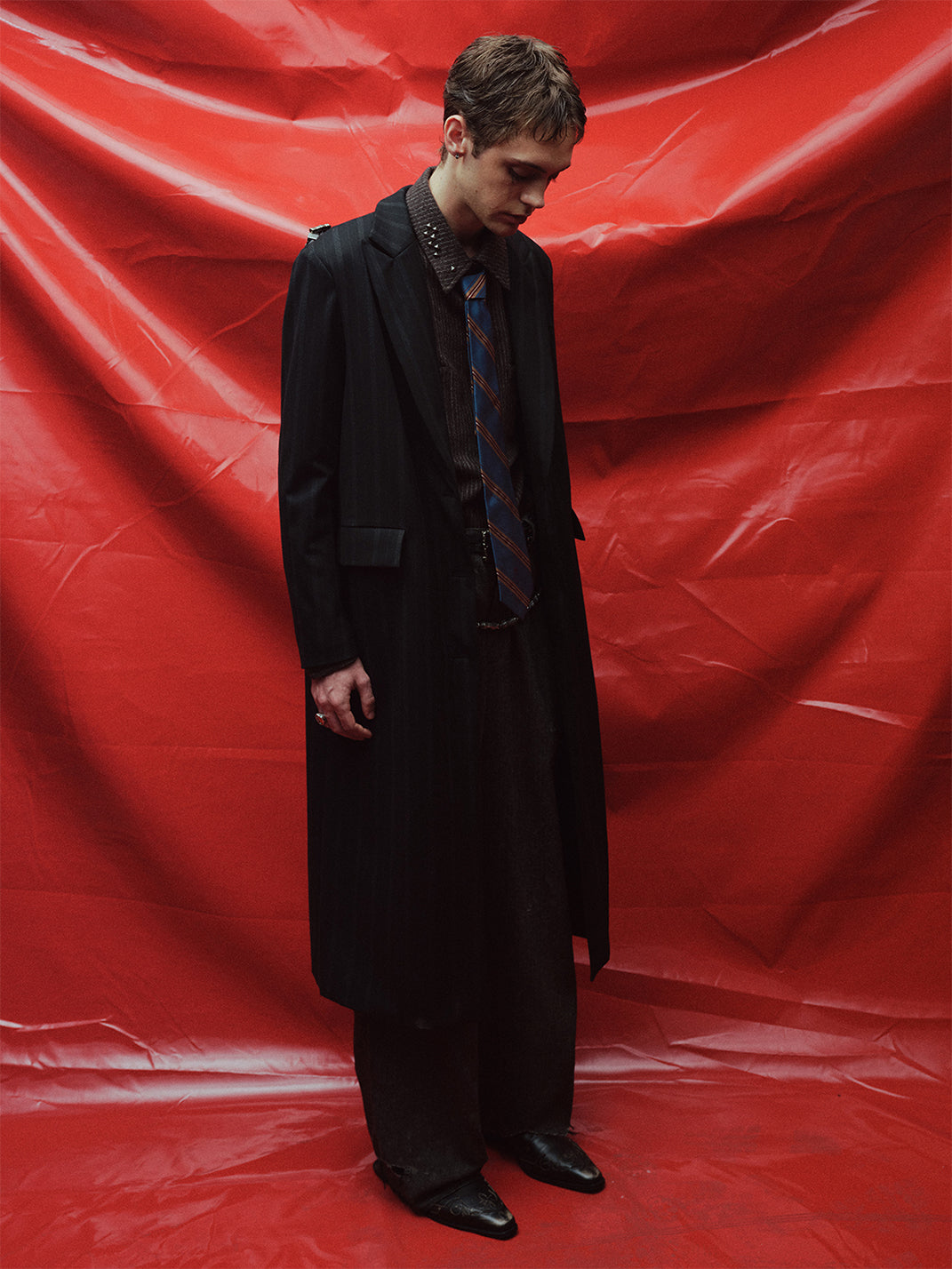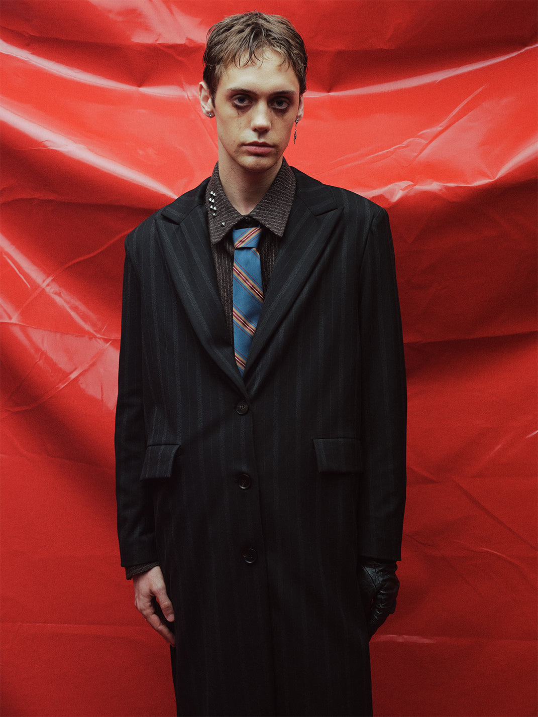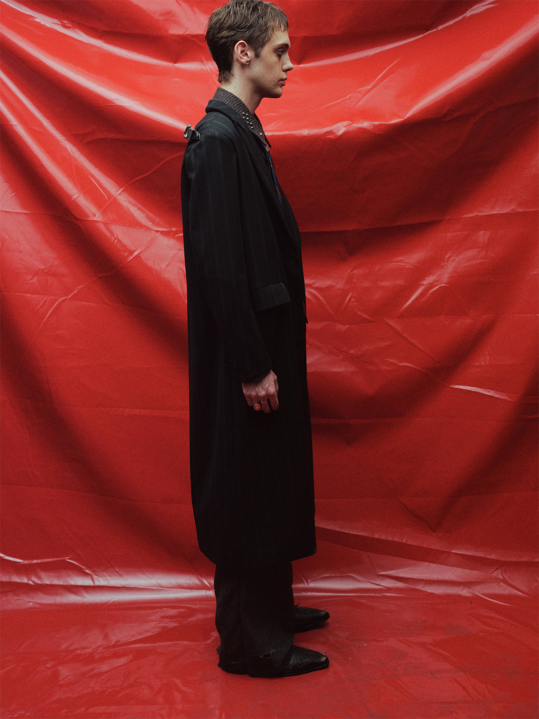 RICHILL | Leather Detail Pinstripe Blazer Coat