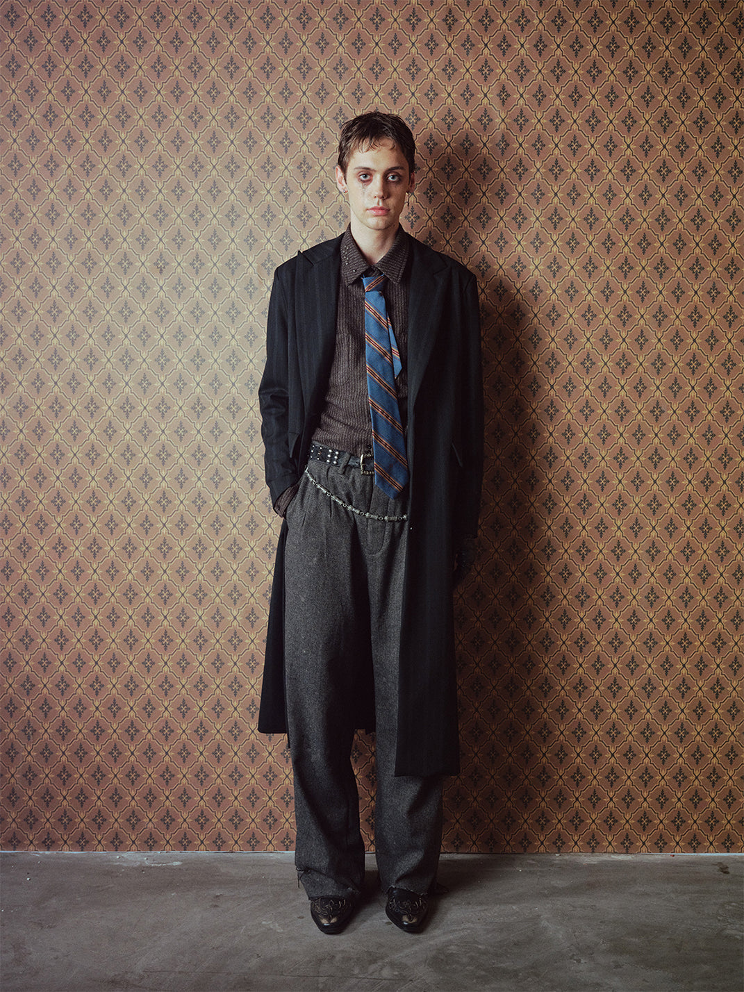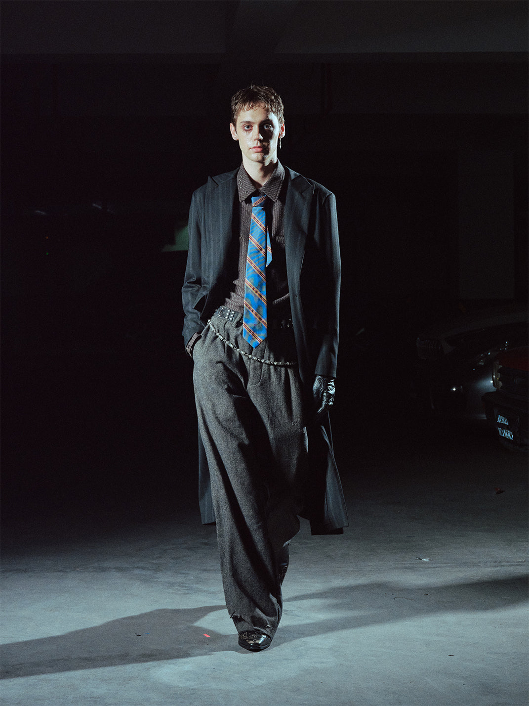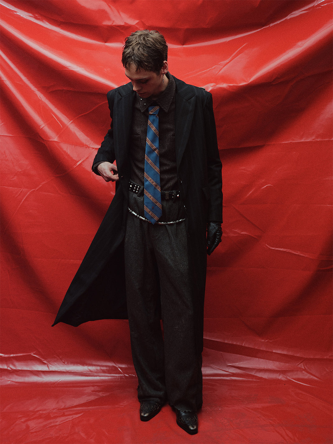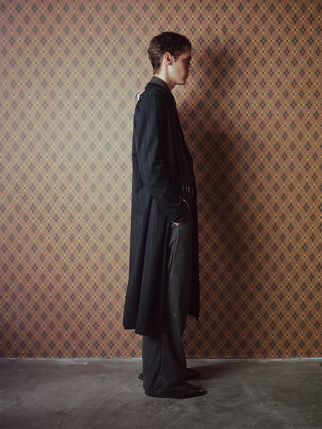 RICHILL | Leather Detail Pinstripe Blazer Coat