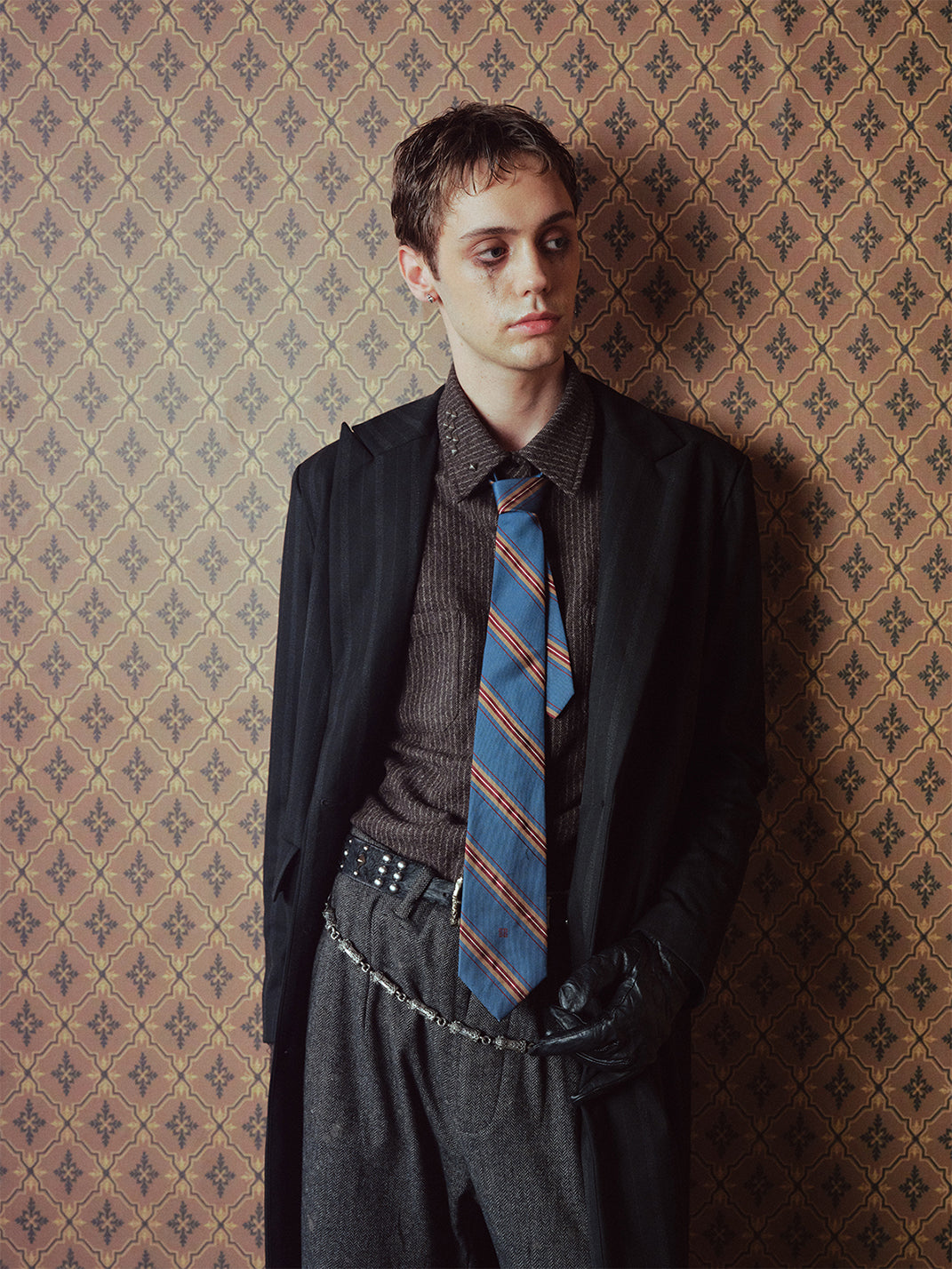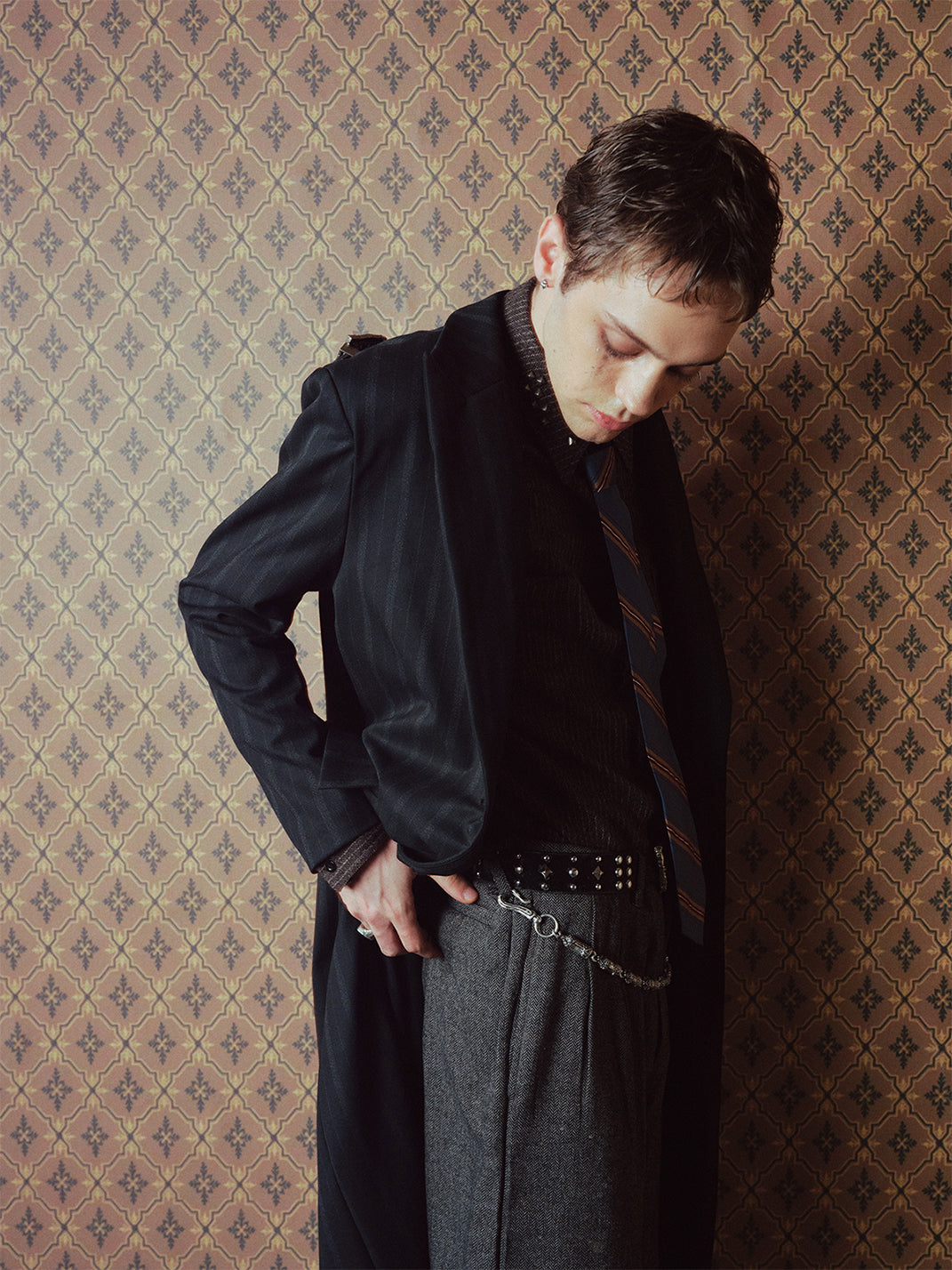 RICHILL | Leather Detail Pinstripe Blazer Coat Skip to content