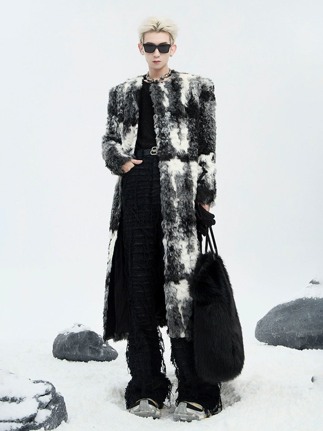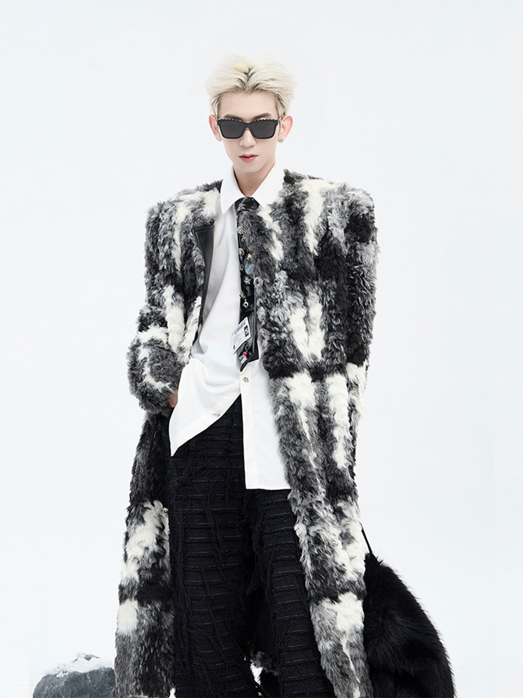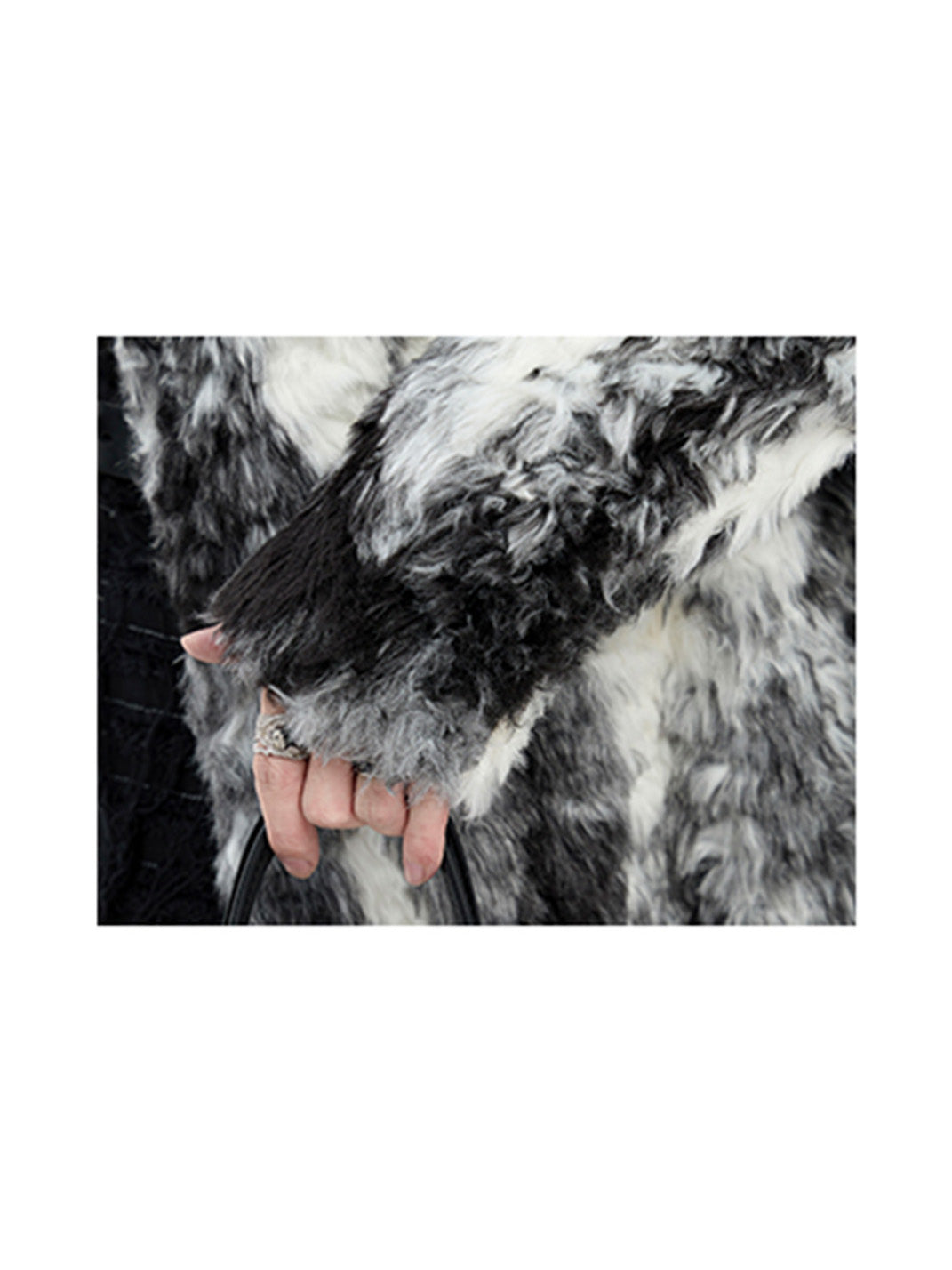 SEE | Color Block Faux Fur Longline Coat Skip to content