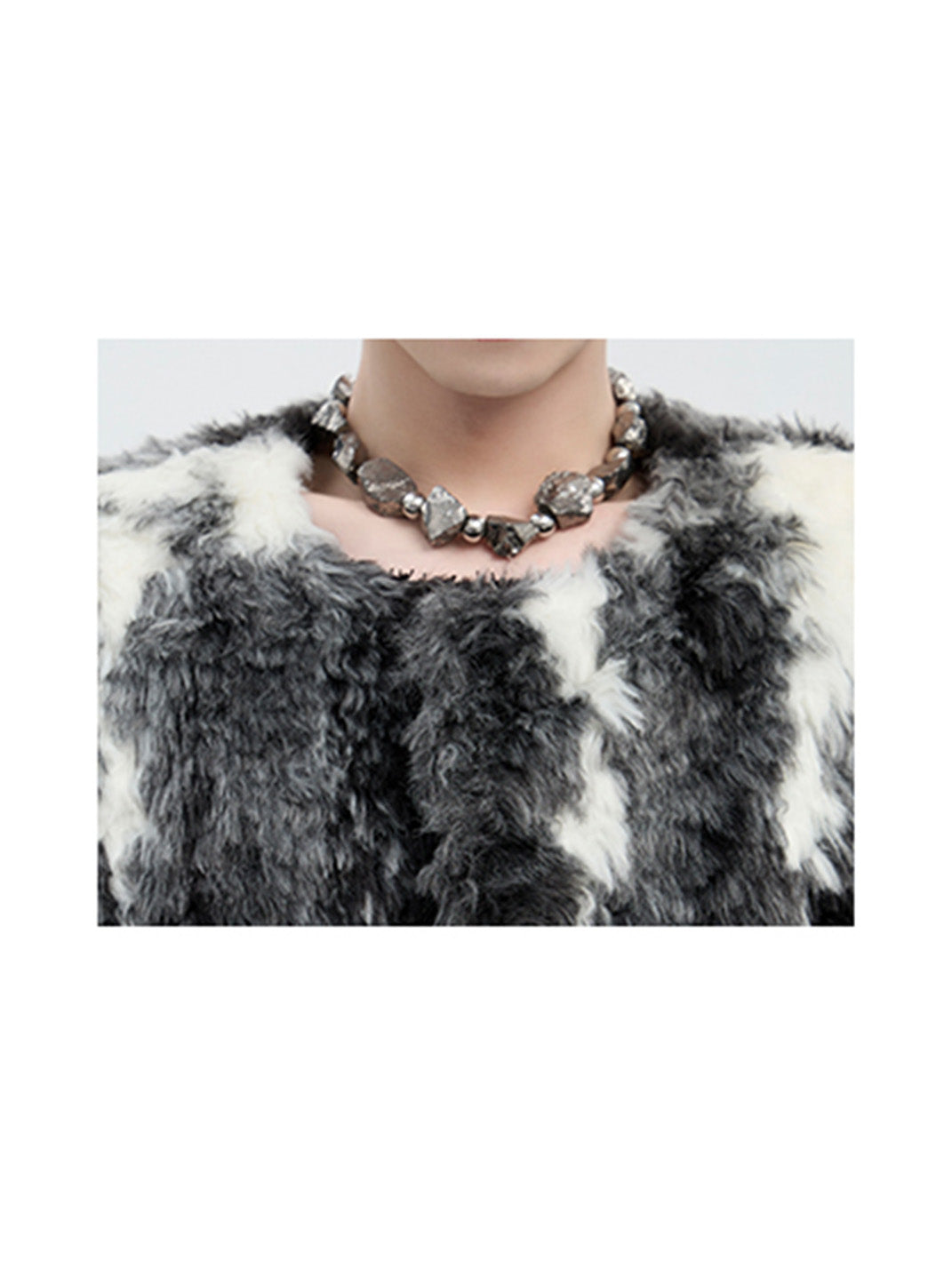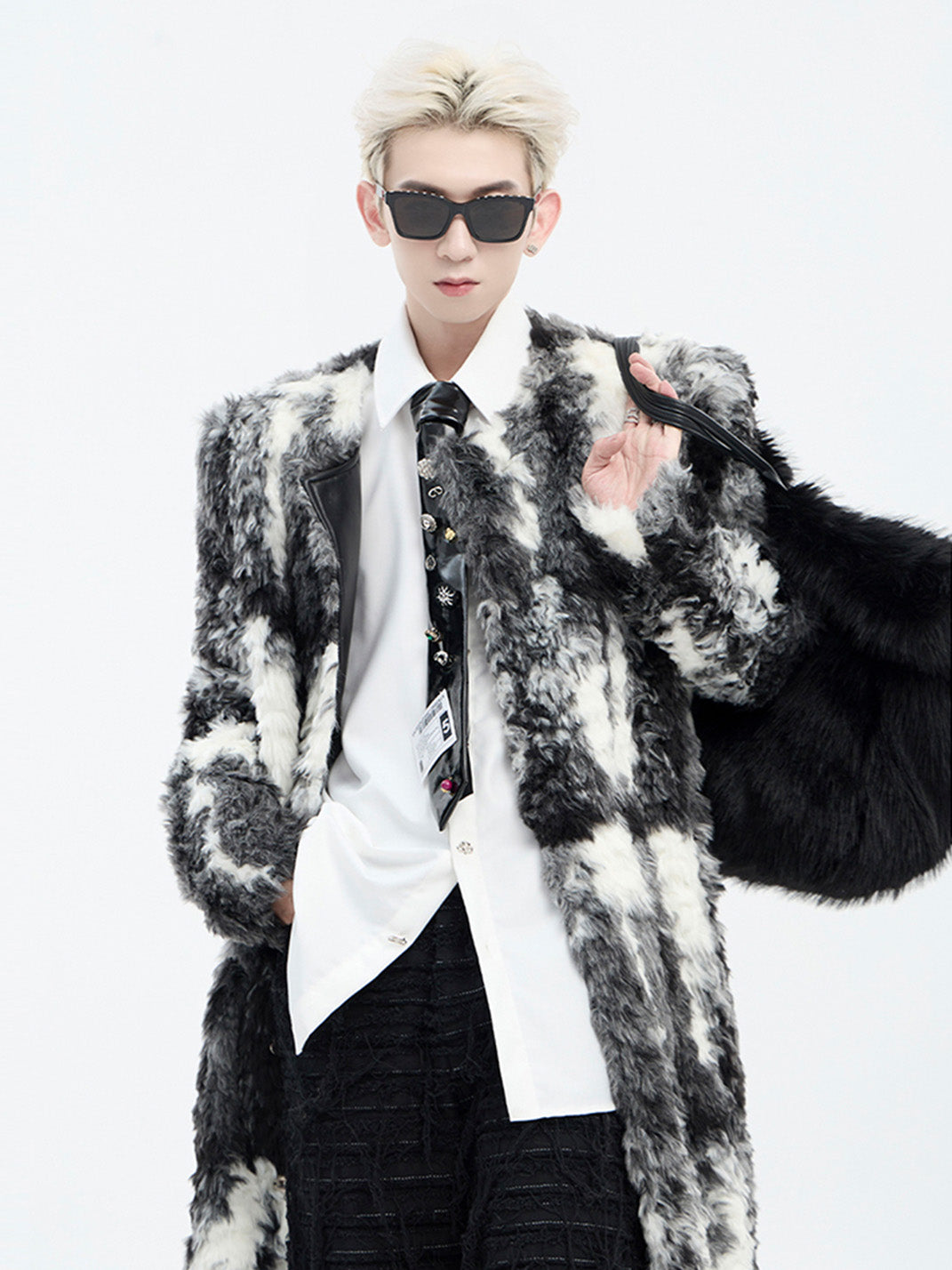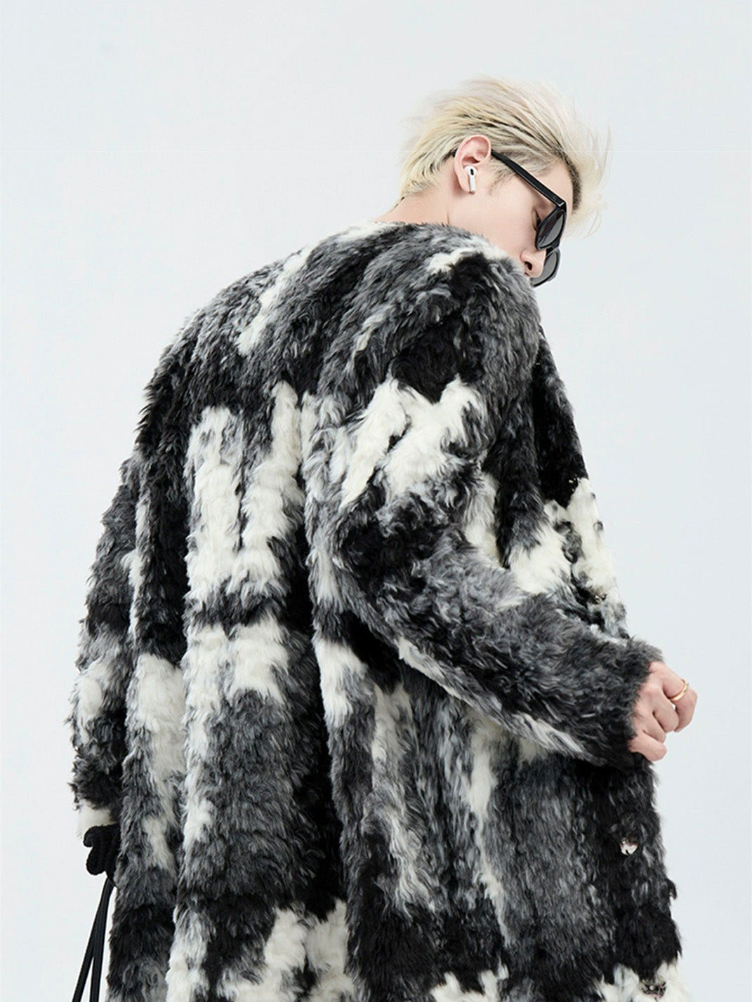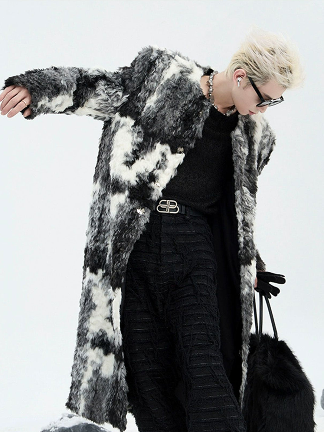 SEE | Color Block Faux Fur Longline Coat Skip to content