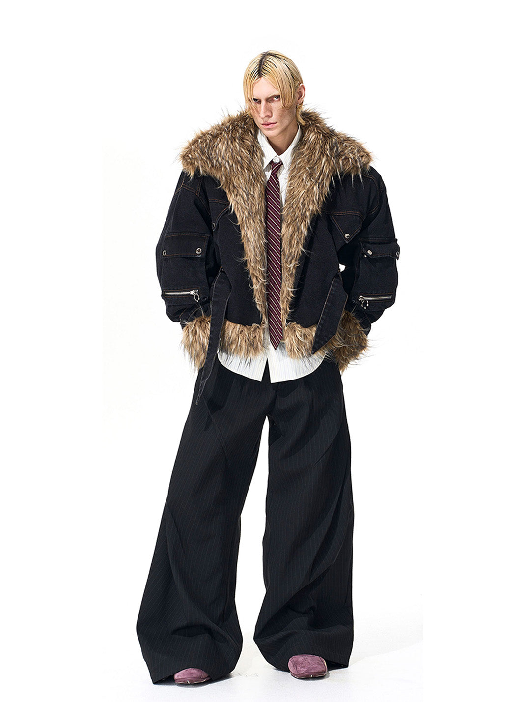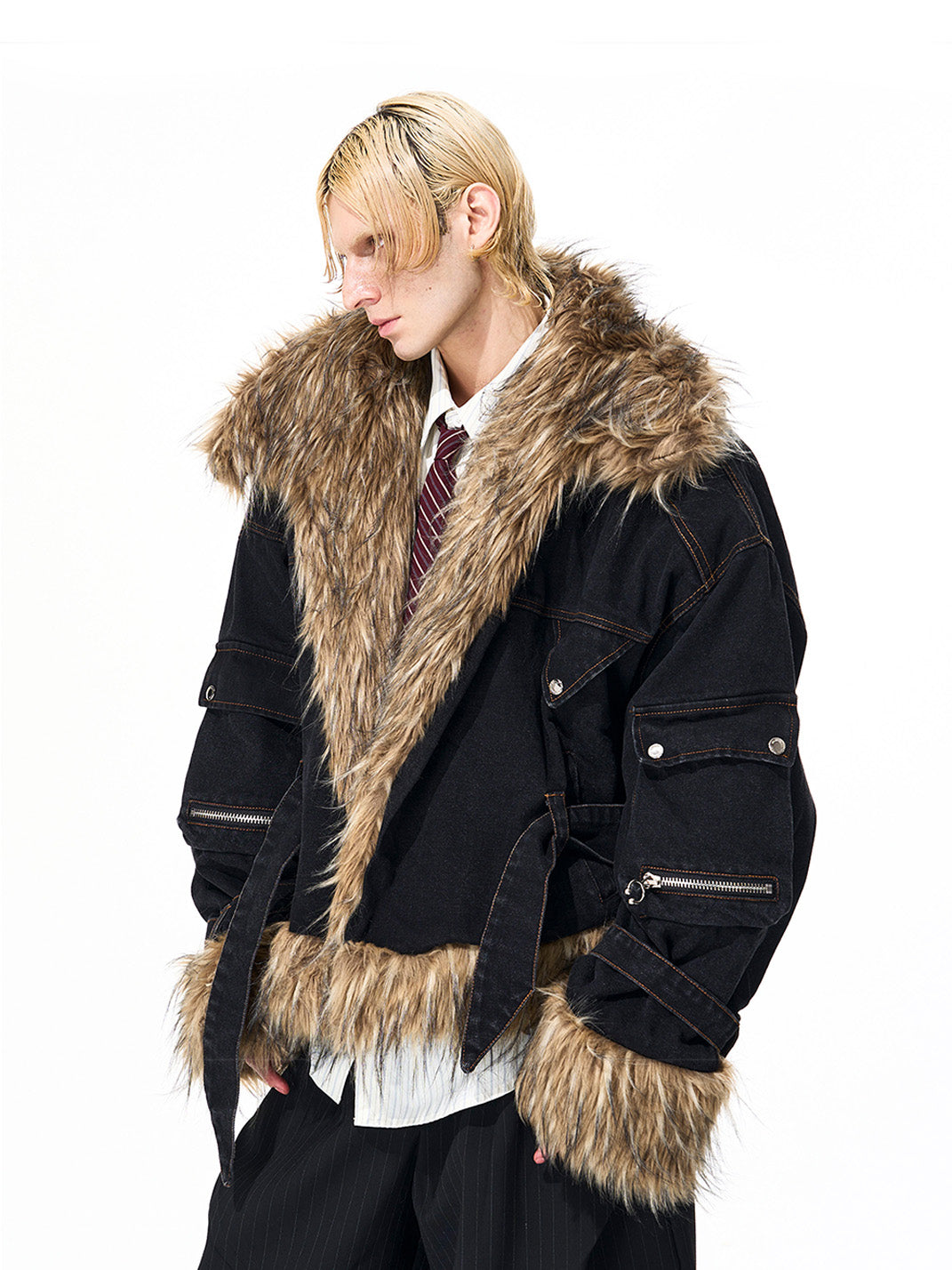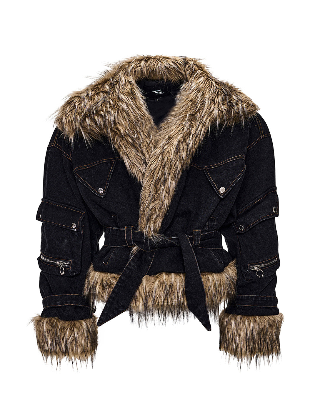 SEE | Faux Fur Panel Denim Jacket Skip to content