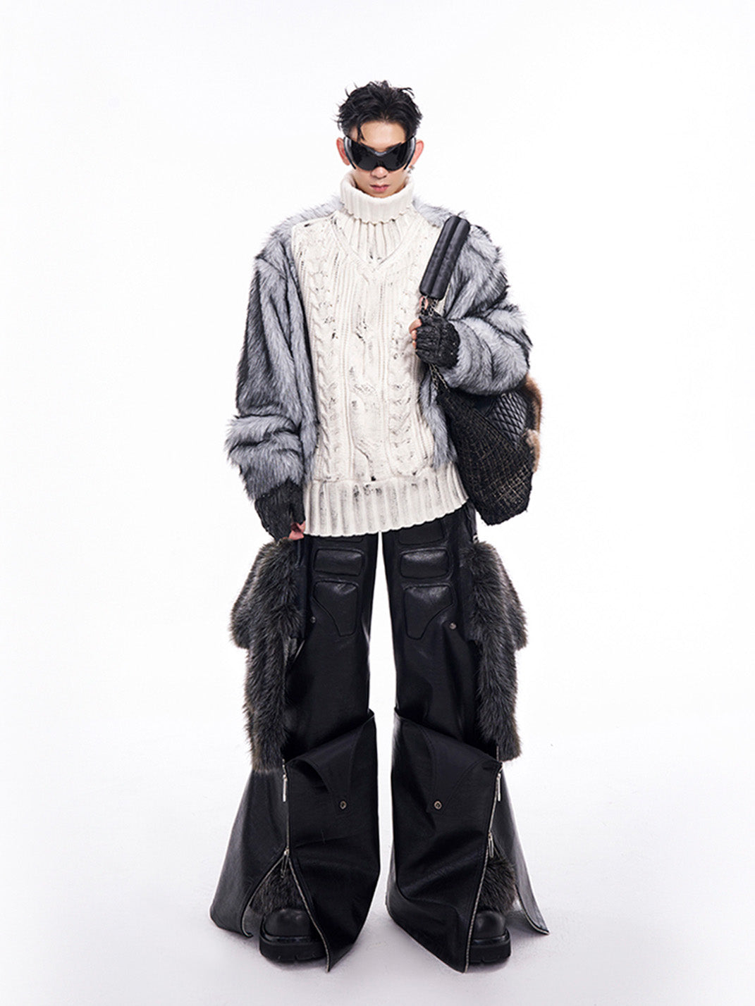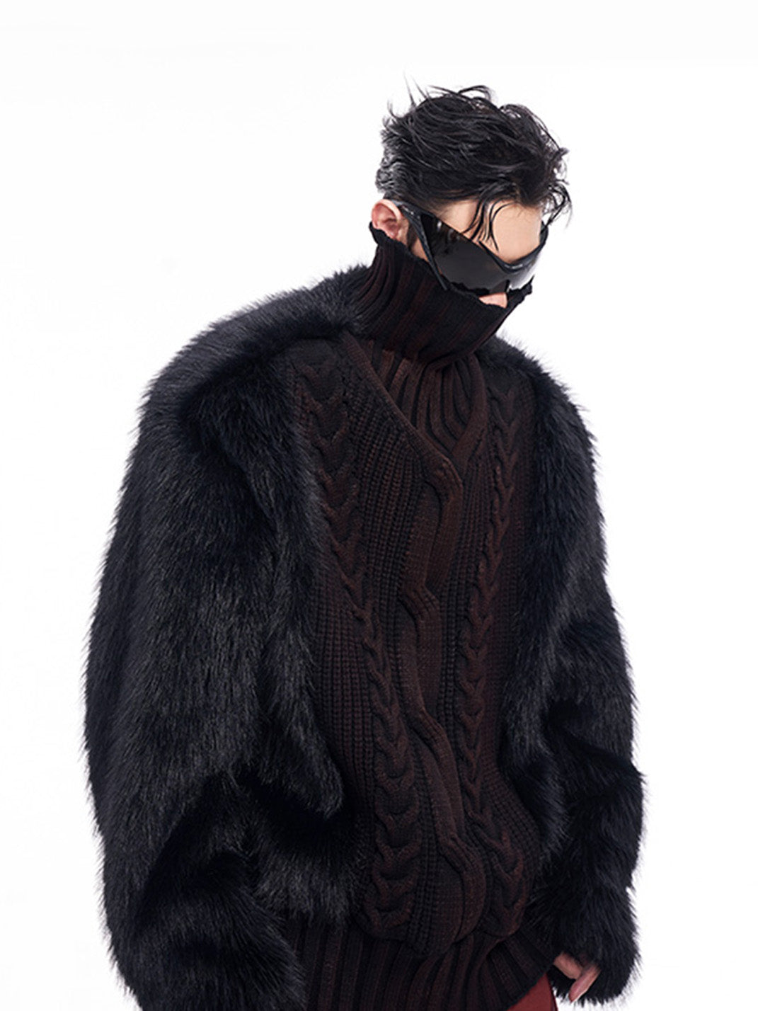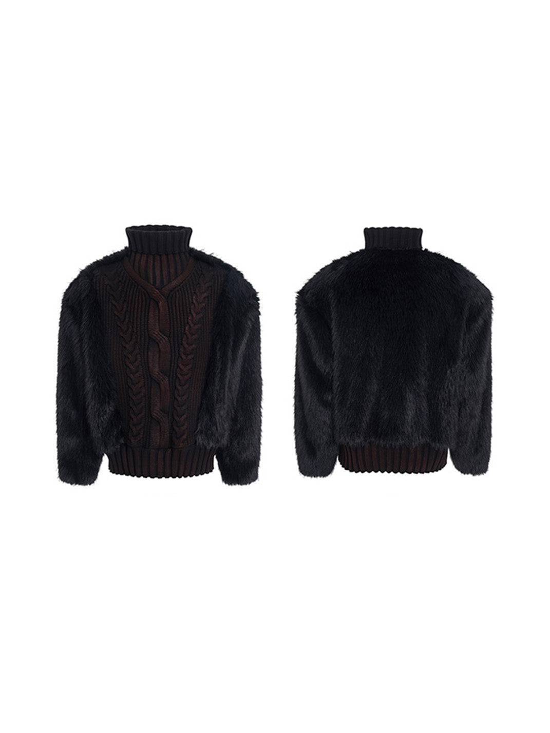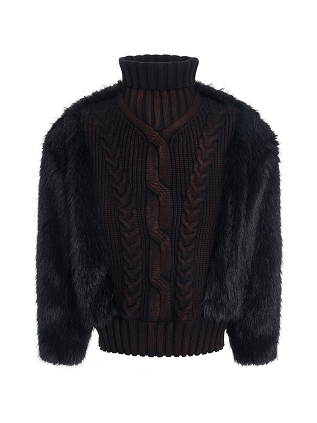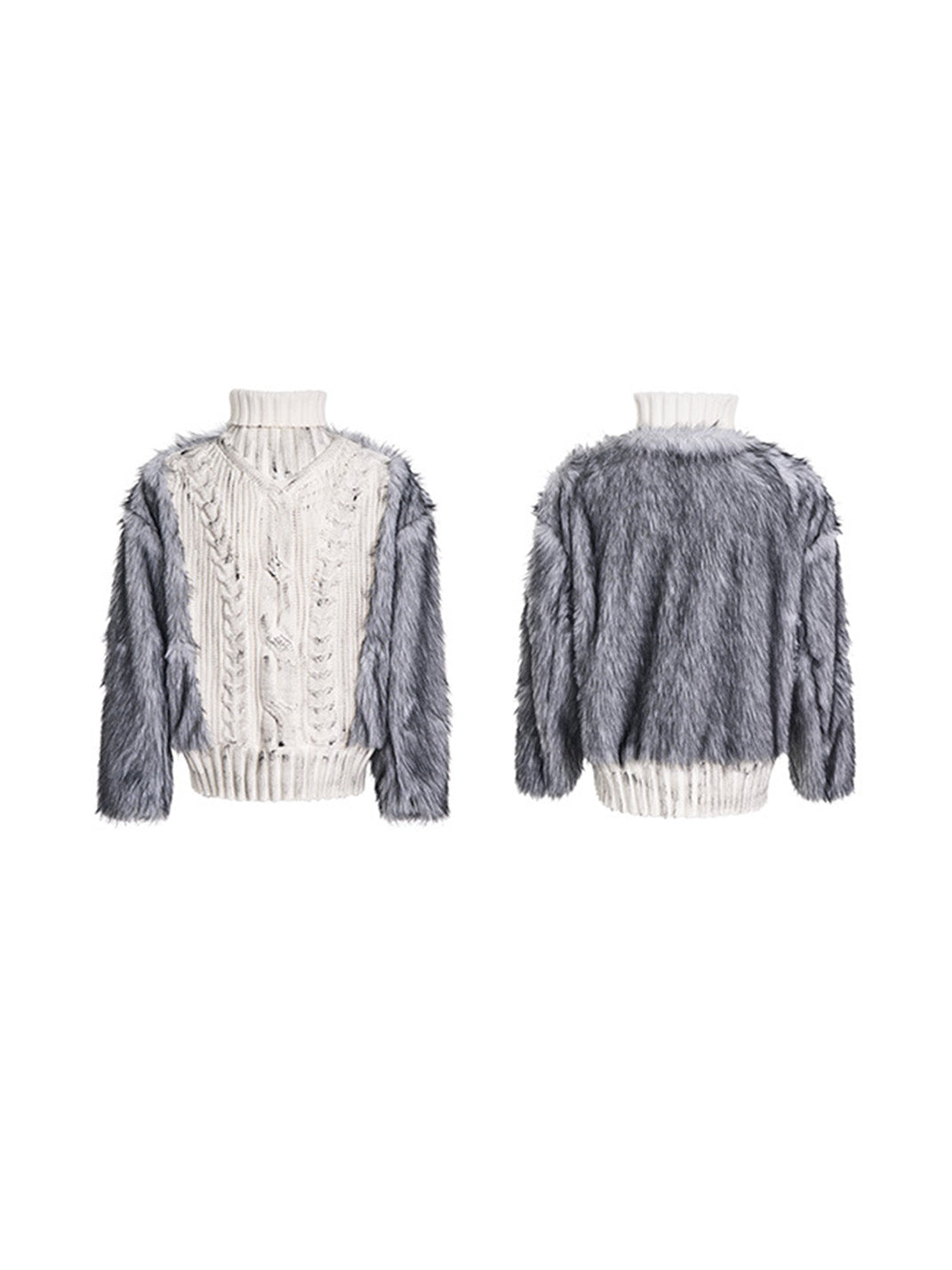 SEE | Faux Fur-Panel High-Neck Sweater Skip to content