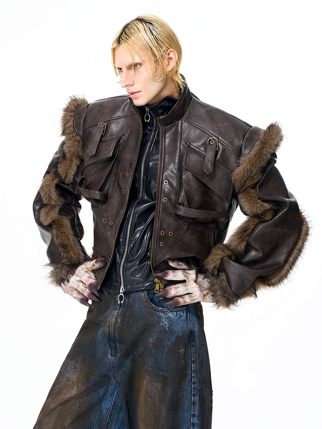 SEE | Faux Fur-Trimmed Leather Jacket Skip to content