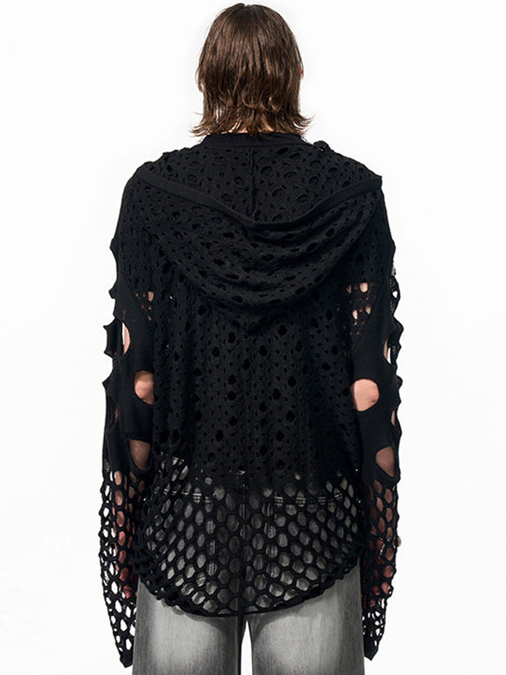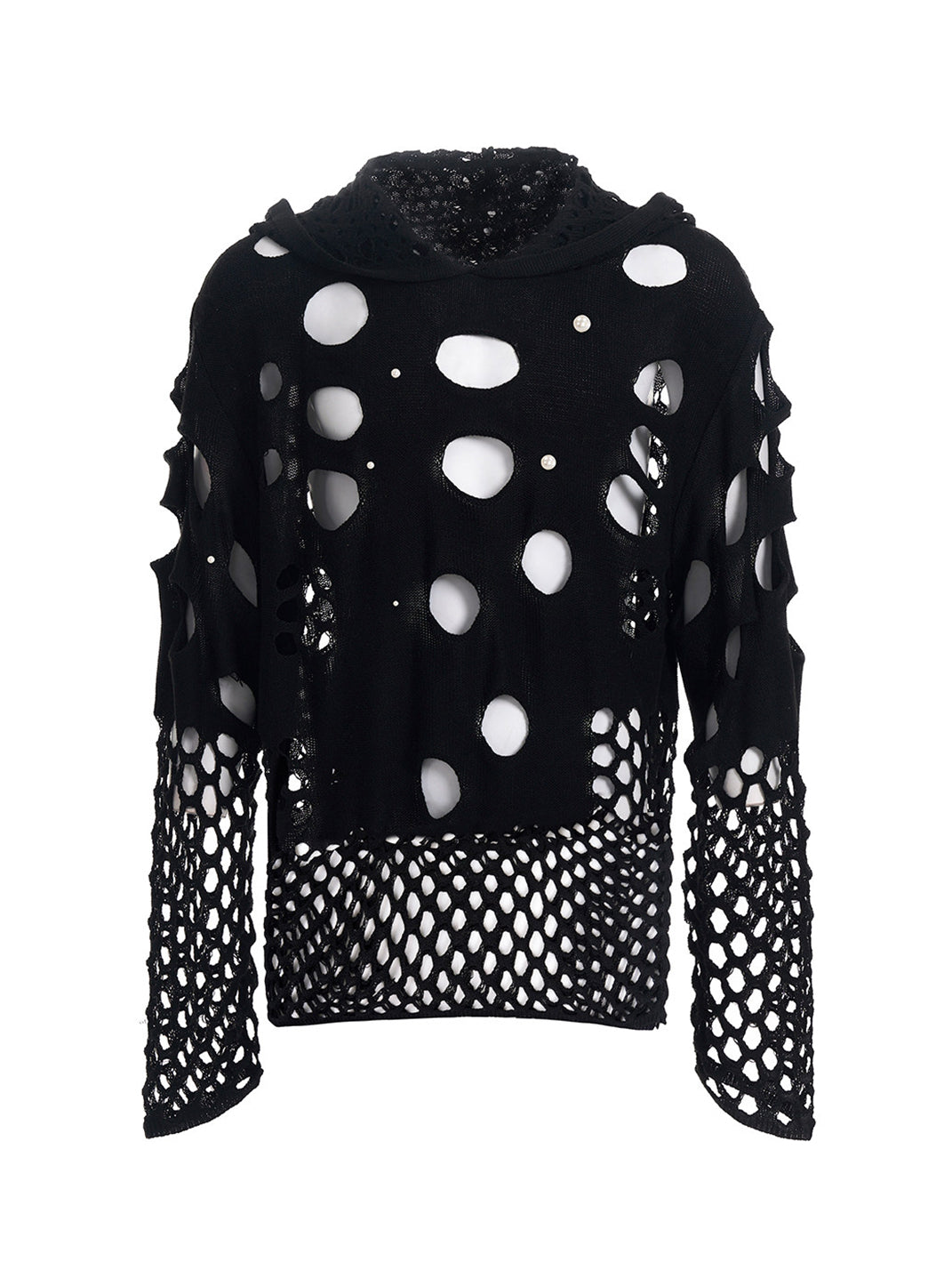 SEE | Openwork Hooded Knit Sweater Skip to content