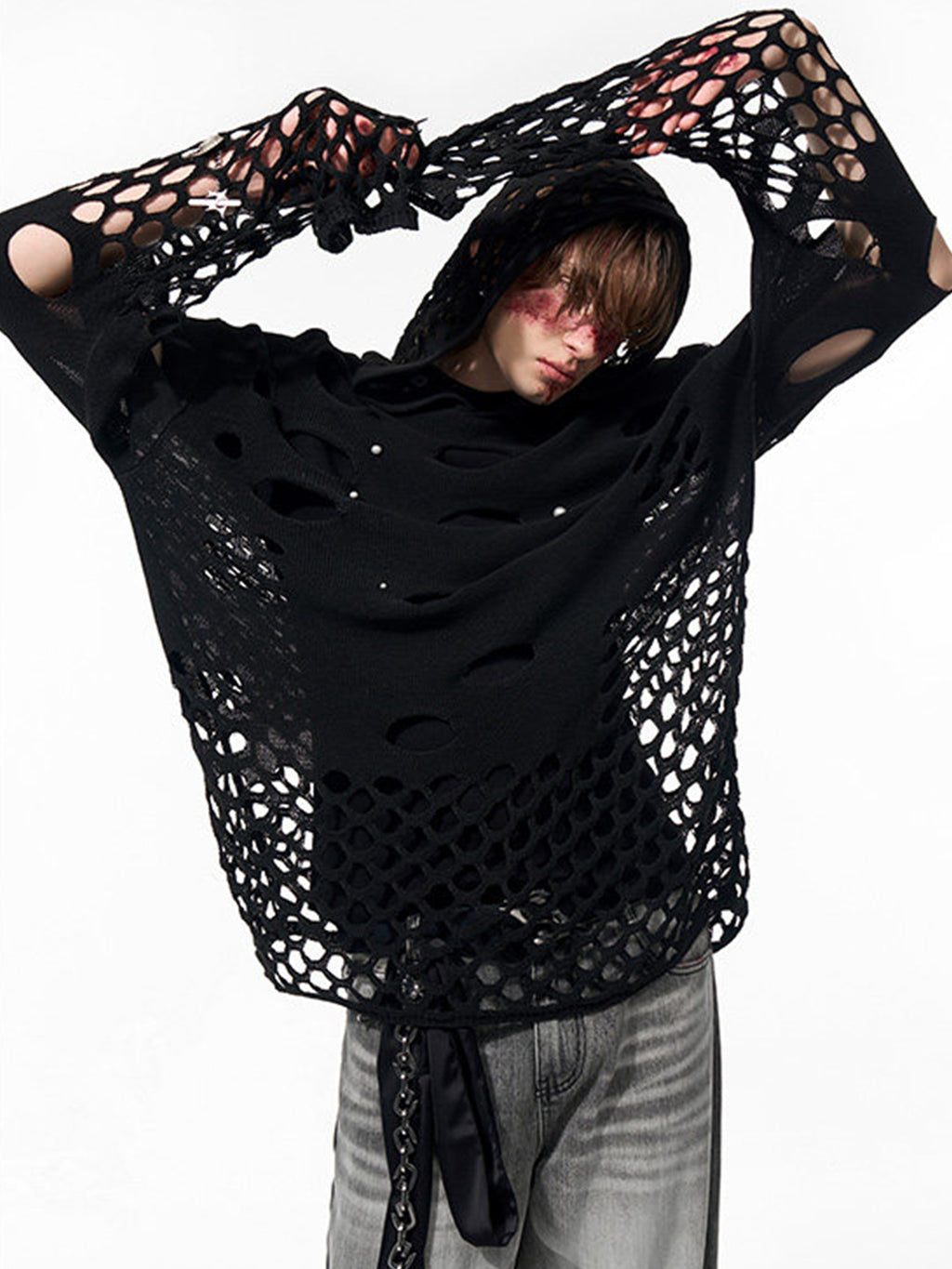 SEE | Openwork Hooded Knit Sweater