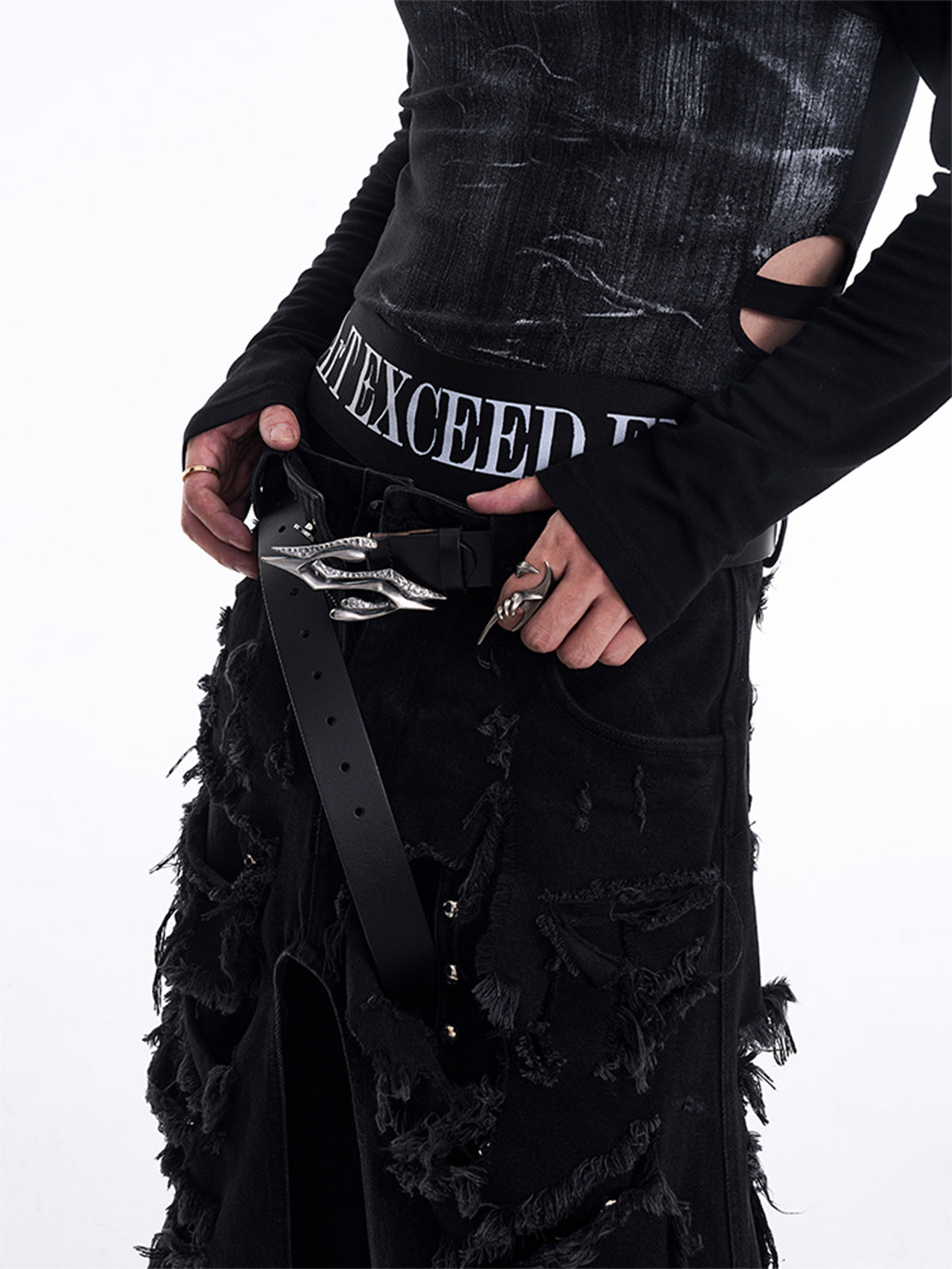 STARTEXCEEDEND is an exploration of the intenweaving of darkness and light in human noture, creating an irresistible visudl and emotional tenson that brnas o dangerous and captivatina feelnoThe feelng,Explore the relotionshilp between fashion, society, and culture, chalenge people'sunderstanding of the boundaries between beouty and disharmony, order and chaos.Breaking people's expectations of traditional fashion and brinboth attrected and tense, often with a brokeaing freshness and creativity, This aesthetic emphasizes o dramatic atmosphere, making peoplenromentie feeline and exeloring oecut!ene mstervbevone socldlnorms