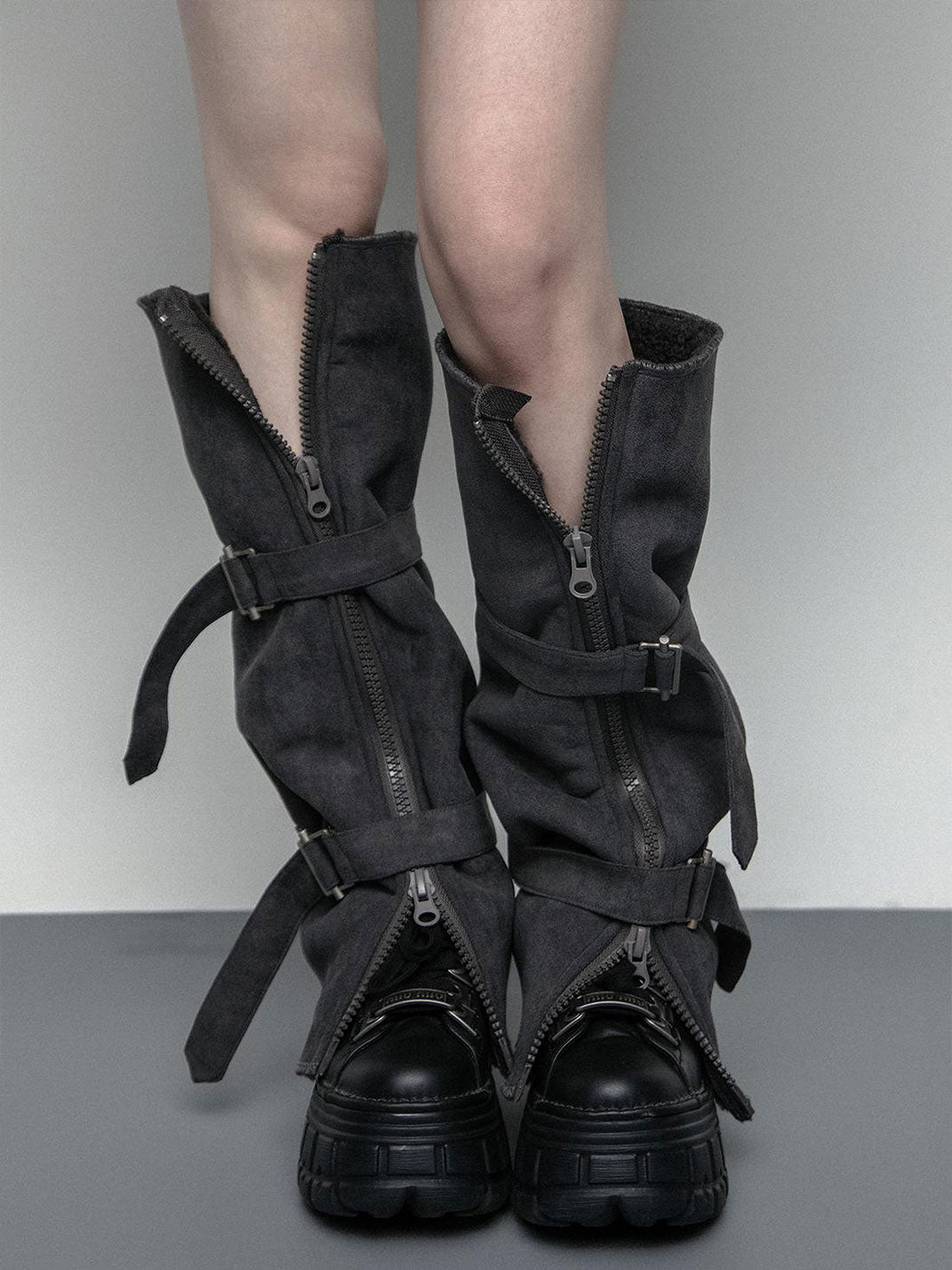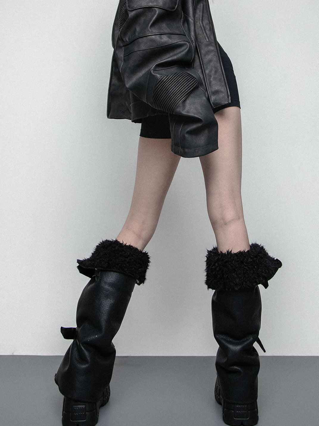 SS2L | Faux Fur Strap Leather Leg Warmers Skip to content