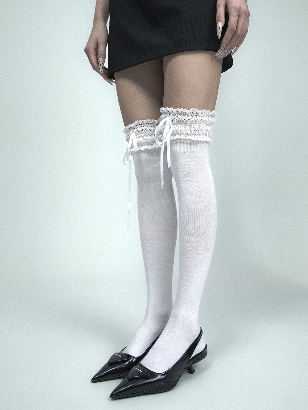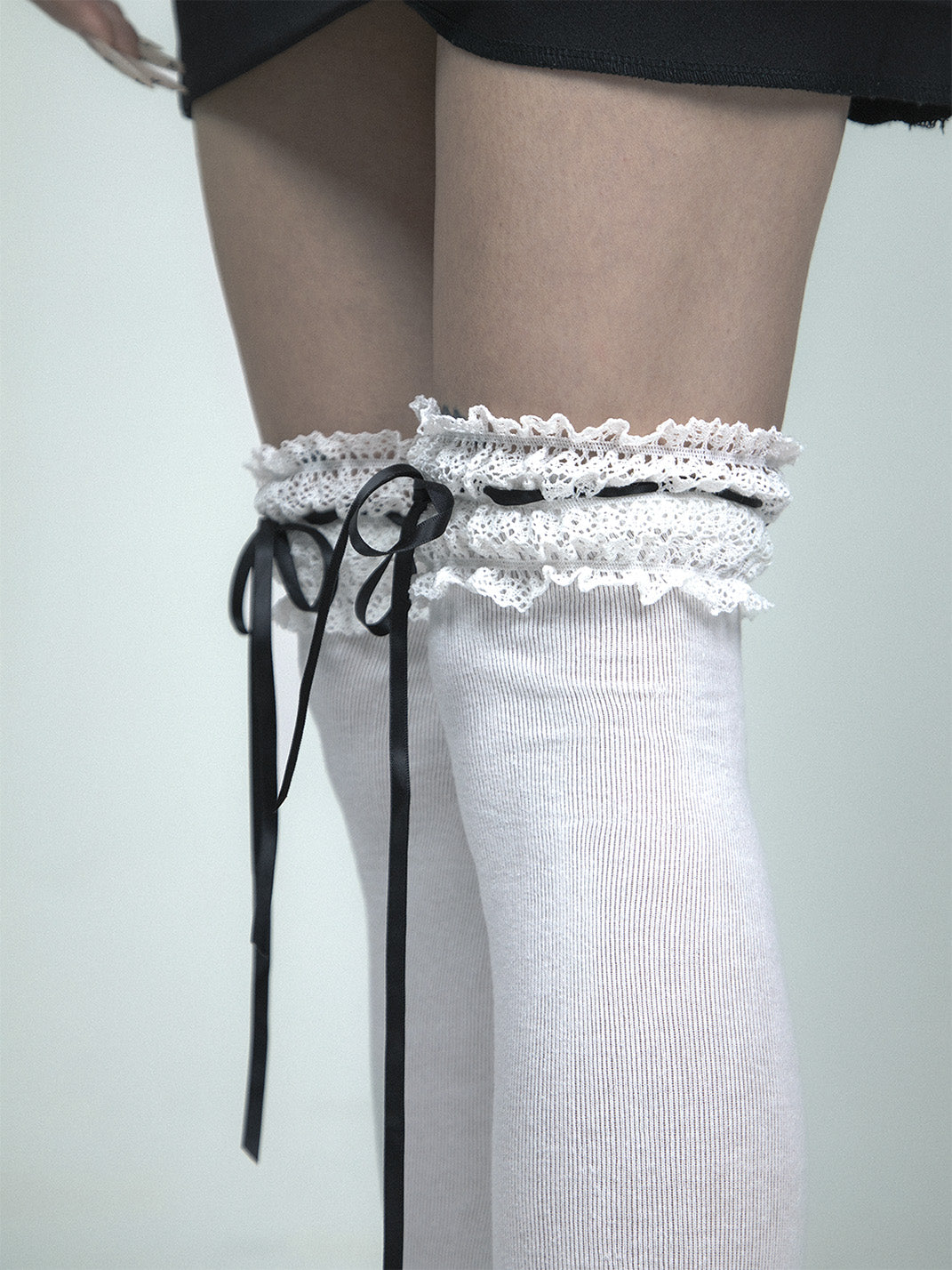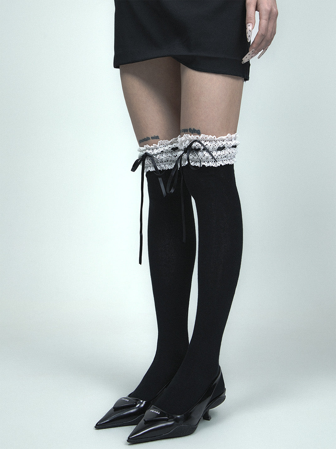 SS2L | Lace Drawstring Bow Over Knee Stockings
