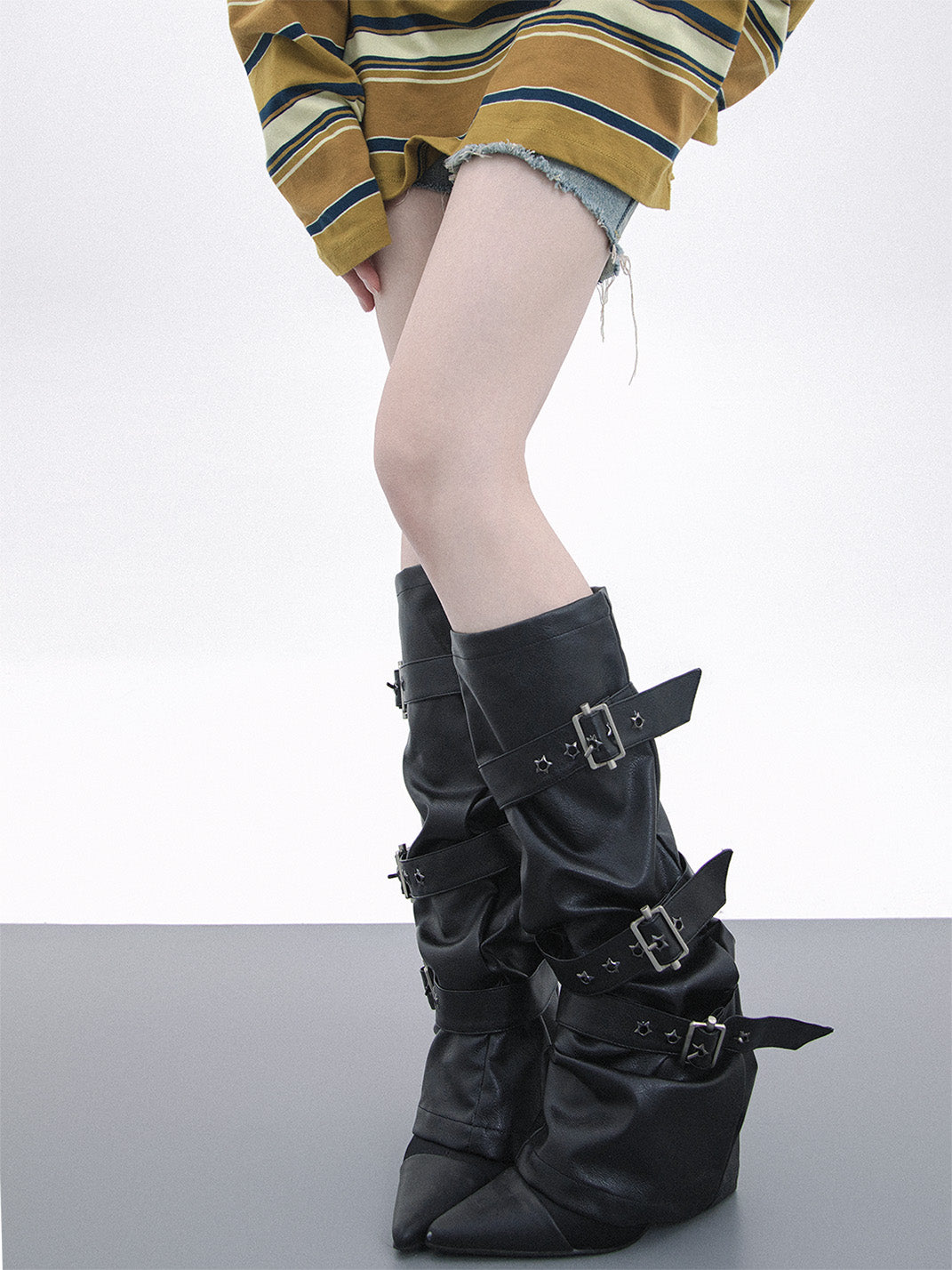 SS2L | Rivet Buckle Strap Punk Chic Leather Leg Warmers